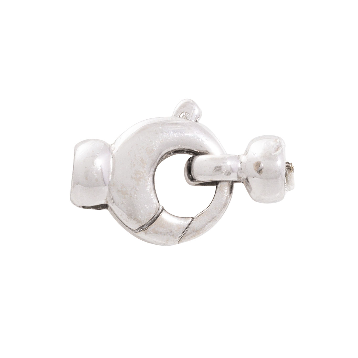 Carabiner clasp with end capsule, 14K white gold, 2.5 g, D: 11 mm, L: ap. 14 mm, 20th/21st century, minimal signs of wear.