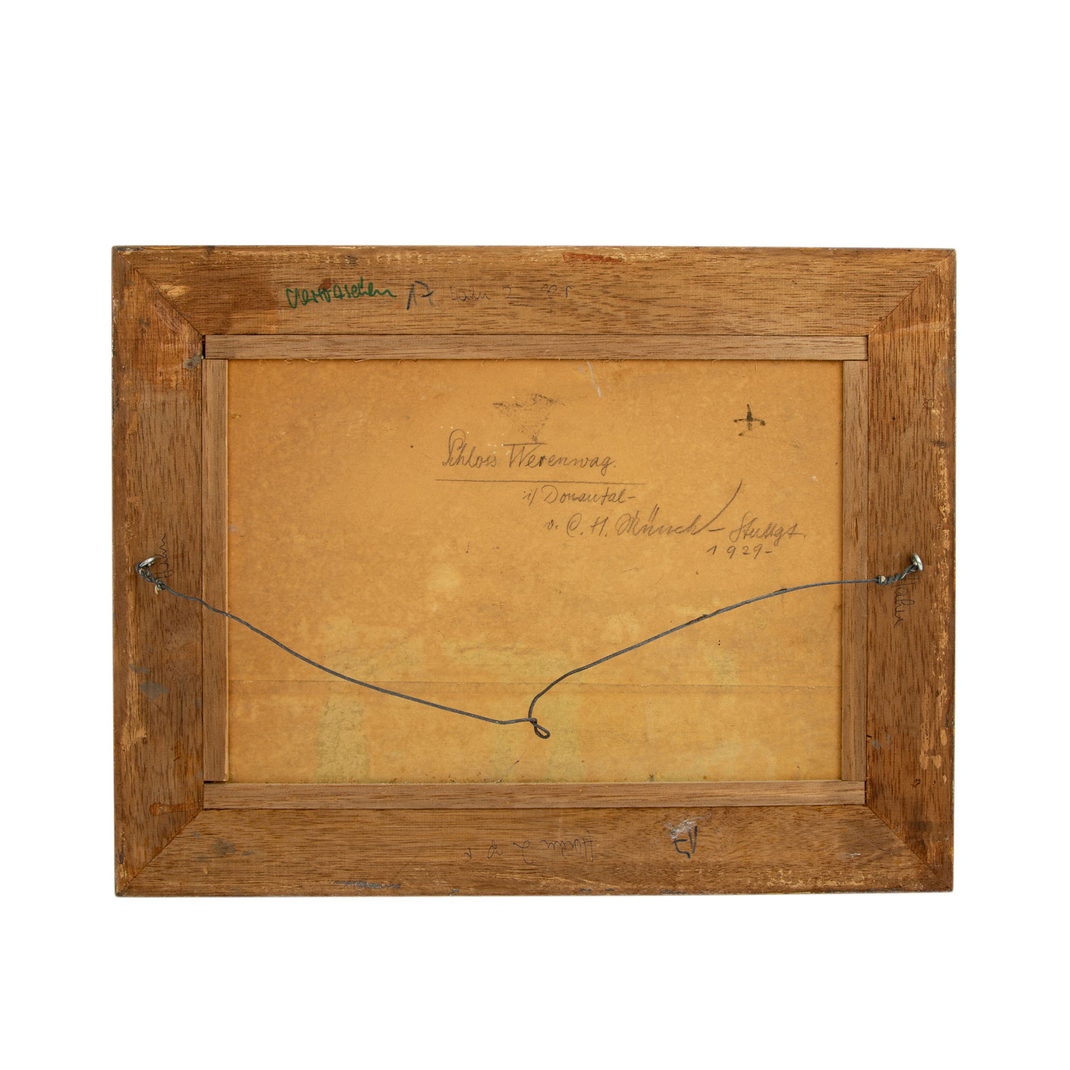 MÜNCH, CARL HERMANN (1872-?) "Schloss Werenwag in Donautal" Oil on card, sig, handwritten on the reverse: "Schloss Werenwag in Donautal, von C.H. Münch-Stuttgart, 1929", hxw: 34/48 cm. framed, hxw: 47/62 cm.