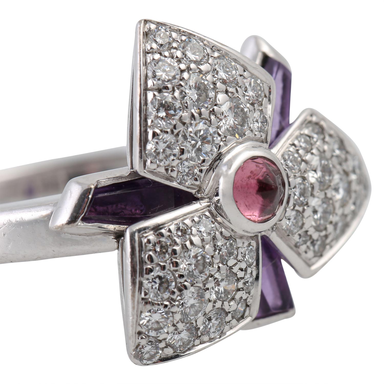 CARTIER 'Caresse d'Orchidée' ladies' ring. Set with diamonds approx. 0.35 ct. and amethyst and 1 garnet cabochon.