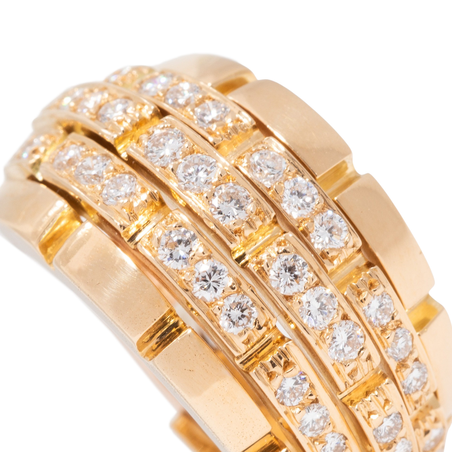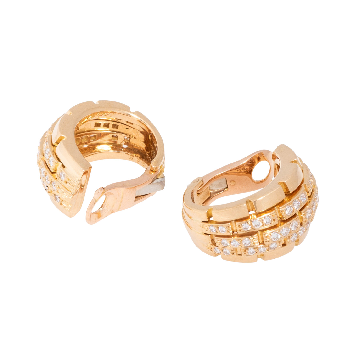 CARTIER pair of 'Maillon Panthére' ear clips, 5 rows with 72 brilliant-cut diamonds totalling approx. 1.80 ct, RW (F-G)/VVS, 18K yellow gold, 26.4 g, L: approx. 22.4 mm, W: approx. 6.8 - 12.8 mm, early 21st century, signs of wear, with hallmark 'CARTIER' and ID-No. '701235'.