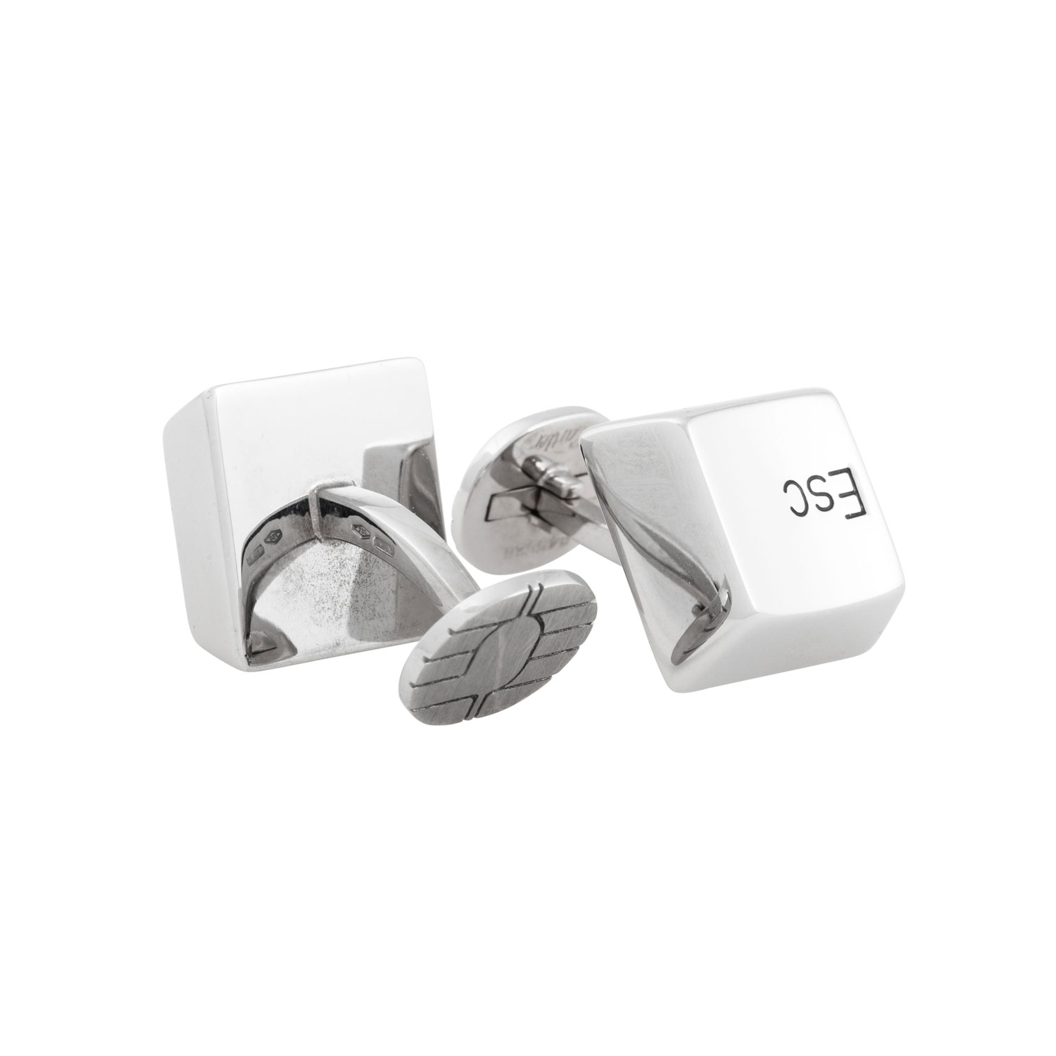 CARTIER pair of cufflinks 'Alt+Esc', replacement value ca. 6,000 €, 18K WG, 16.3 gr, 21st century, numbered '845528' and '845773', good condition, incl. case and 2 Cartier certificates (1 certificate with wrong number - 1 digit missing).