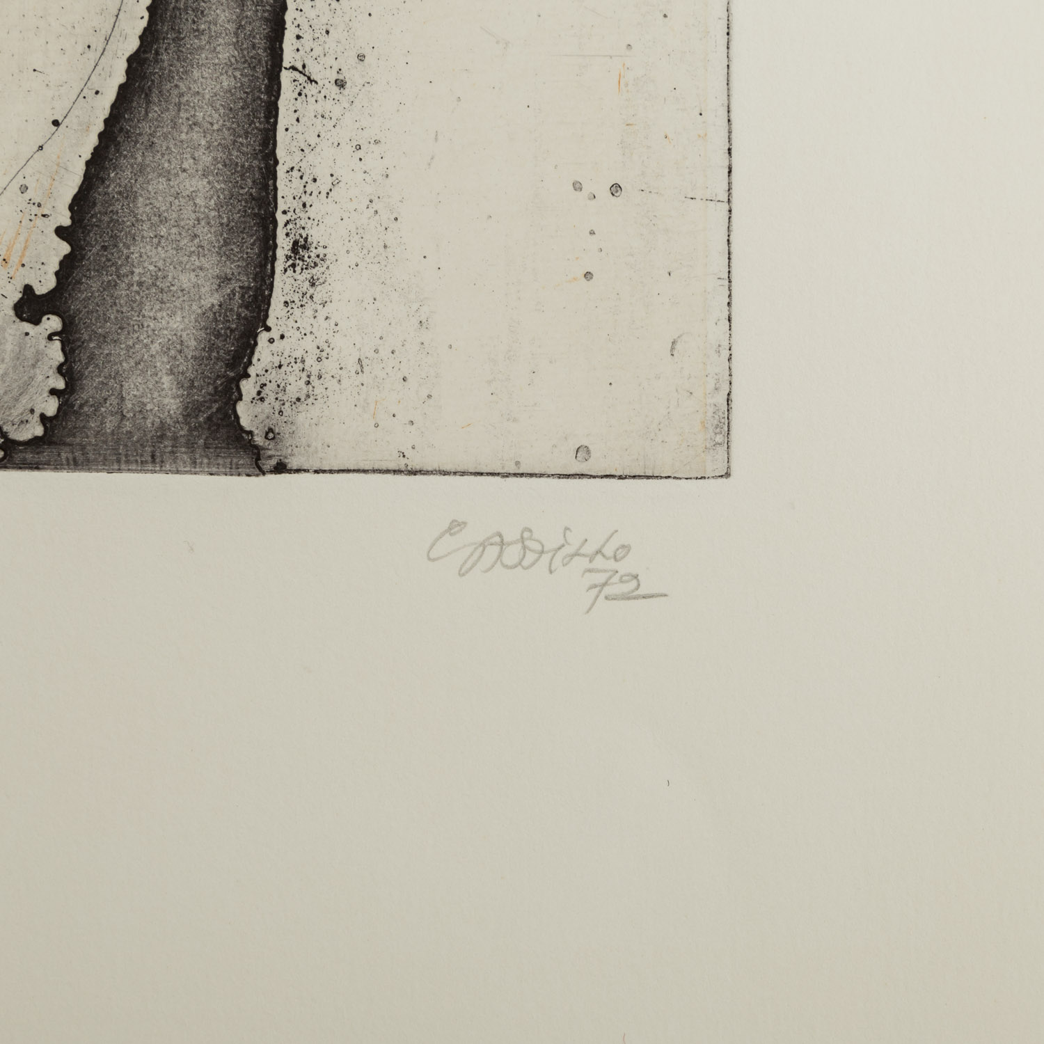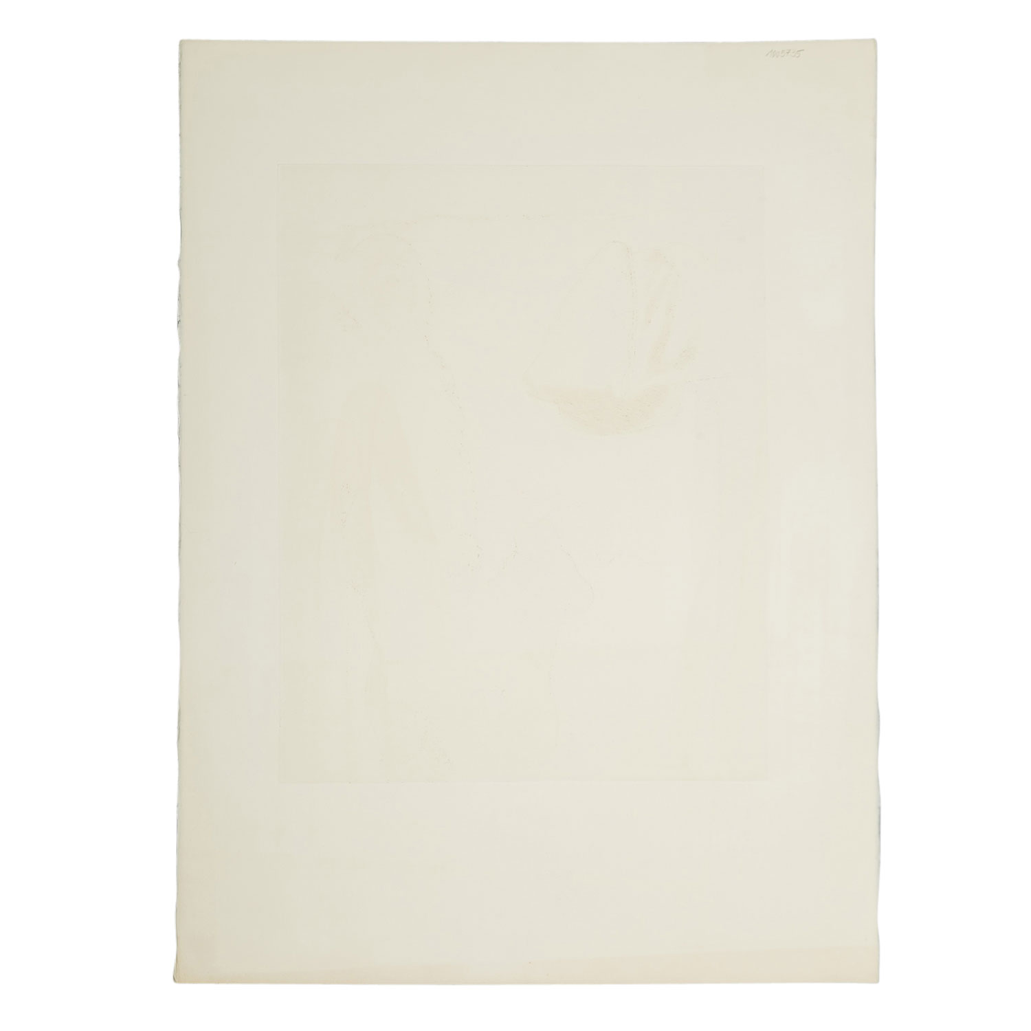 CASTILLO, JORGE (born 1933), "Figürliche Komposition", color aquatint etching/Arches France (with watermark), signed (19)72 in pencil lower right, numbered 6/50 in pencil lower left, dry stamp 'manus presse', HxW: plate approx. 50x40 cm, sheet approx. 76.5x57 cm. Minim. Signs of age.