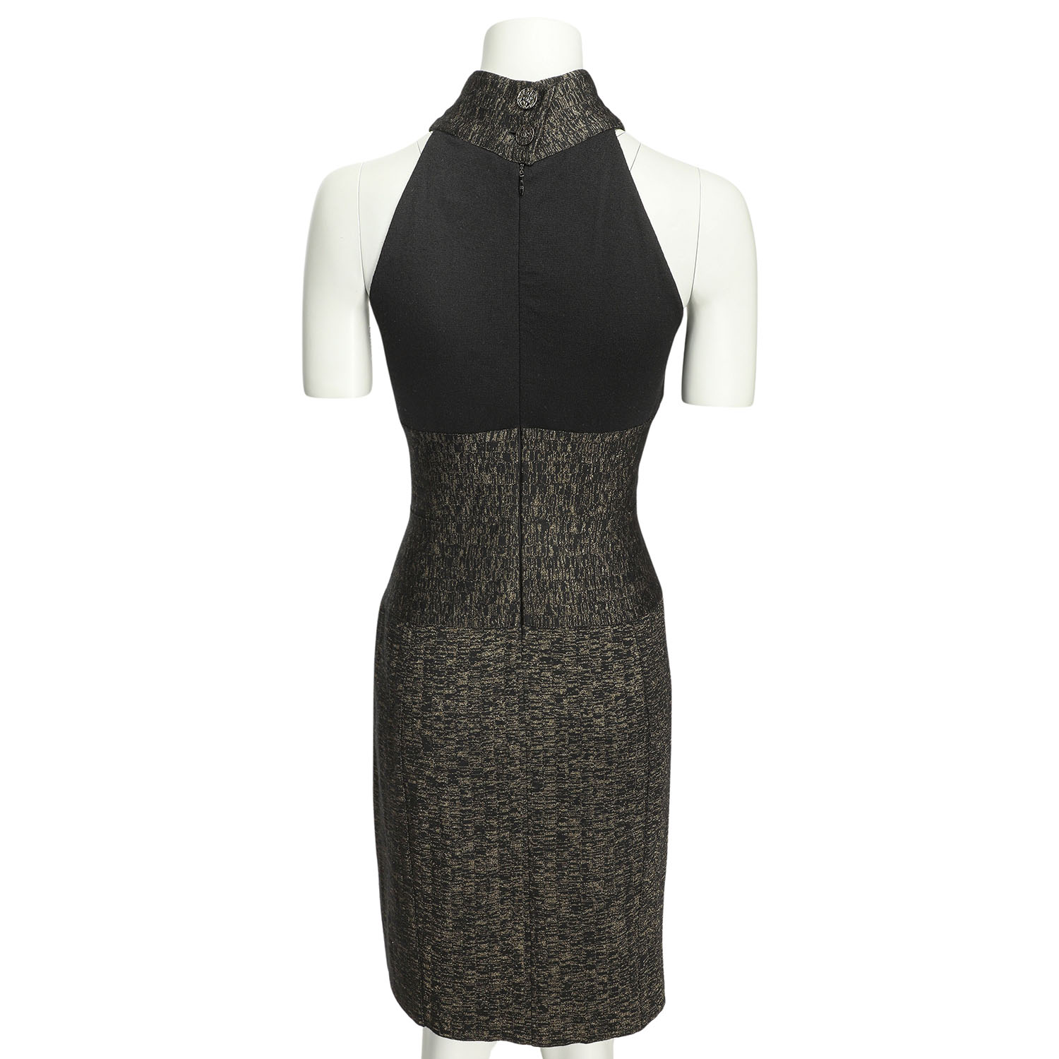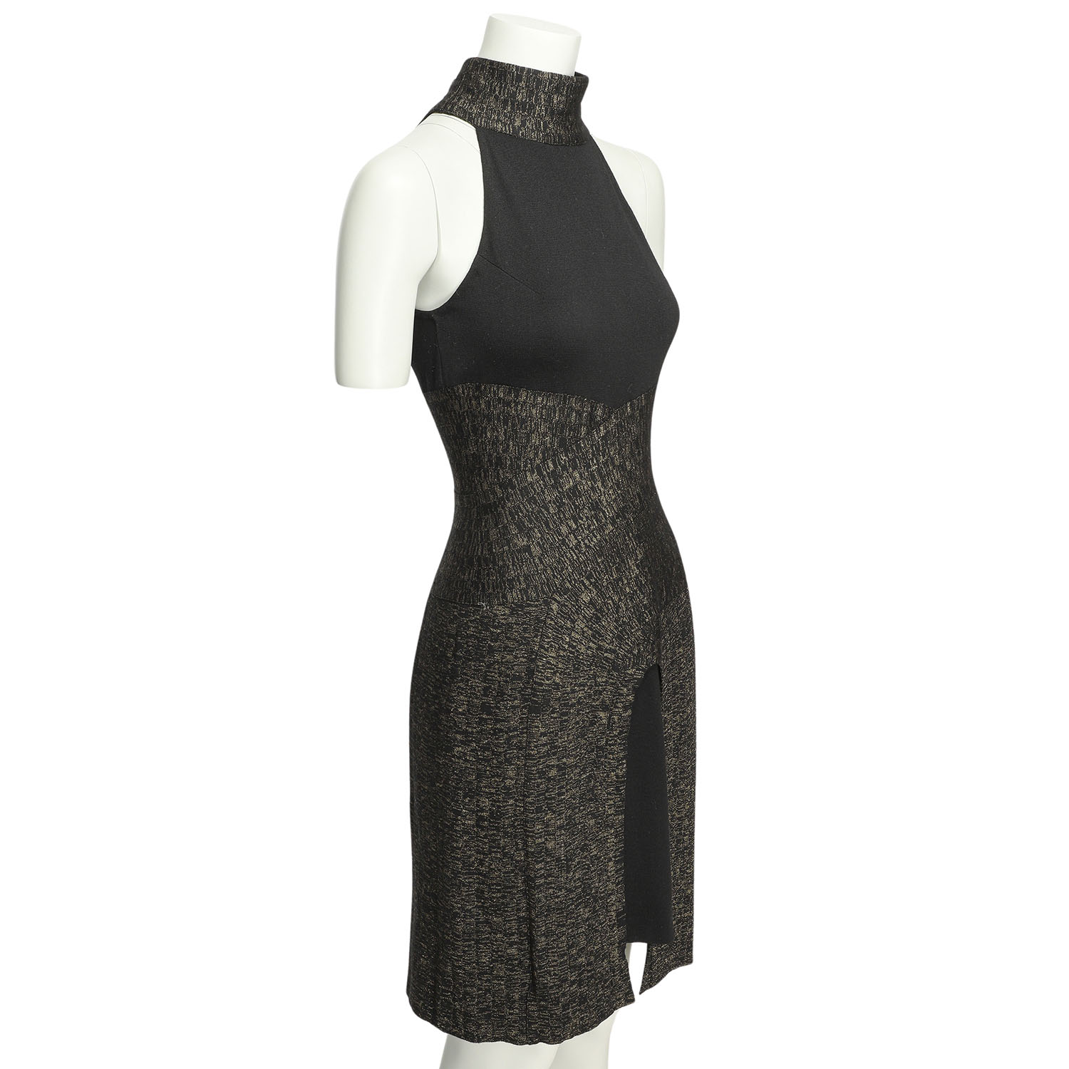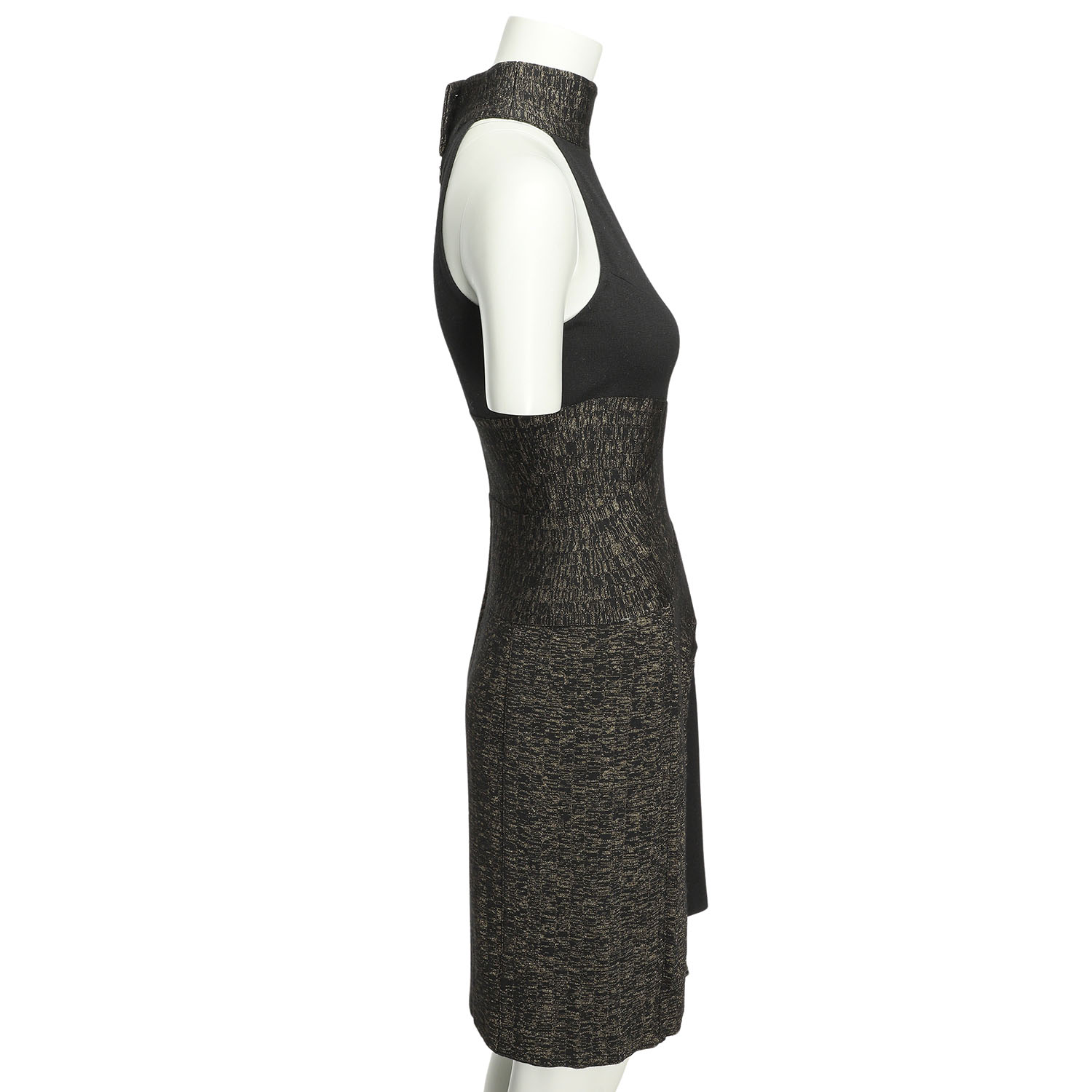 CHANEL dress, size 36 (fr. 38, MP341) Coll.: Paris-Byzance 2011. Wool blend. Wool knit model in gold and black with high collar, wide armholes and slit in front. Wear marks available.