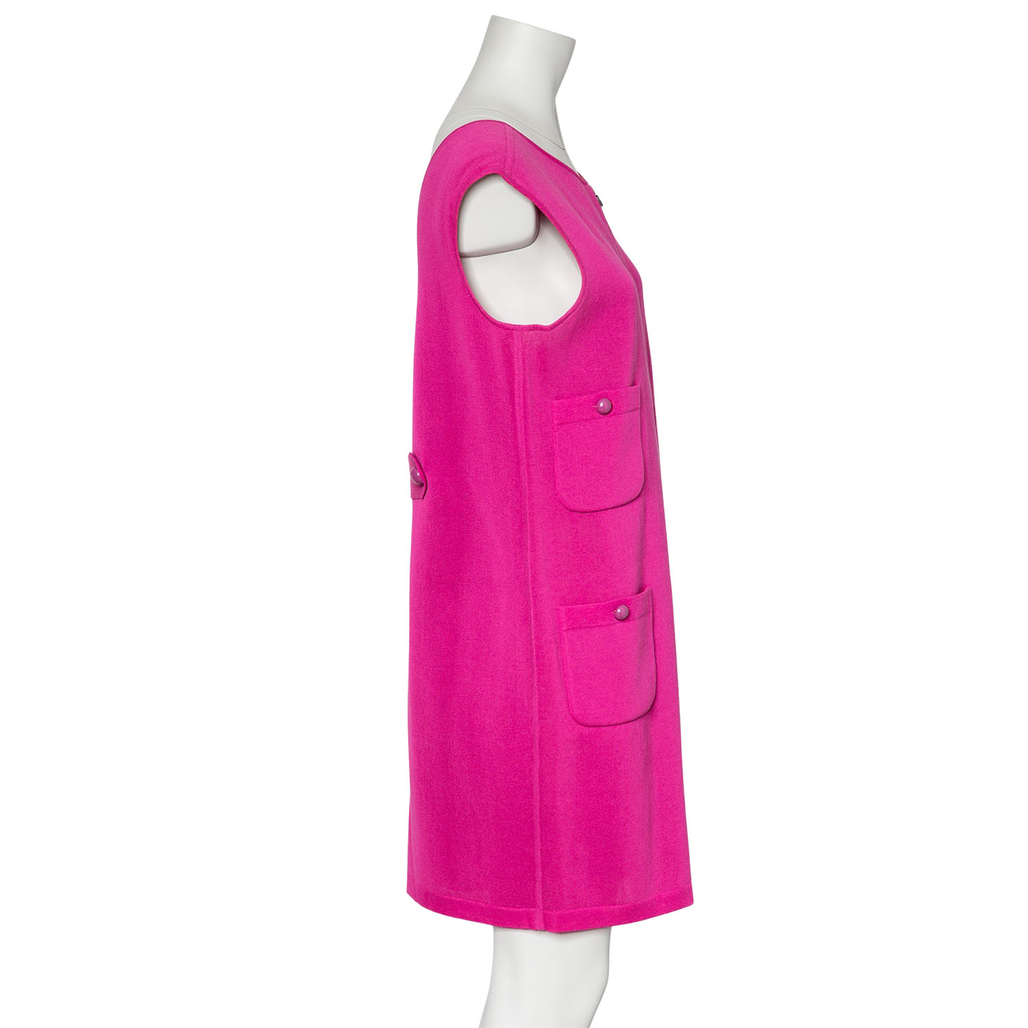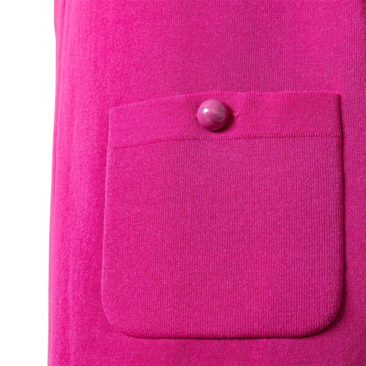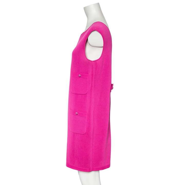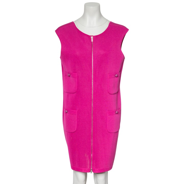 CHANEL dress, size 42 (fr. 44). Pink model with zips at the front and back and four patch pockets. Signs of wear present.