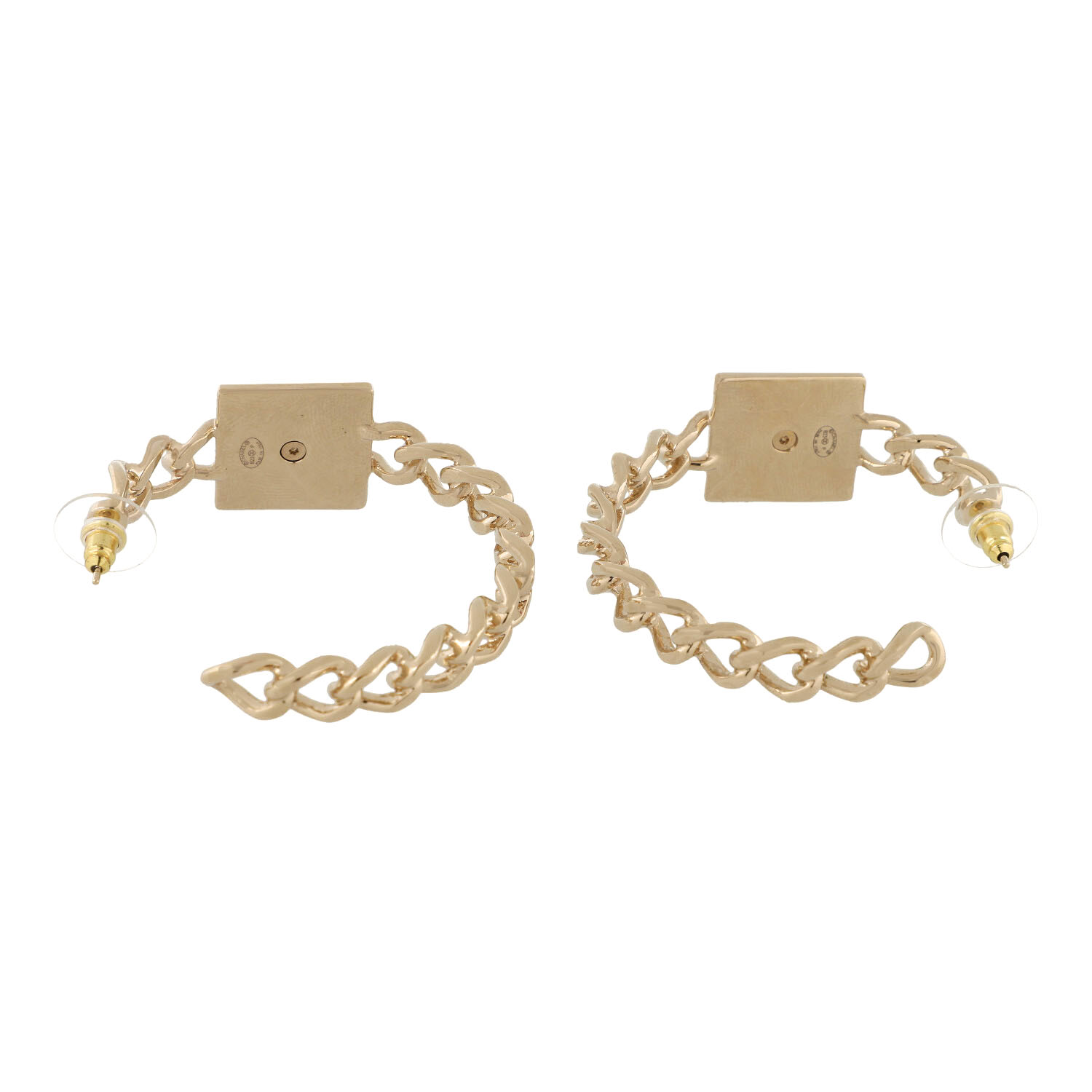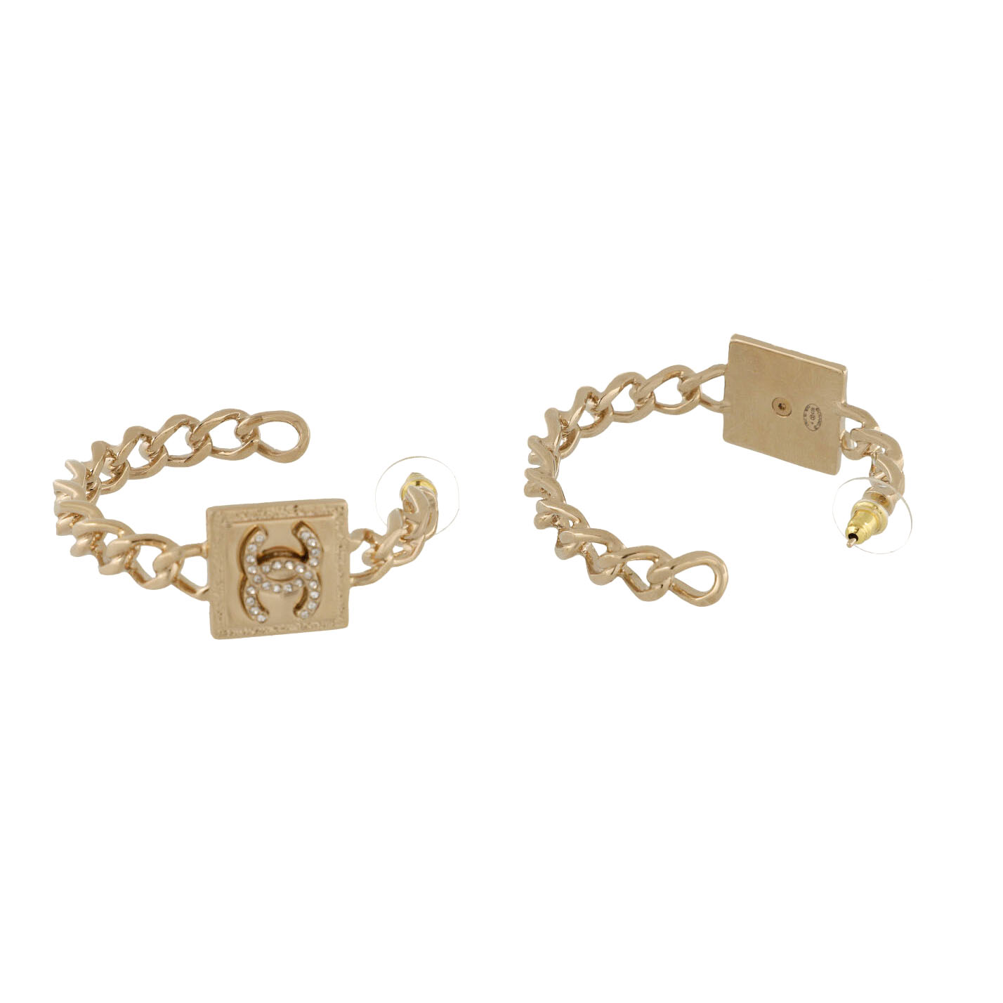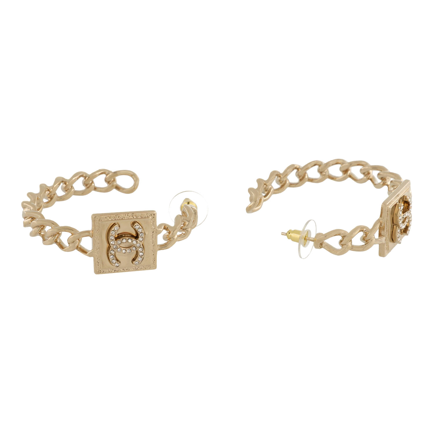 CHANEL Creolen, coll.: S/S Pre-Collection 2023. Champagne gold-coloured model made of link chains with CC logo on square plaque with artificial stone trim. Good condition.