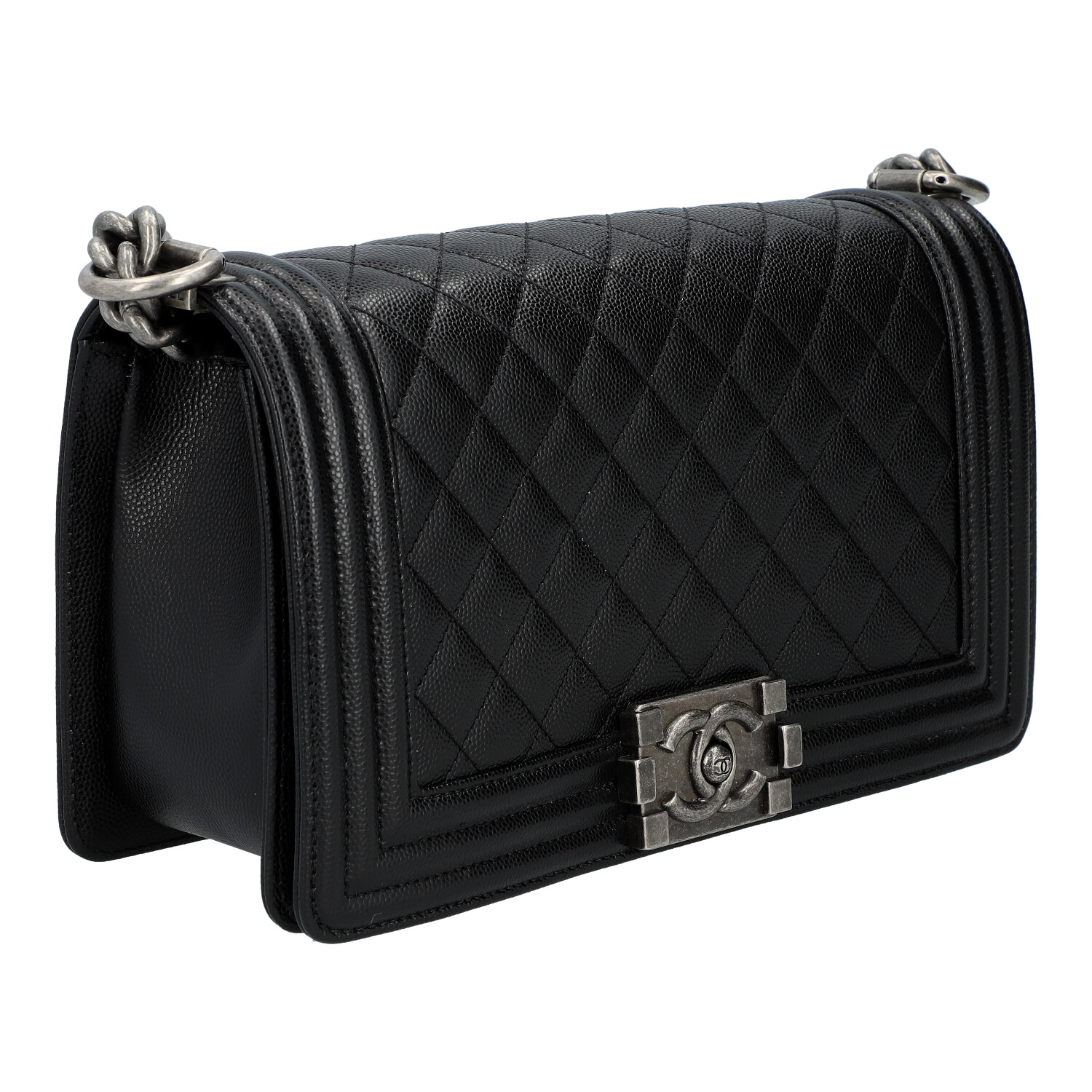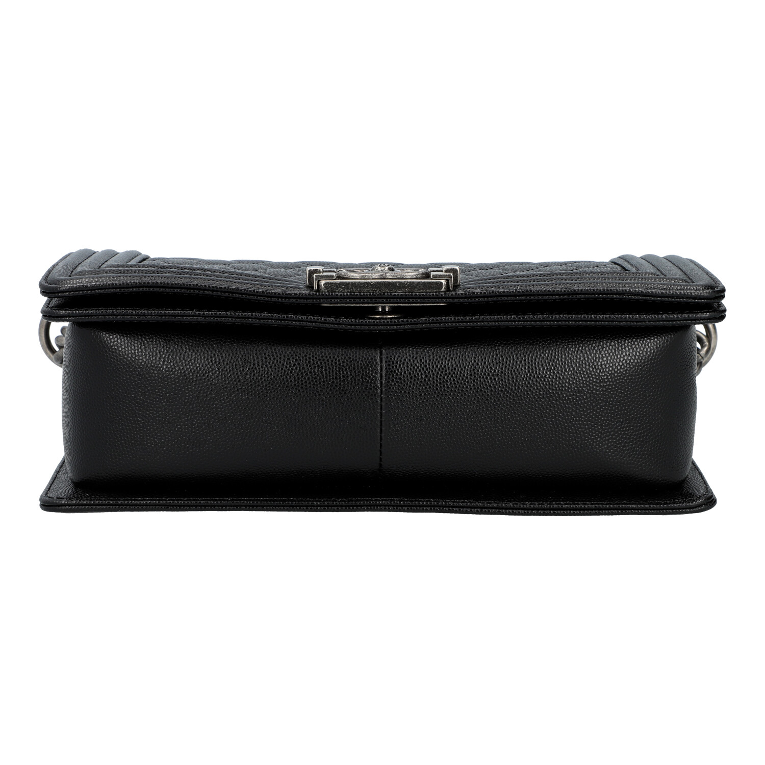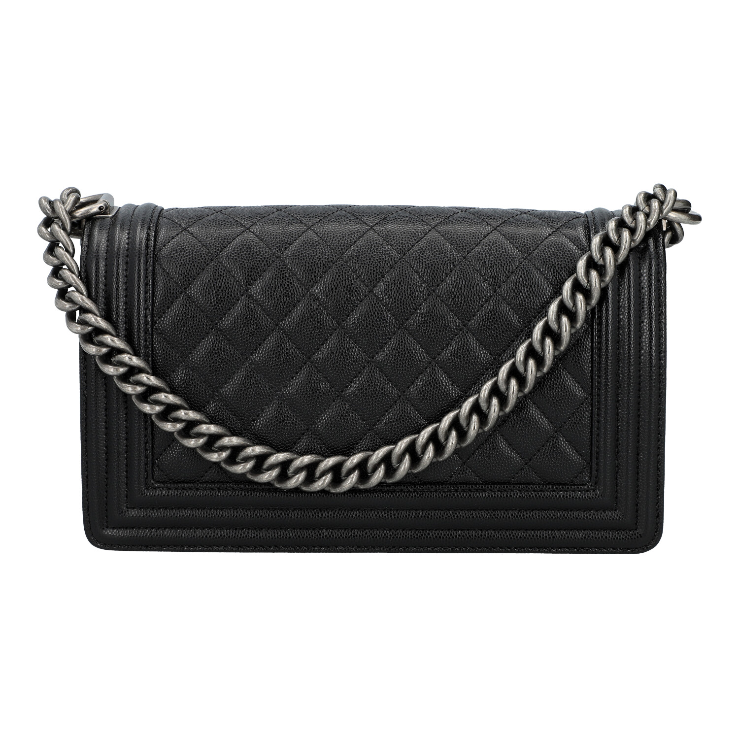 CHANEL shoulder bag 'BOY CHANEL BAG', coll.: 2018 - 2019, retail price: €6350. Grained calfskin in black with diamond quilting, hardware with ruthenium finish, flap with CC fastening, chain strap, partly made of leather. Textile interior in black with one compartment. Box, dust bag, ID card and invoice enclosed. Very good condition. (Ref. A67086 Y09953 94305).