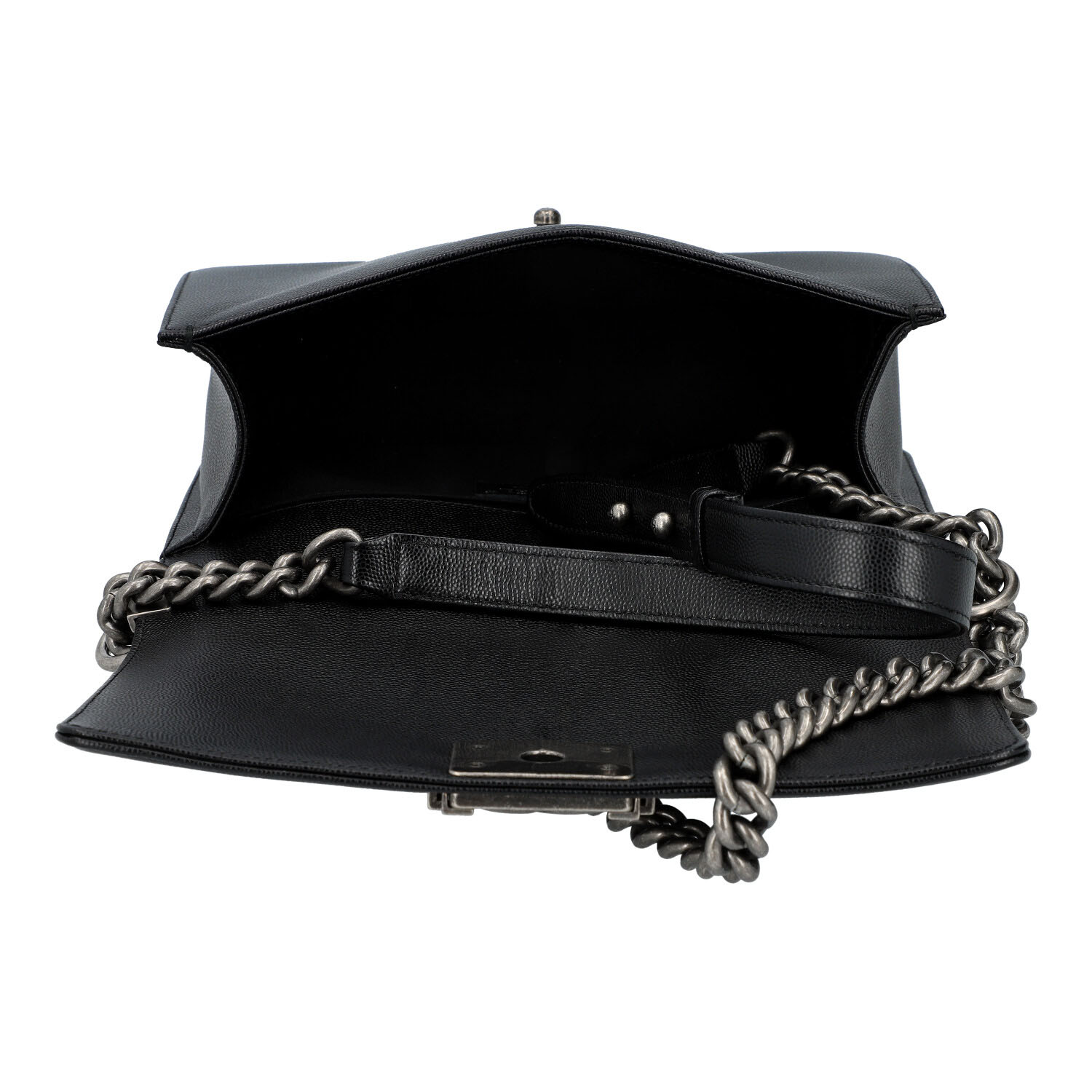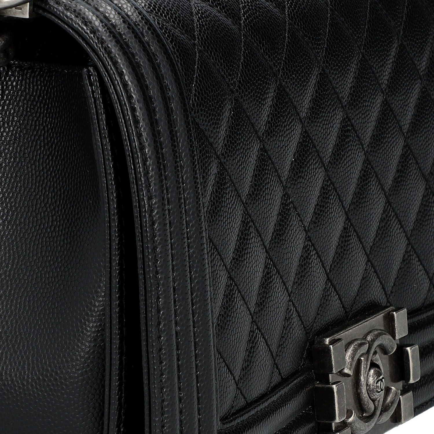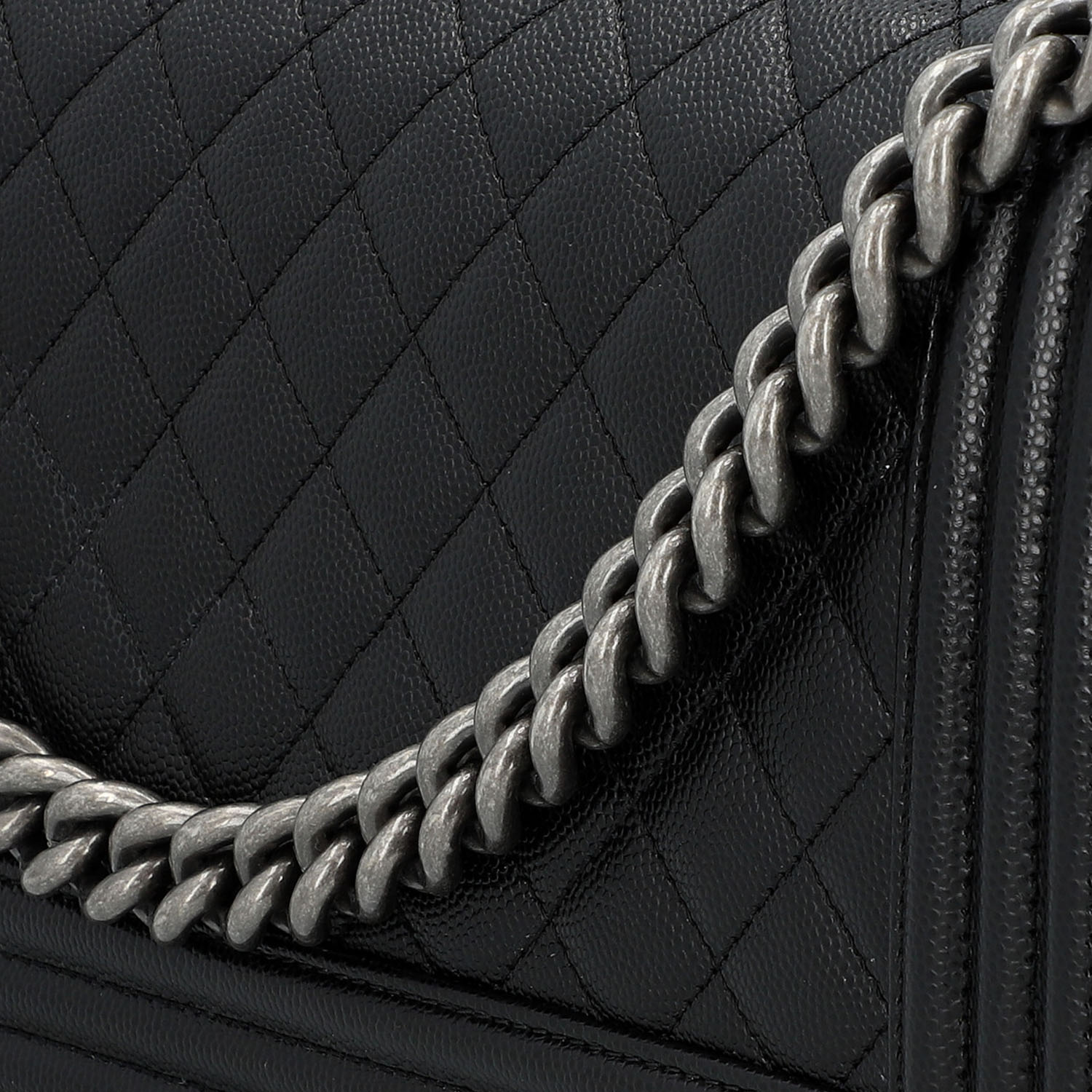 CHANEL shoulder bag 'BOY CHANEL BAG', coll.: 2018 - 2019, retail price: €6350. Grained calfskin in black with diamond quilting, hardware with ruthenium finish, flap with CC fastening, chain strap, partly made of leather. Textile interior in black with one compartment. Box, dust bag, ID card and invoice enclosed. Very good condition. (Ref. A67086 Y09953 94305).
