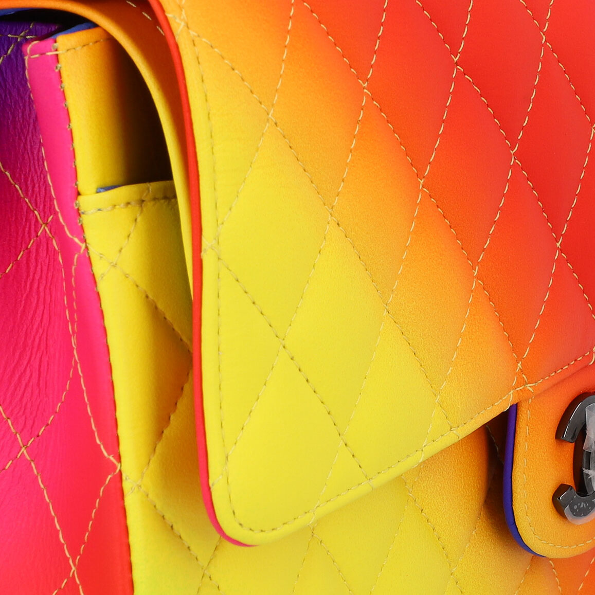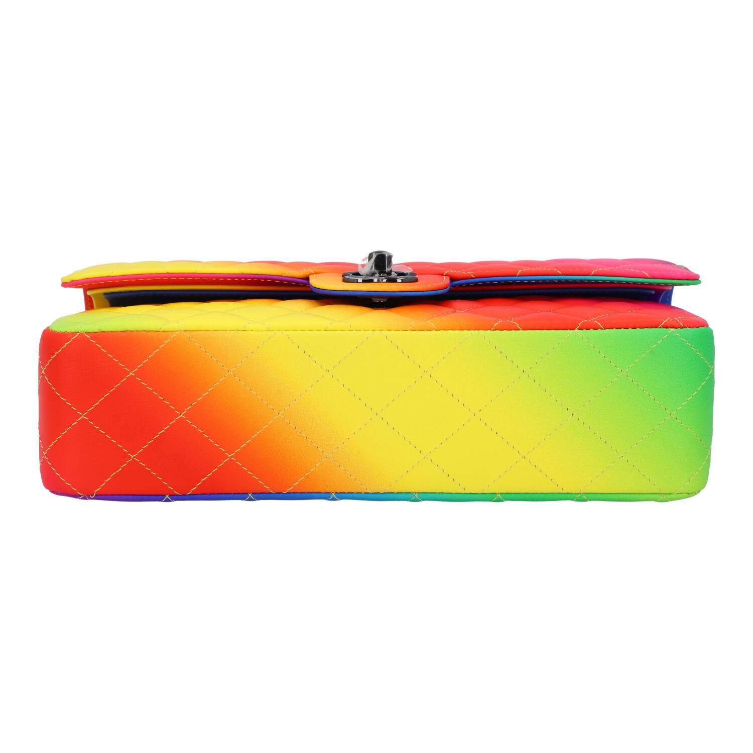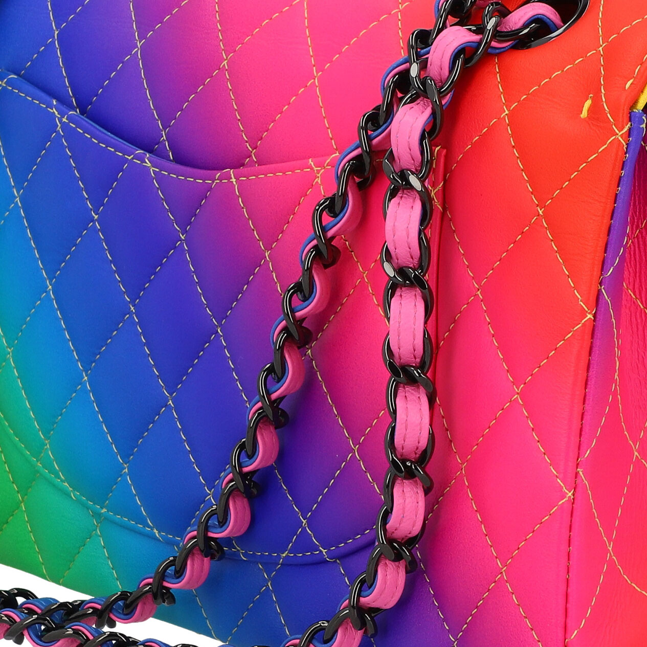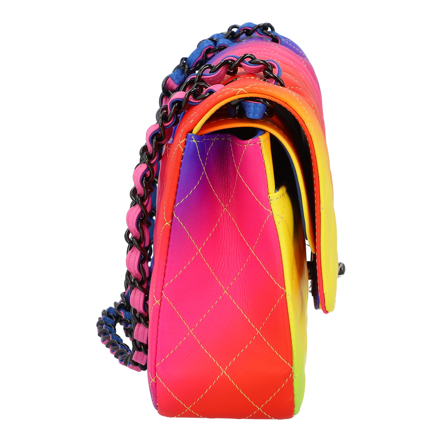 CHANEL shoulder bag 'CLASSIC FLAP BAG MEDIUM'. Limited edition - collector's item. Cruise collection 2023. smooth leather in rainbow colors with black colored hardware. Classic model. Box and dust bag enclosed. Hardware still partially glued, very good condition. Slight creases present. 25x6x14.5cm.