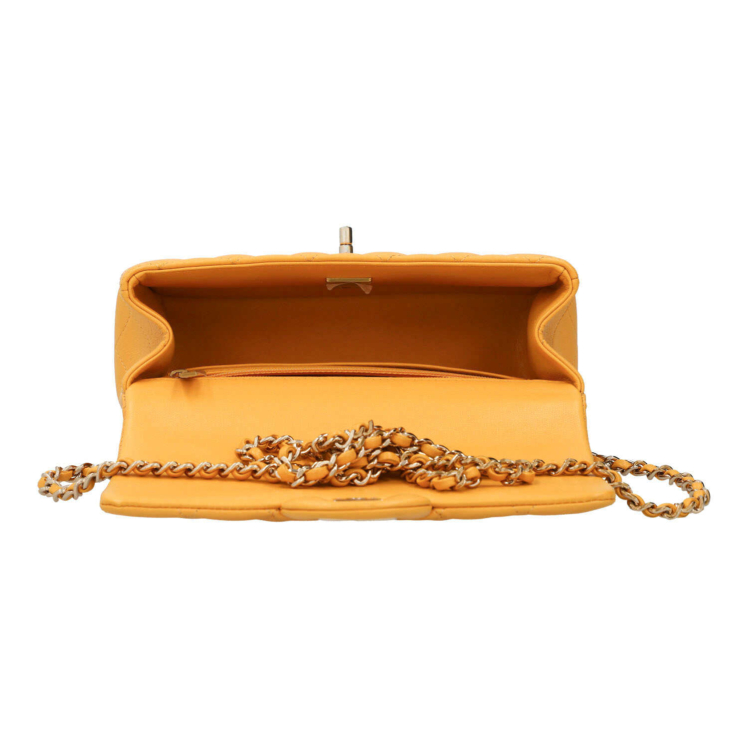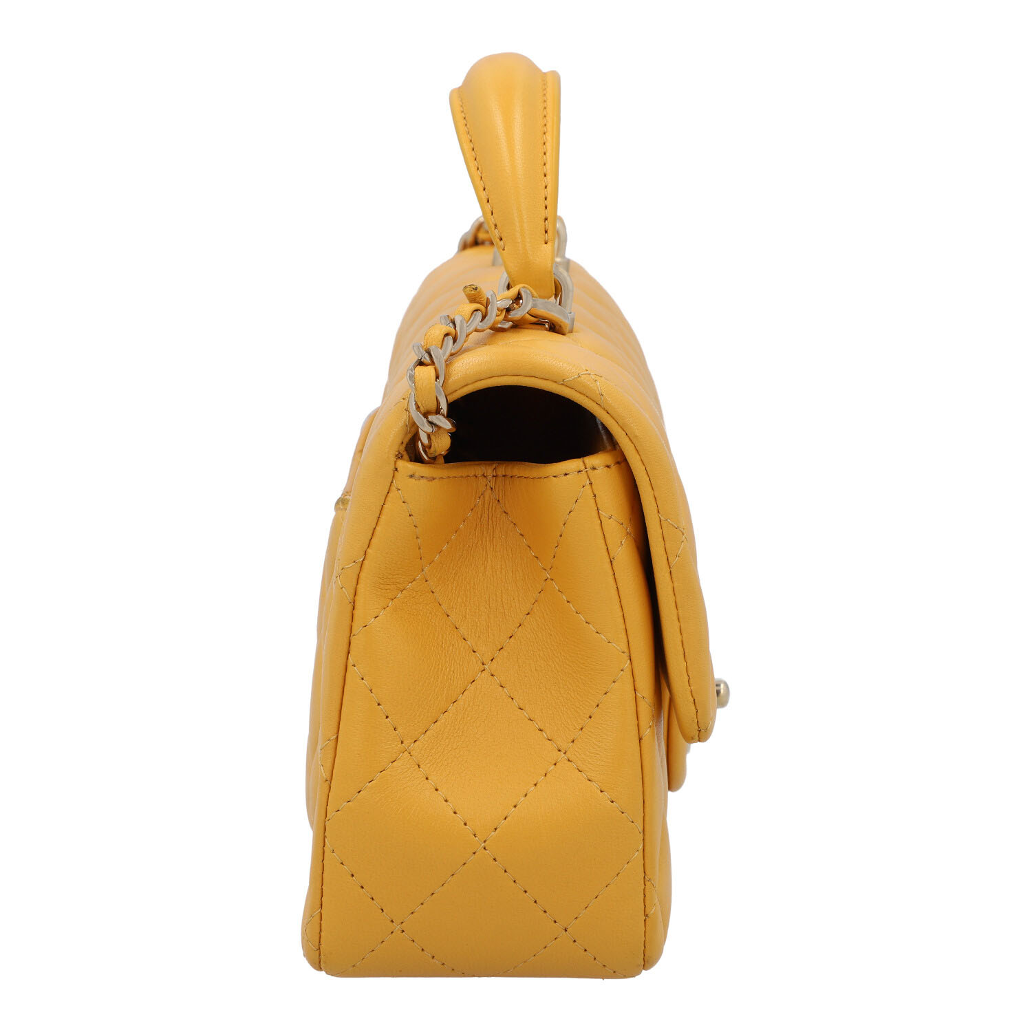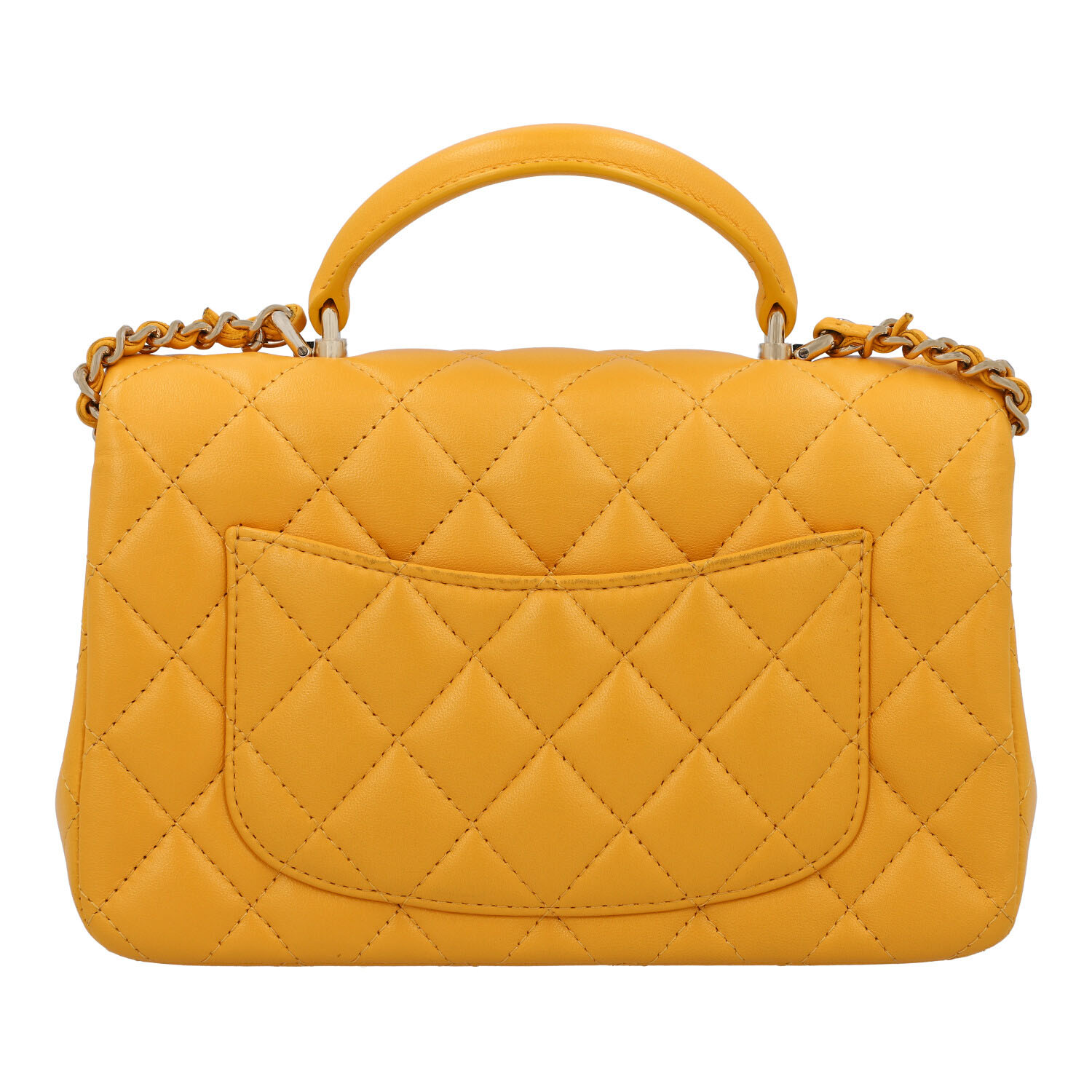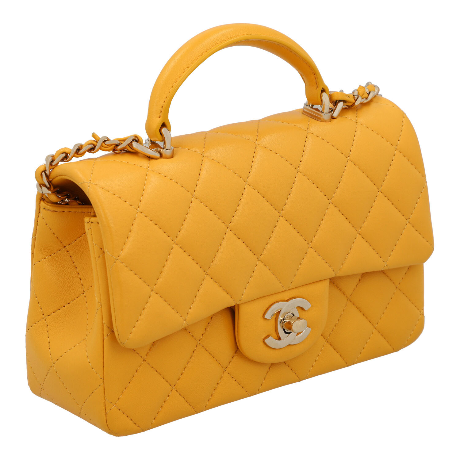 CHANEL shoulder bag 'TOP HANDLE', coll.: 2023. Lamb leather in ochre with champagne gold-coloured hardware, flap with CC logo twist fastening, one handle, outer compartment on the back and chain strap interwoven with leather. Interior with two compartments, one with zip. Box, dust bag and invoice enclosed. Signs of wear, abrasion on the edges, the chain and the outer compartment. 20 x 13 x 6 cm.