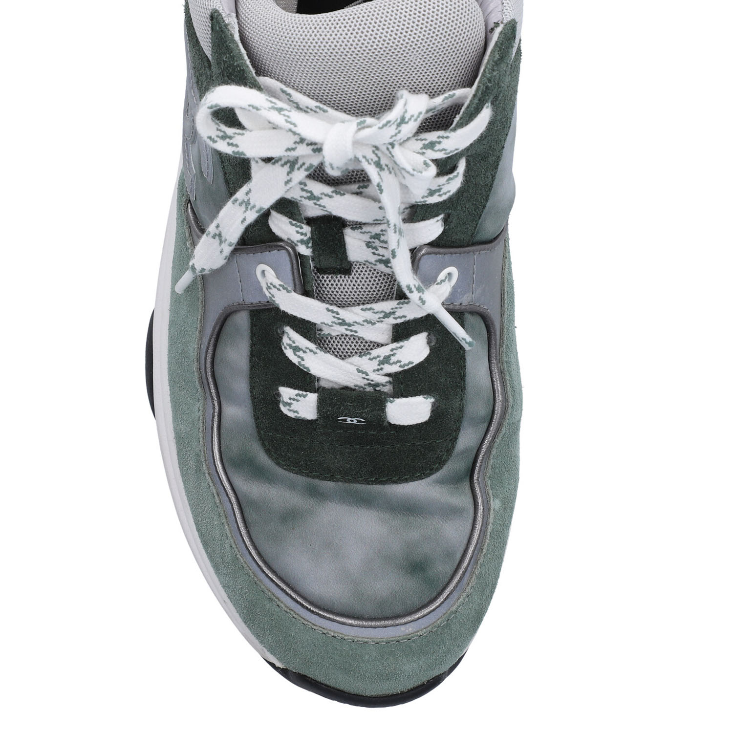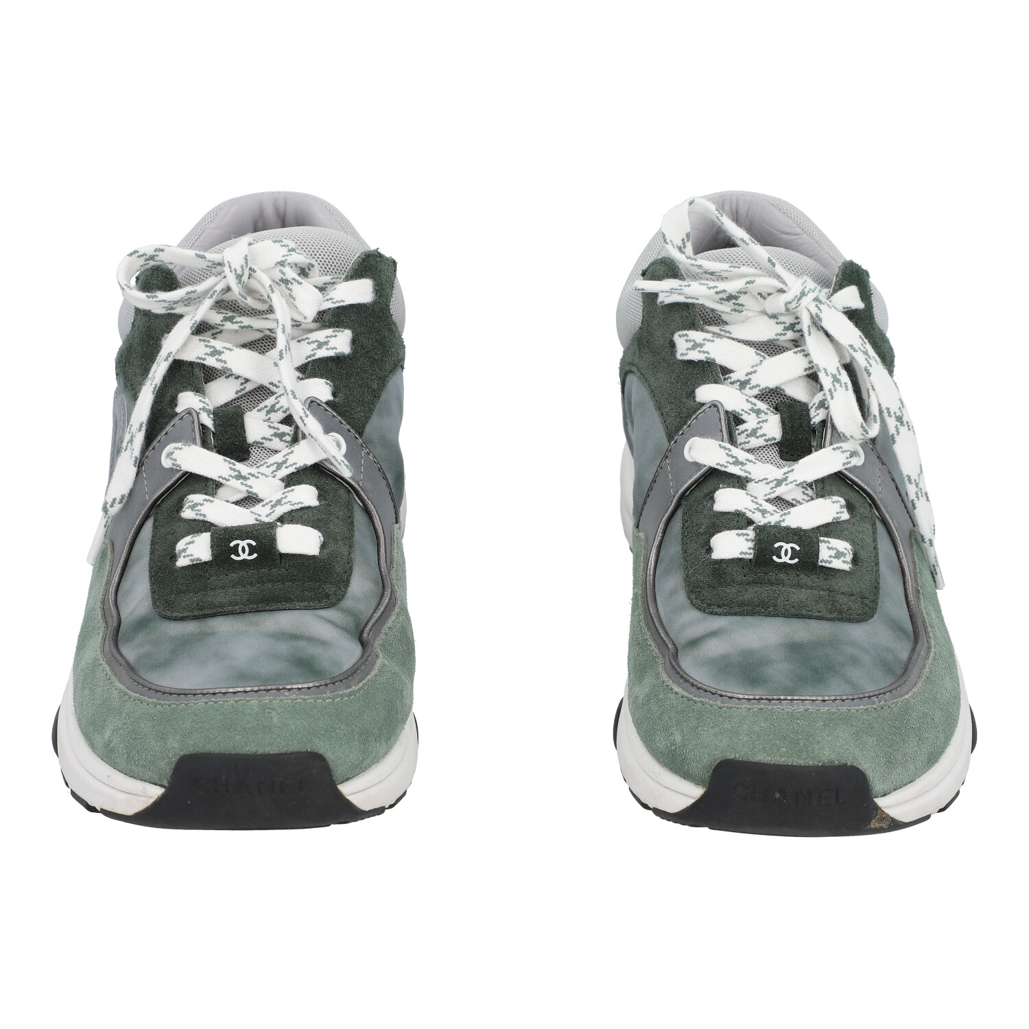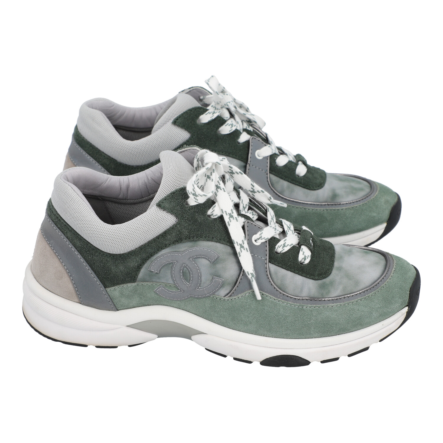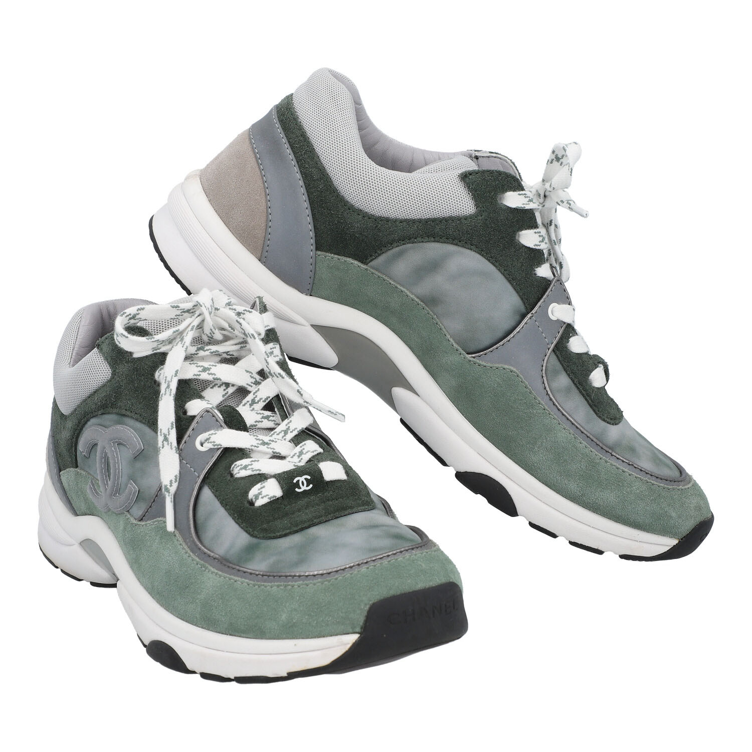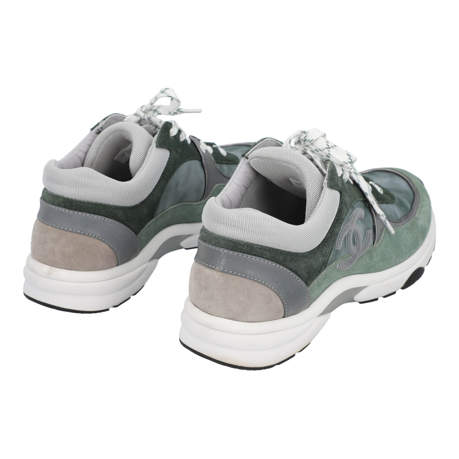 CHANEL Sneaker, size 40,5. Material mix in grey and green with lacing and CC logo. Box enclosed. Minimal signs of wear.