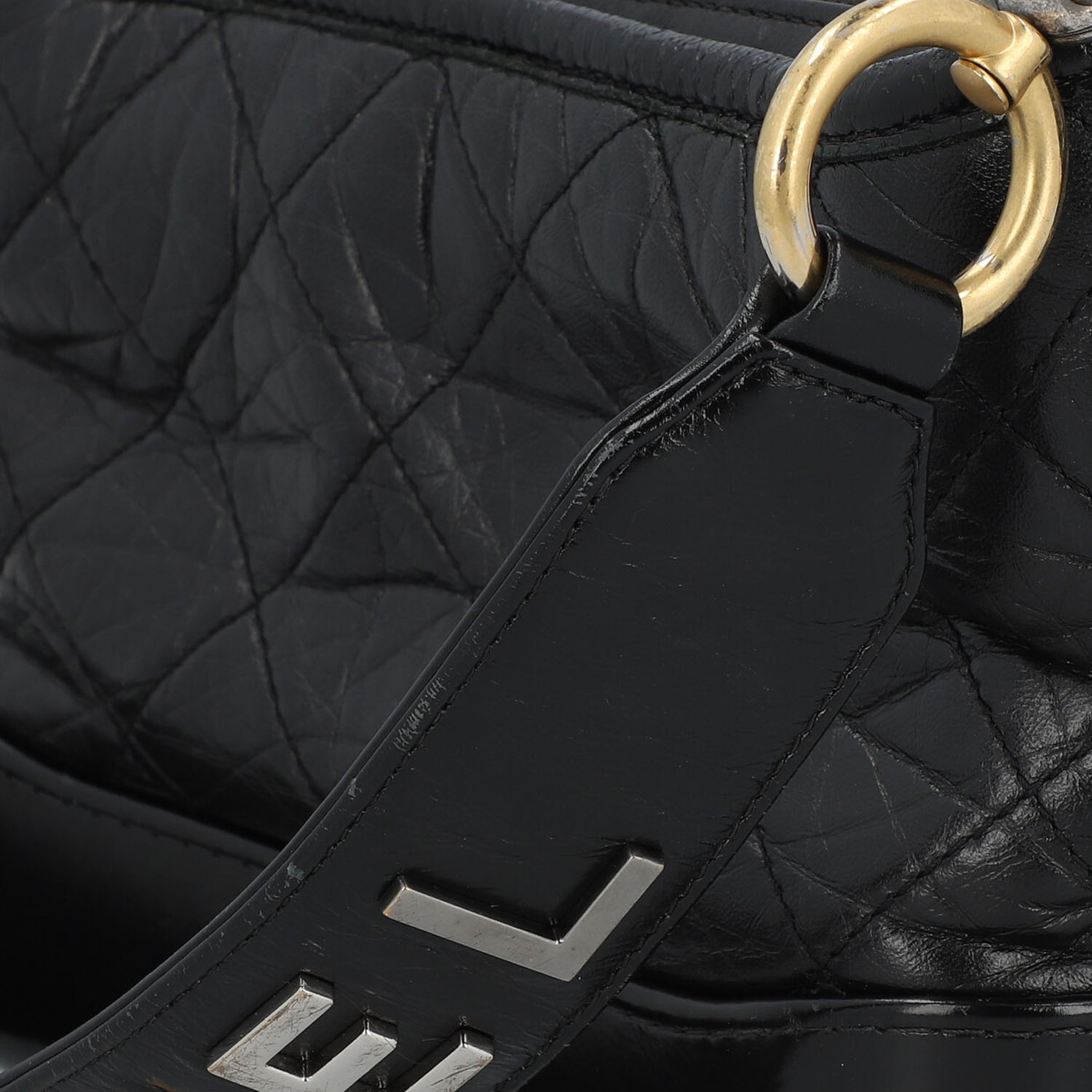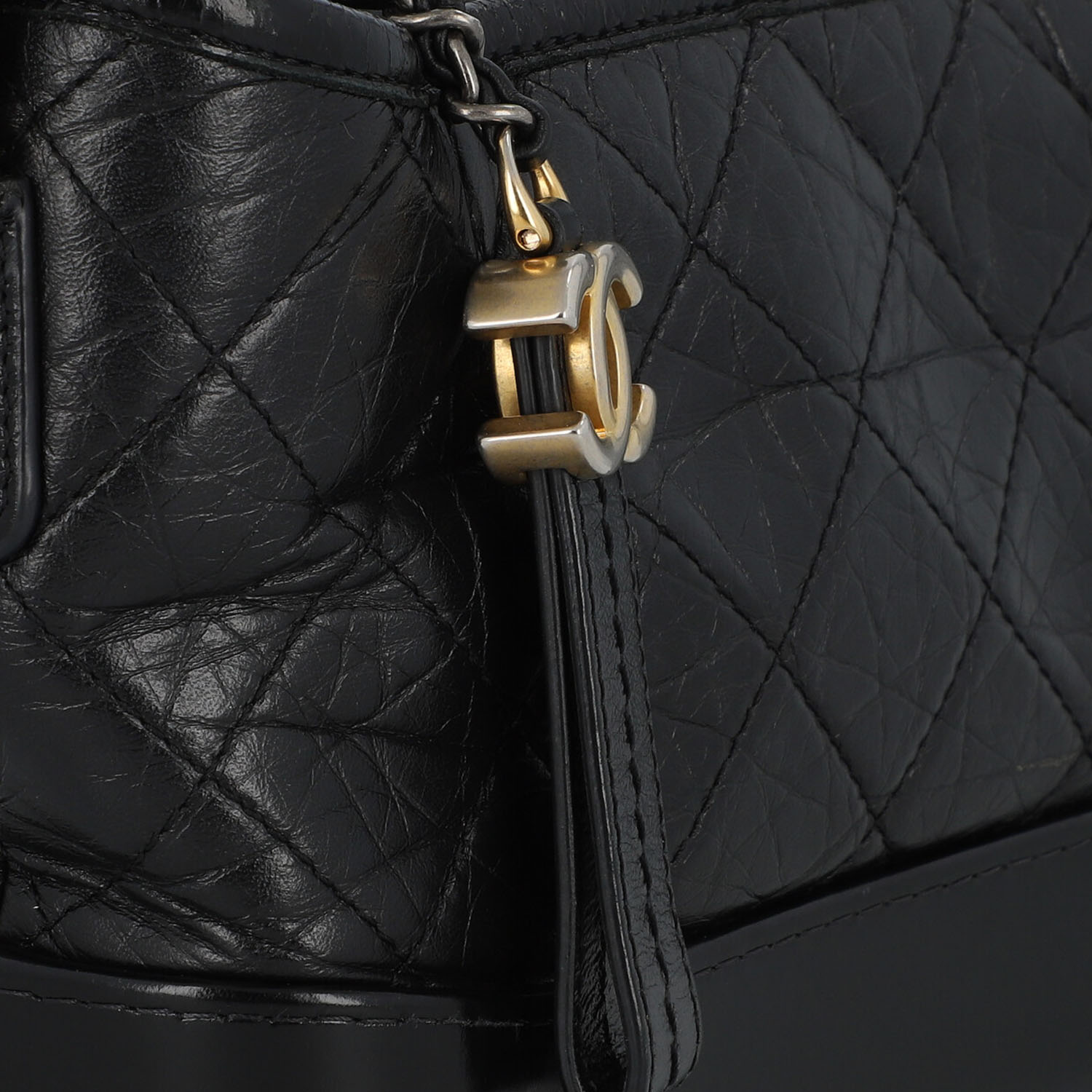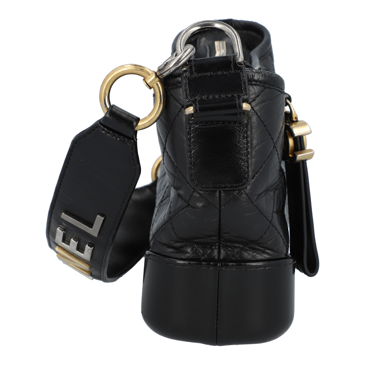 PRE-LOVED ITEM BY @TSCHARY - CHANEL shoulder bag ‘SMALL GABRIELLE’, coll.: 2019. Vintage-look black calfskin with diamond quilting, gold, silver and ruthenium-coloured hardware, zip fastening, short handle with logo decoration, long chain strap interwoven with leather. Interior in red with three compartments, one with zip. Box, ID card and invoice enclosed. Signs of wear, abrasion on the hardware, edges, scratches on the leather, stains. 20 x 7 x 14 cm.