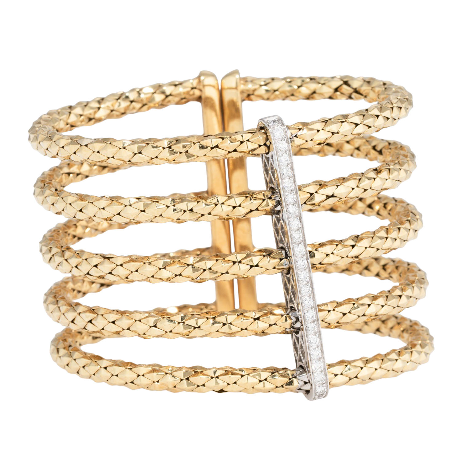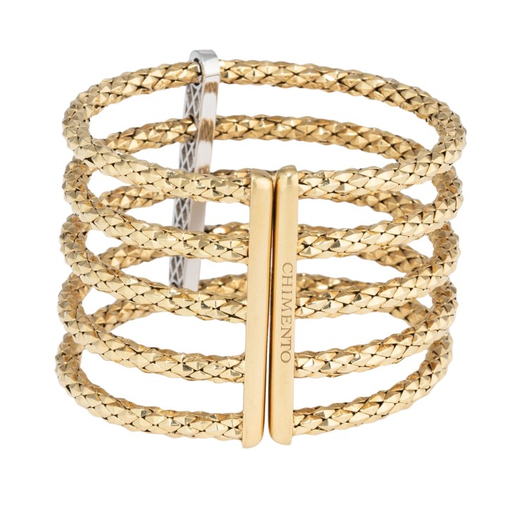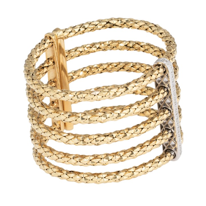 CHIMENTO bangle with brilliant-cut diamonds totalling ca. 0.69 ct, good colour and clarity, 18K yellow and white gold, 64.2 g, inner circumference ca. 16 cm, 21st century, signs of wear, with brand signature.