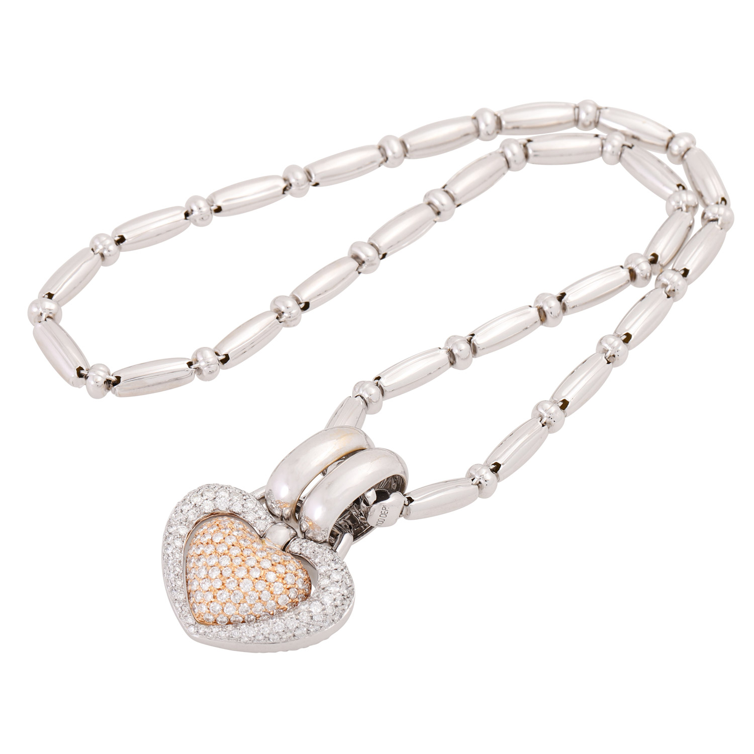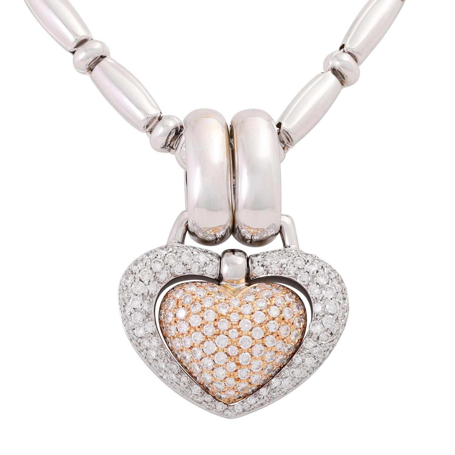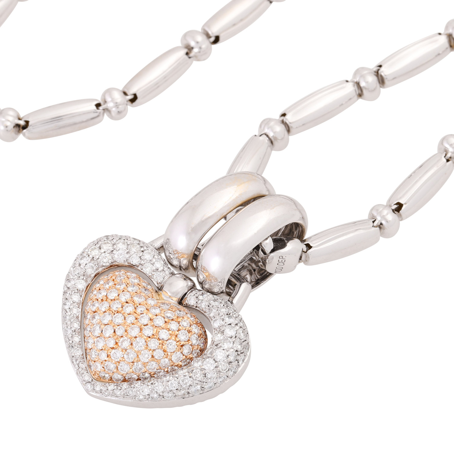 CHIMENTO Pendant with brilliant-cut diamonds, total ca. 3.0 ct, of good colour and clarity, YG/WG 18K, 21.2 g, L x W 40 x 30mm, on necklace, WG 18K, 44 cm, 21 g, contemporary, good condition.