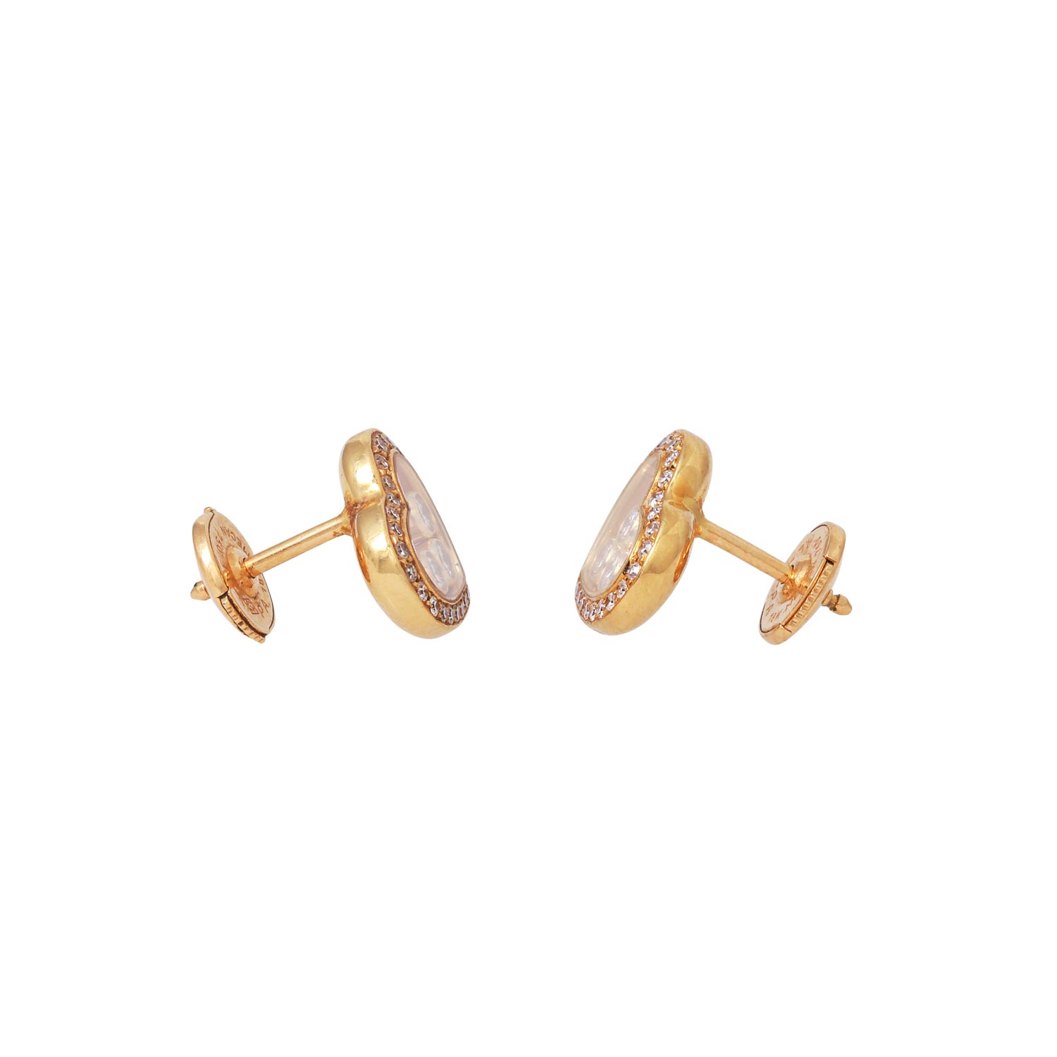 CHOPARD 'Happy Diamonds' Pair of stud earrings with 6 movable brilliant-cut diamonds under sapphire crystal and 50 single-cut diamonds total. ca. 0.43ct, ca. RW (G) /VVS, YG 18K. 5.5g, new price ca. 7.700,-€, 20th/21st century, minor signs of wear, with maker's mark.