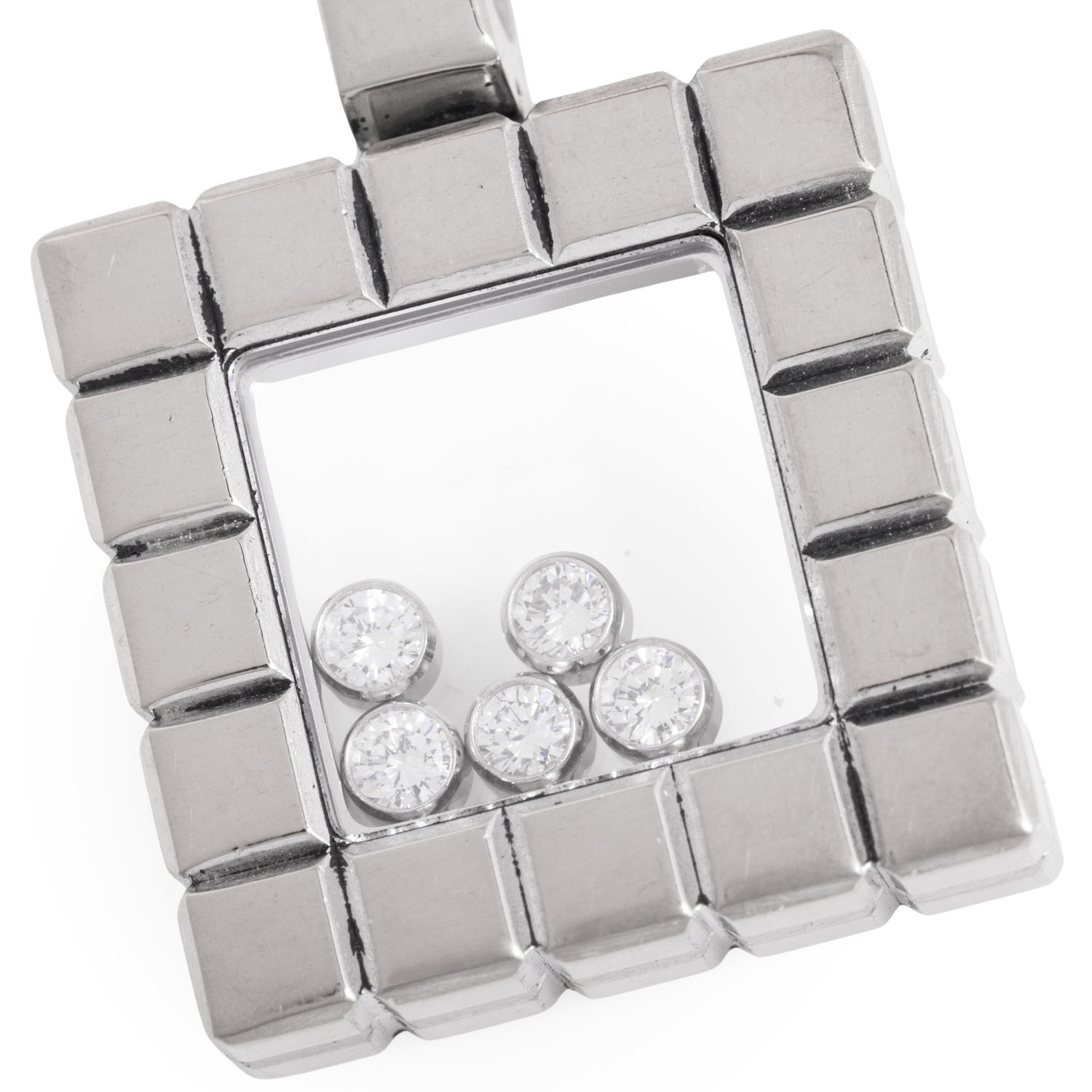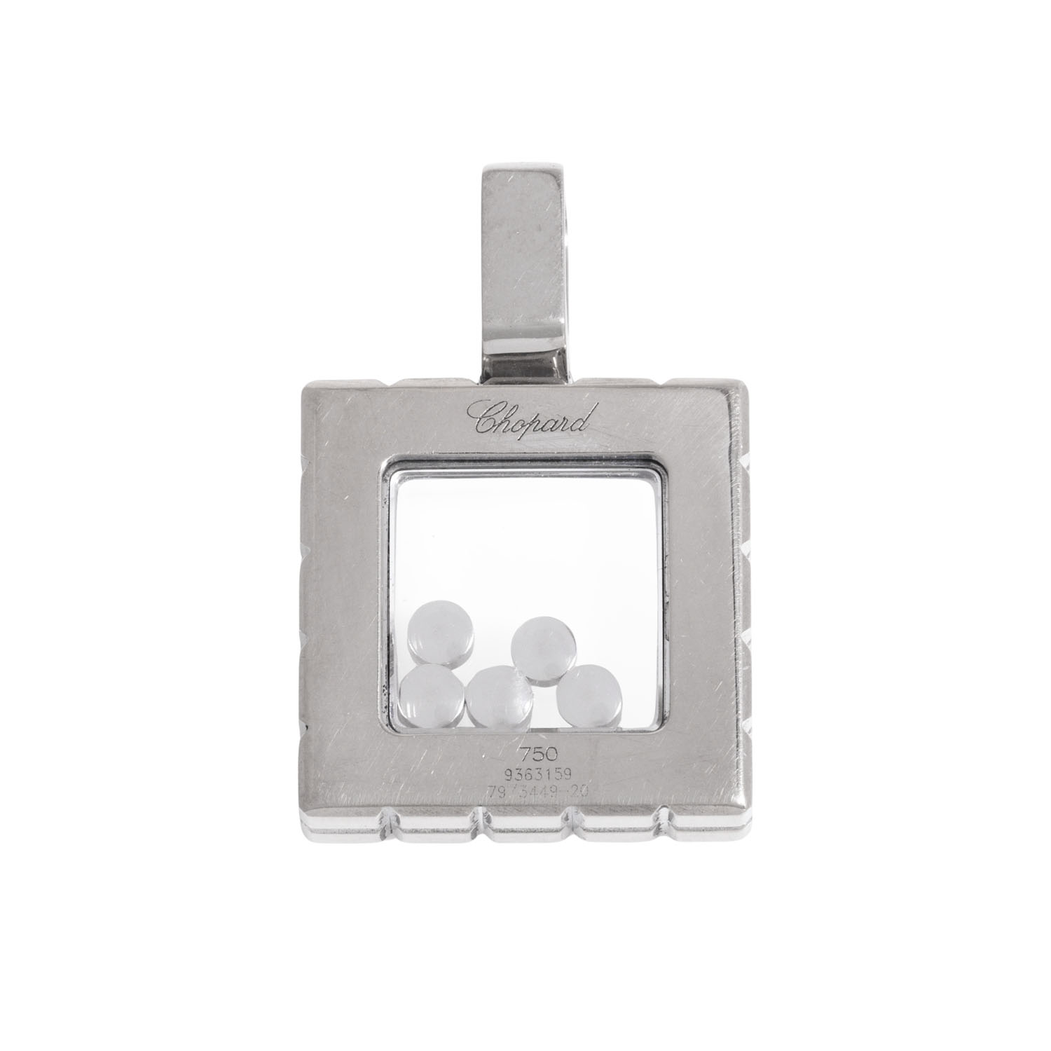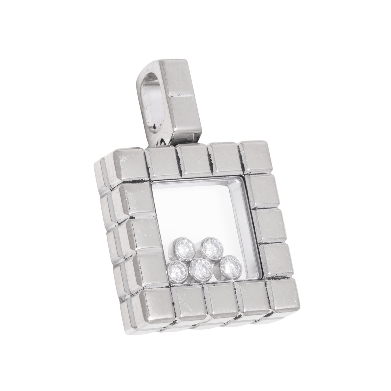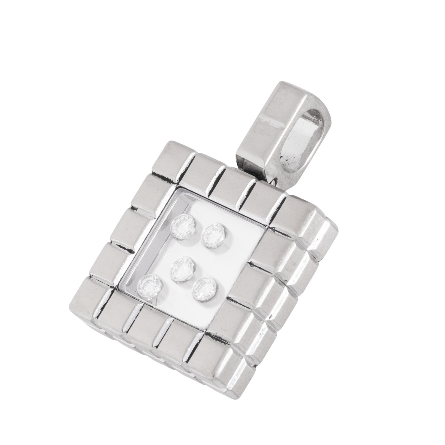 CHOPARD pendant ‘Ice Cube’ with 5 ‘Happy Diamonds’ totalling ca. 0.20 ct, very good colour and clarity, WG 18K, 13.5 g, 20th/21st century, minor signs of wear, engraved. CHOPARD 9363159.