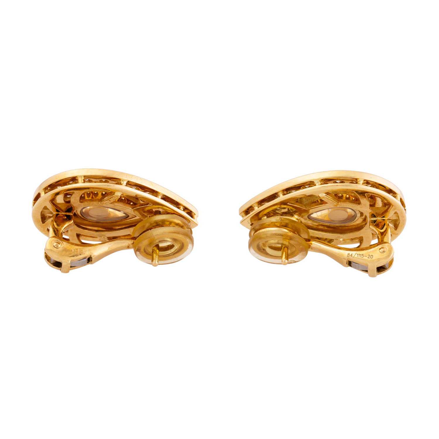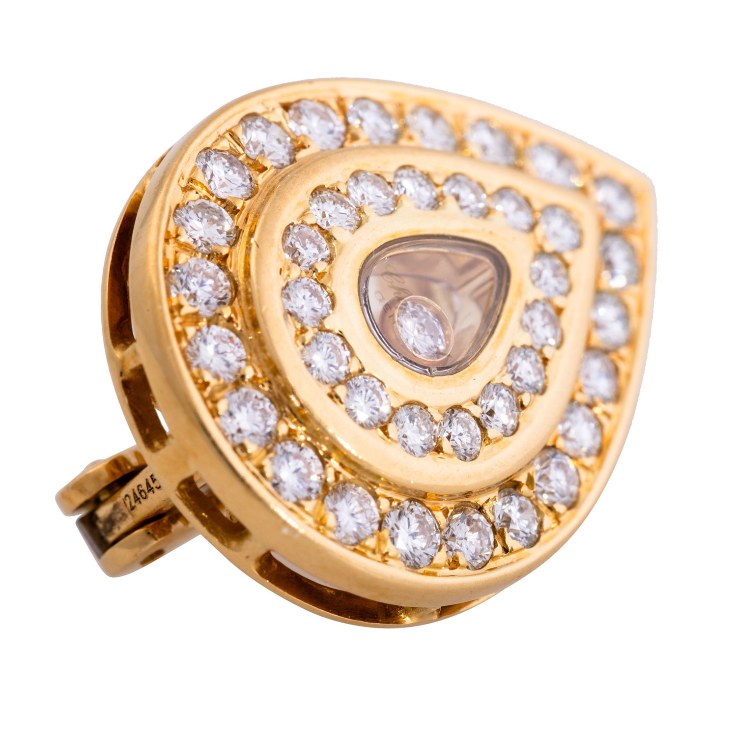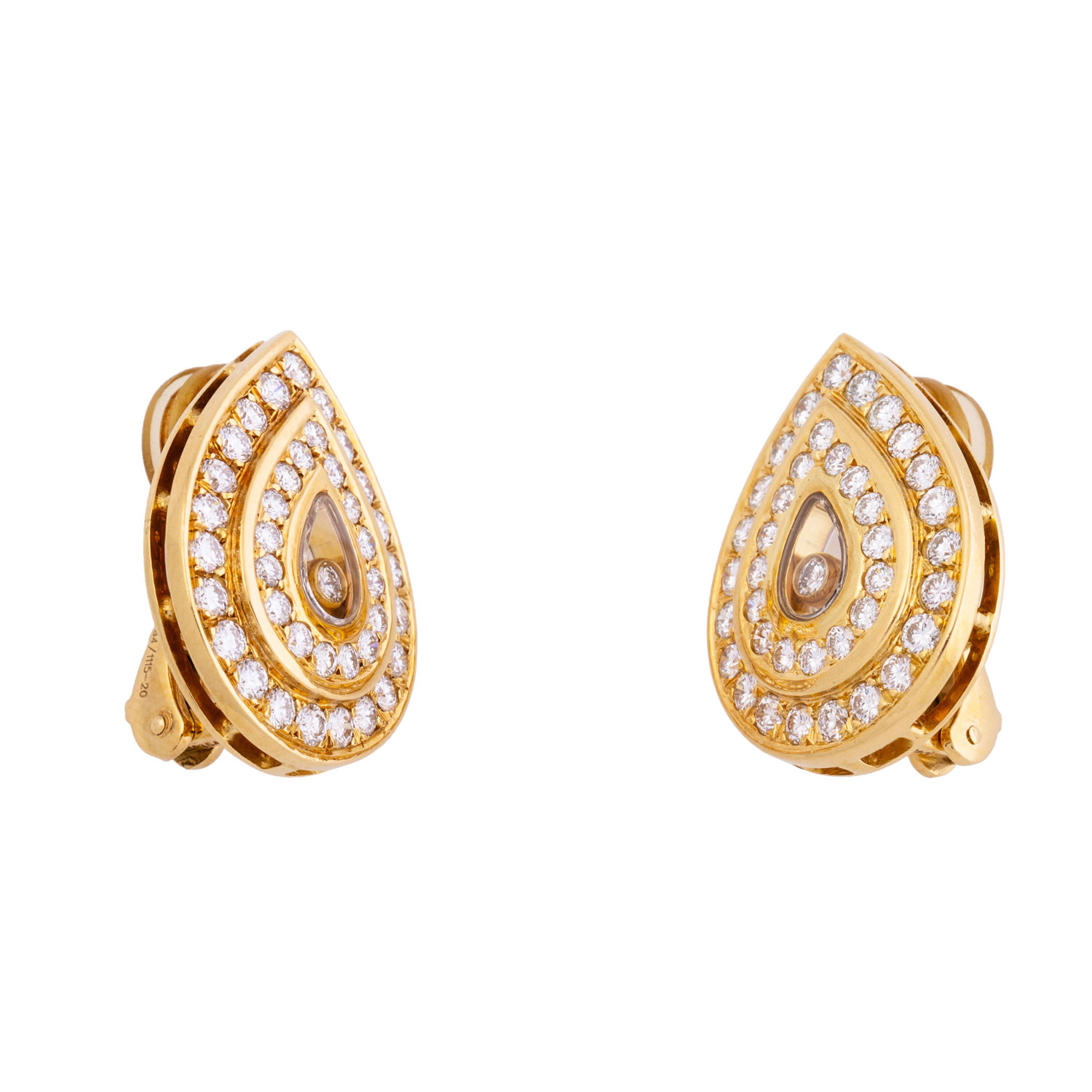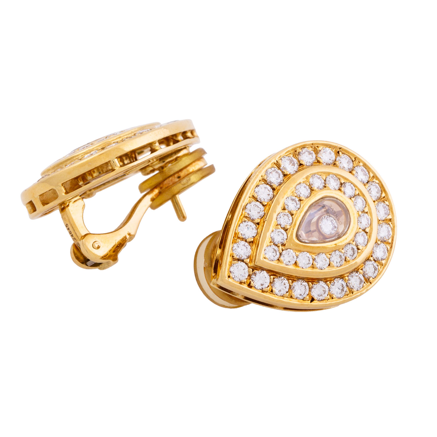 CHOPARD pear of ear clips with studs, brilliant-cut diamonds totalling approx. 2.3 ct, ca. RW (F-G)/VVS-VS, 18K YG, 15.2 g, end of 20th century, minor signs of wear, marker's mark. L x W 22,5 x 17,3 mm.