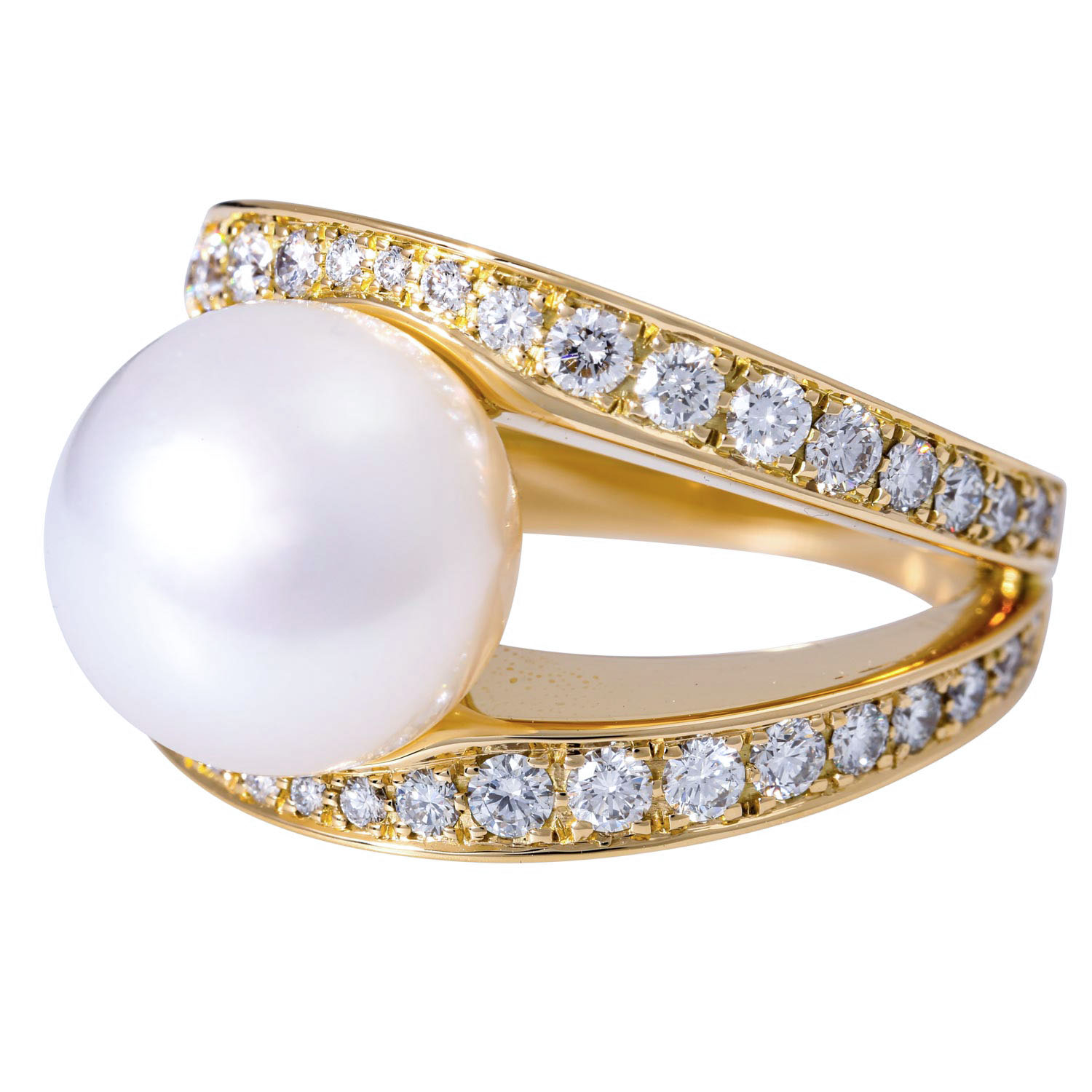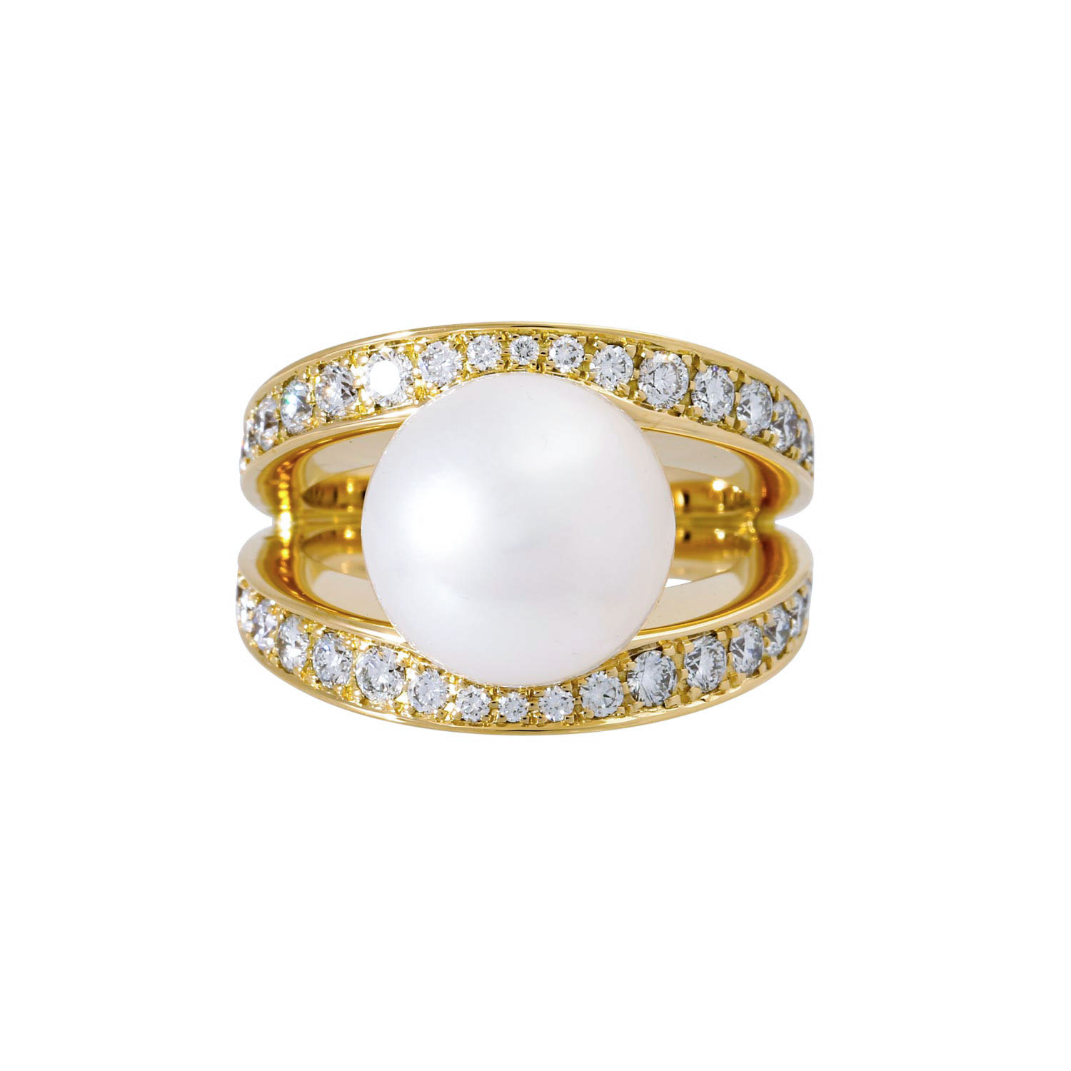 Ring with 2 South Sea pearls and diamonds