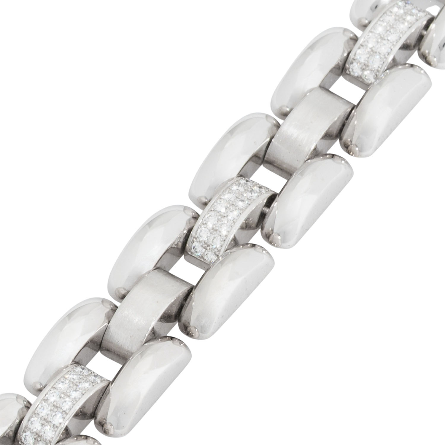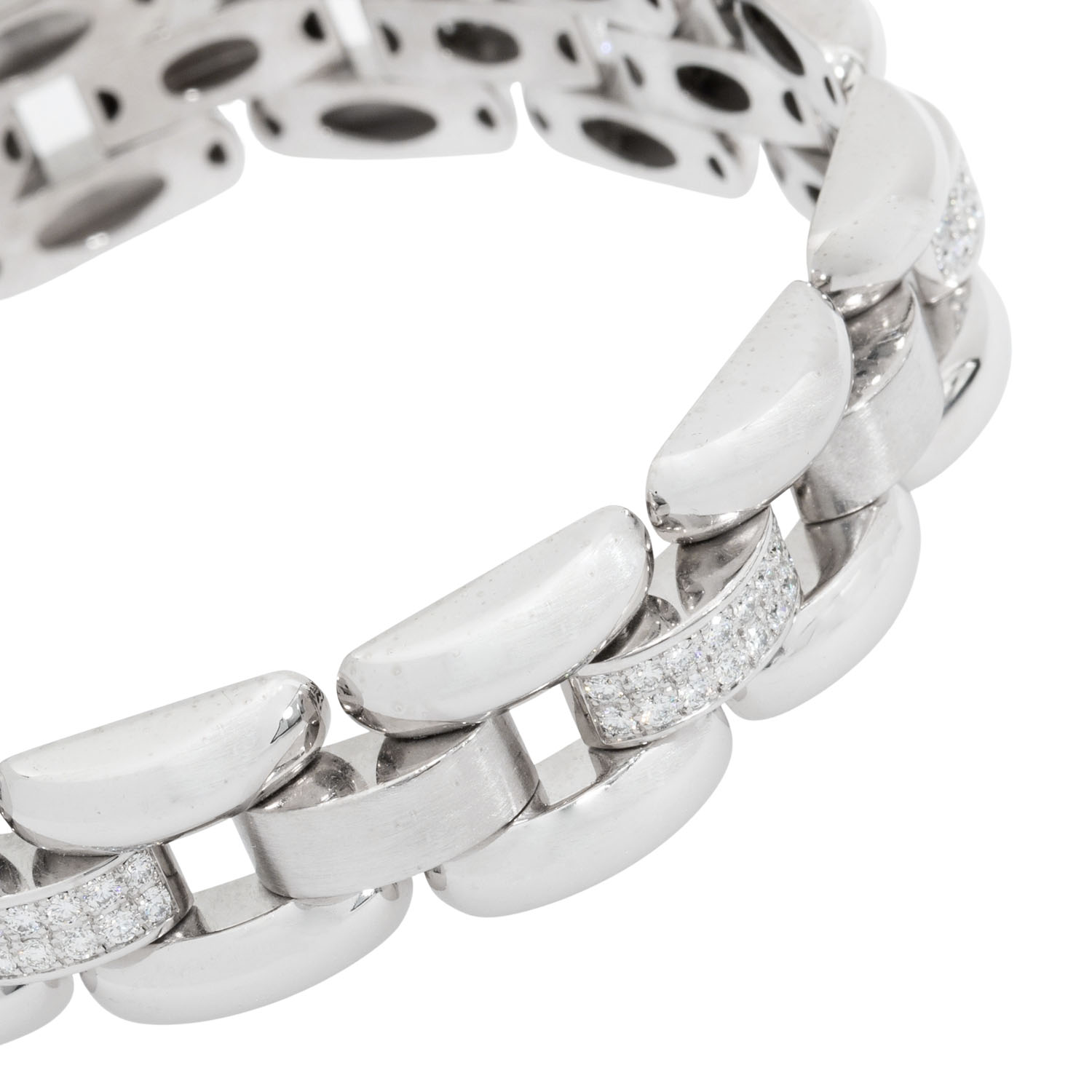 CHOPARD Bracelet 'La Strada', 96 brilliant cut diamonds, totaling ap. 1.92 ct, good colour and clarity, 18K white gold, 82.6 g, L: 21.5 cm, W: ap. 14.6 mm, drop clasp, late 20th century, slight signs of wear, CHOPARD reference 85/2672-41, serial no. 9364824.