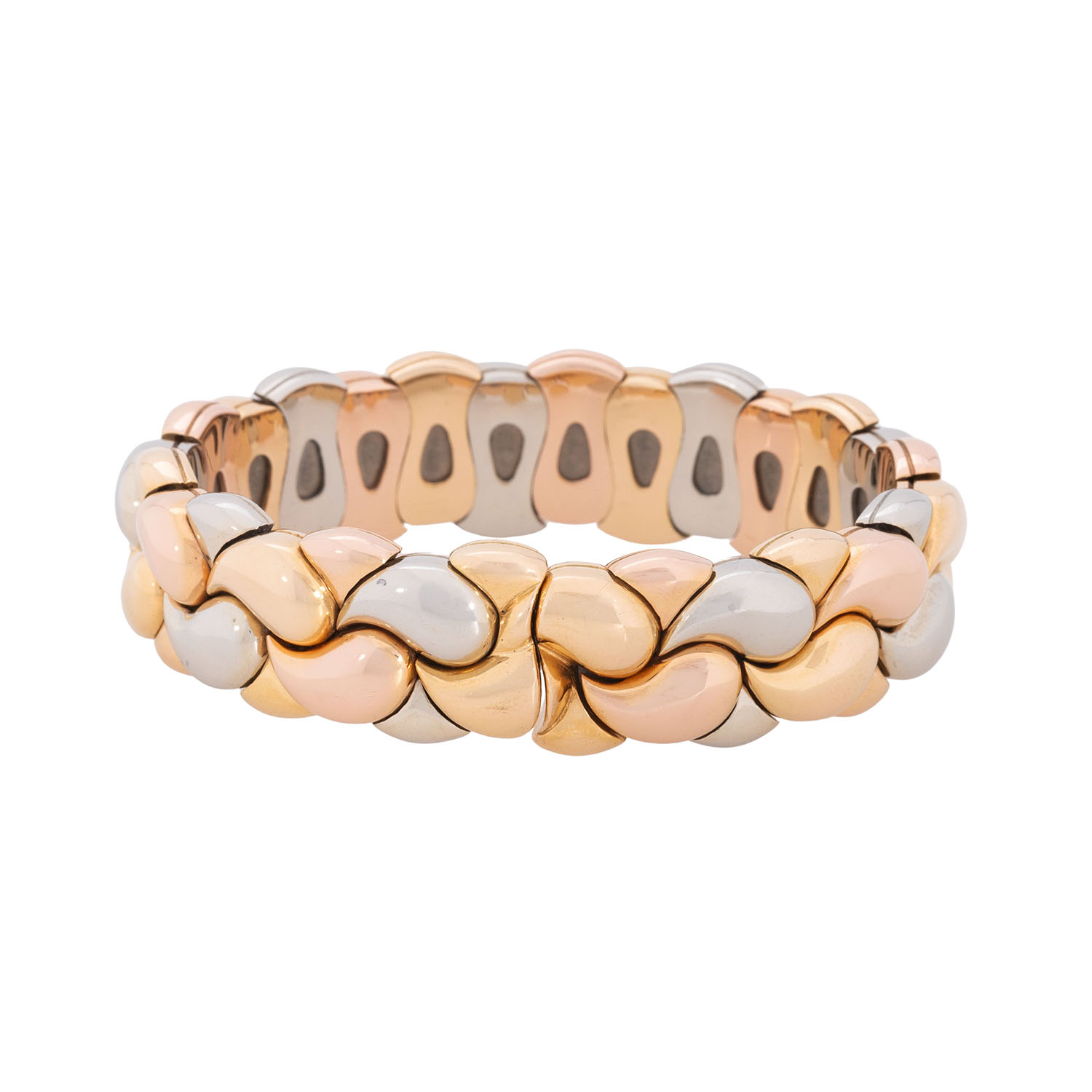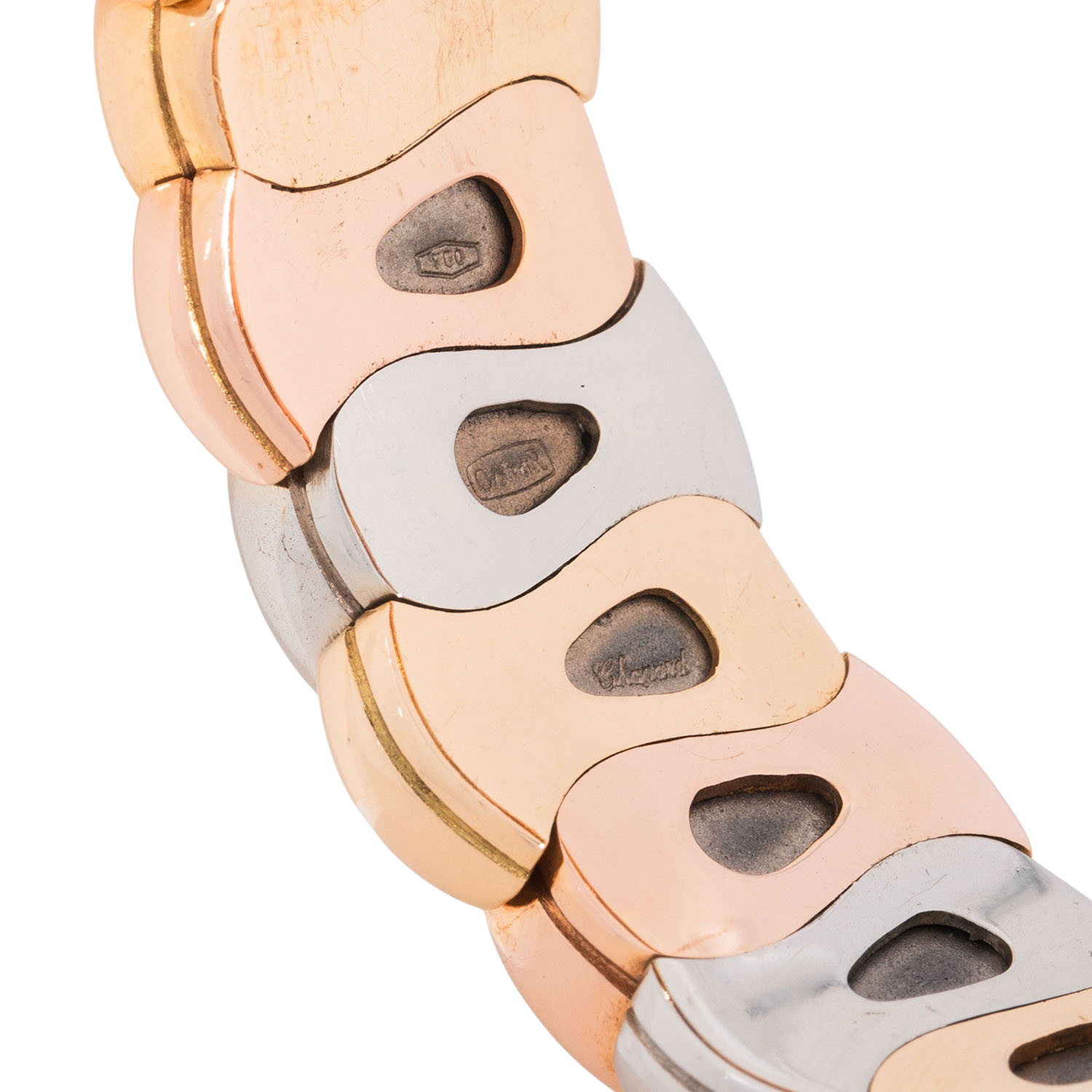 CHOPARD vintage bracelet 'Casmir', 18K YG/WG/RG, 108.7 gr, fit wrist size up to approx 17 cm, 2nd half of the 20th century, good condition, flexible.
