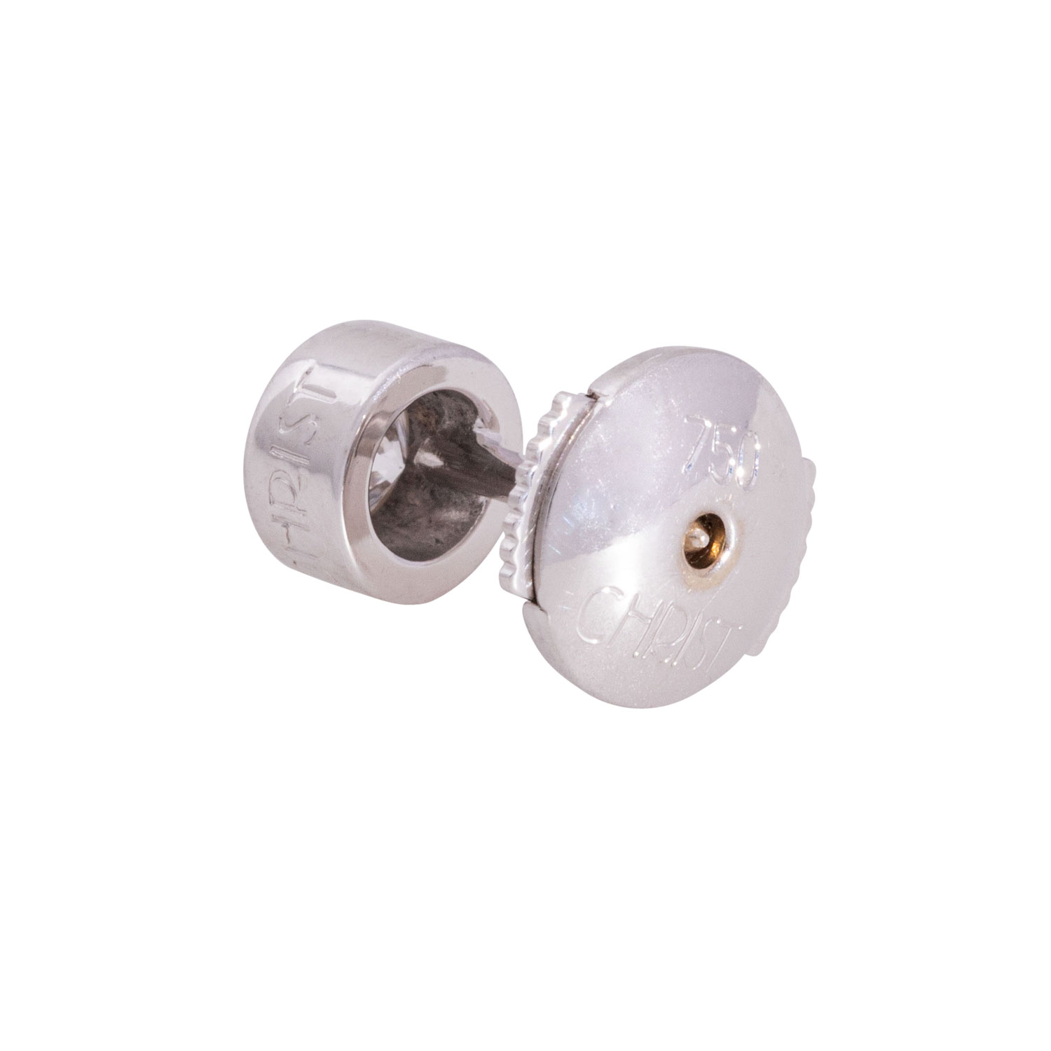 CHRIST Stickpin with brilliant cut diamond, ap. 0.25 ct, WHITE (H)/P, 18K white gold, 1.0 g, D: 5.2 mm, late 20th century, minimal signs of wear.