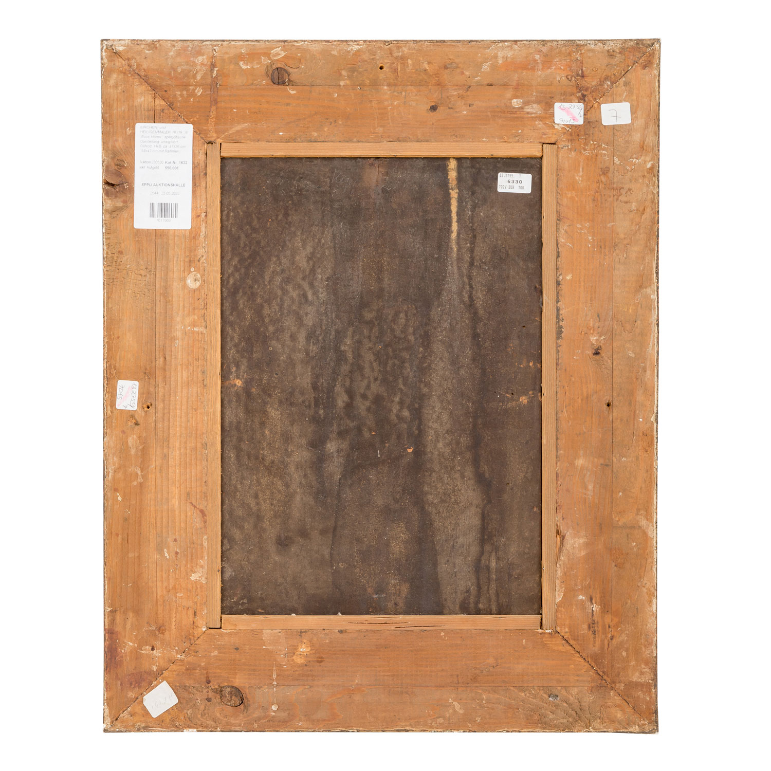 CHURCH AND HOLY PAINTERS 18th/19th Century, ""Ecce Homo"", late Gothic representation, unsigned, oil / wood, HxW: approx. 37x26 cm (53x43 cm with frame). Drying crack in the plate, restored and retouched. With frame. Signs of age.