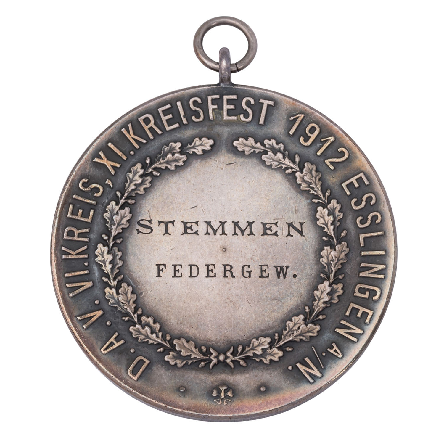 City of Esslingen - Silver prize medal 1912 for Stemmen featherweight, on the occasion of the D.A.V. VI. Kreis, XI. Kreisfest 1912 in Esslingen am Neckar, edge hallmark “950 SILBER” with ring and eyelet, EF, toning, scratches, slightly rubbed, edge nicks, fingerprints, 24,97g Ag rough.