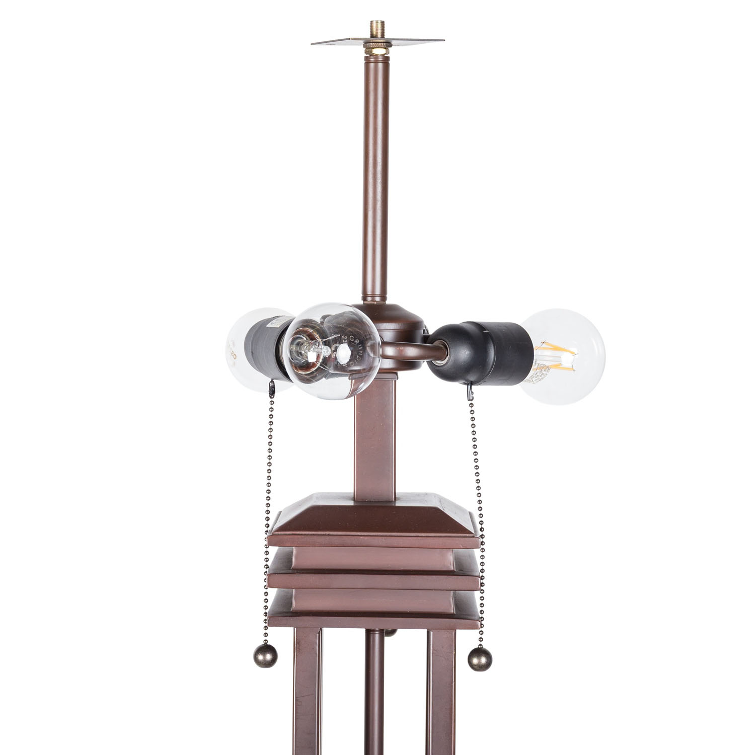 PAIR OF TABLE LAMPS WITH CERAMIC BASE AND PAGODA SHADE IN ASIAN STYLE,