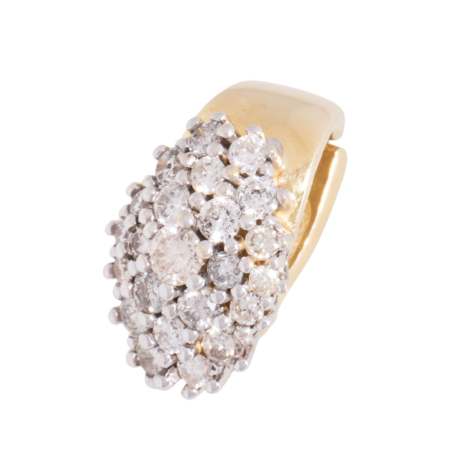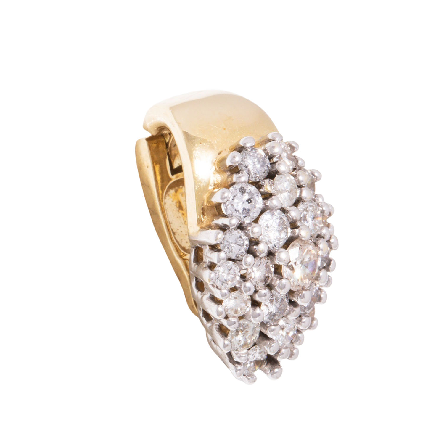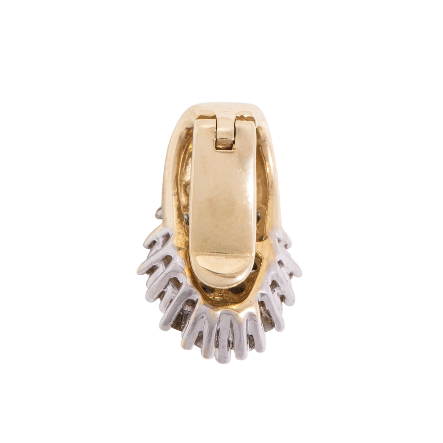 Clip pendant with brilliant-cut diamonds totalling ca. 0.5 ct, good to medium colour and medium to low clarity, 14K yellow gold, partly rhodium plated, 4 g, 1.8x1.1 cm, late 20th century, signs of wear.