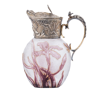 DAUM FRÈRES & CIE, Art Nouveau Weinkaraffe mit Silbermontur (925),