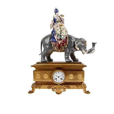 MEISSEN, Prächtige Kaminuhr "Sultanin auf Elefant", 1807-1918.