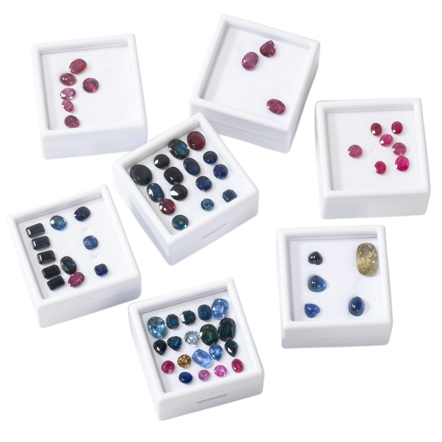 Bundle of 66 korundums, different colours, sizes and cuts, largest stone: c. 5 ct (11.9 x 7.4 x 5.9 mm), abundant collection showing wide range of colours, some stones slightly chipped, some abraded facet edges. All stones without detailed gemological testing! (Pos. 2.5)