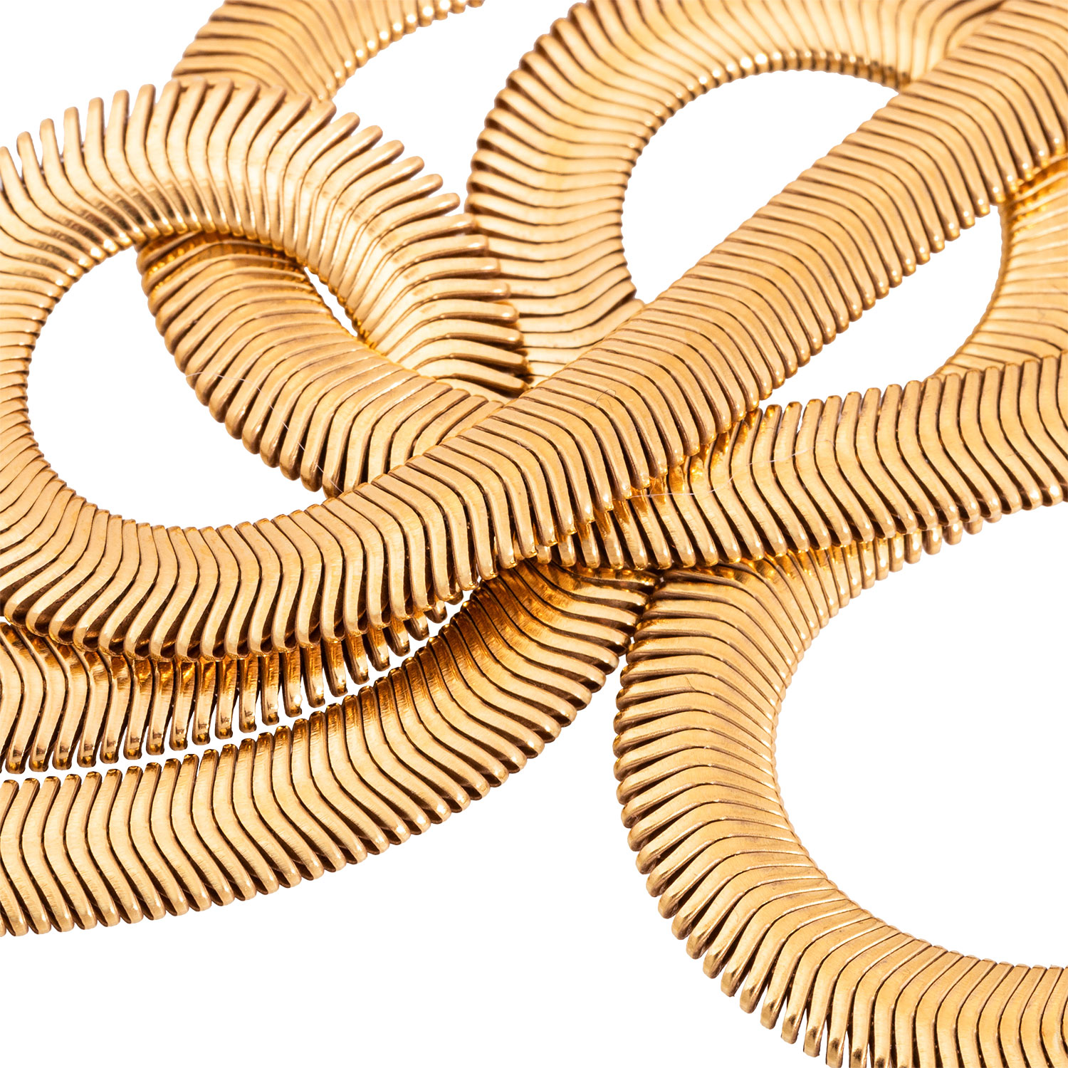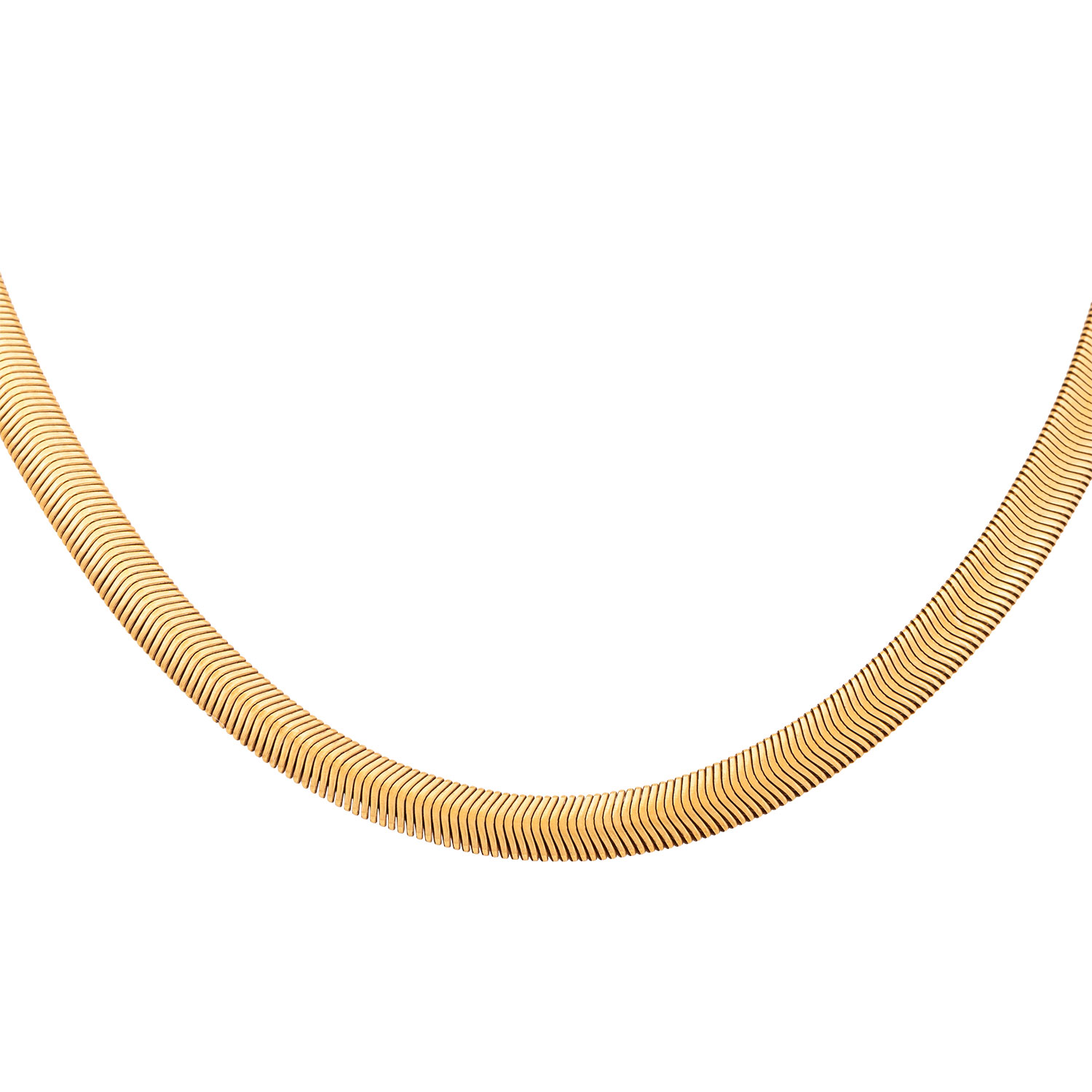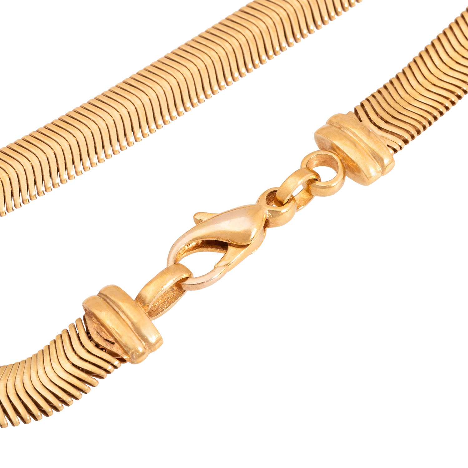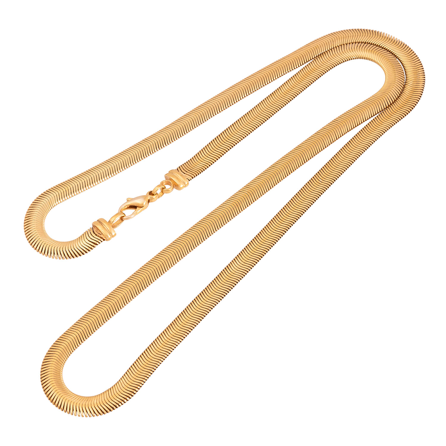 Necklace, flat snake chain, 14K yellow gold, 44.5 g, L: 65 cm, W x H: 6.3 x 2.1 mm, carabiner clasp, late 20th century, minimal signs of wear.