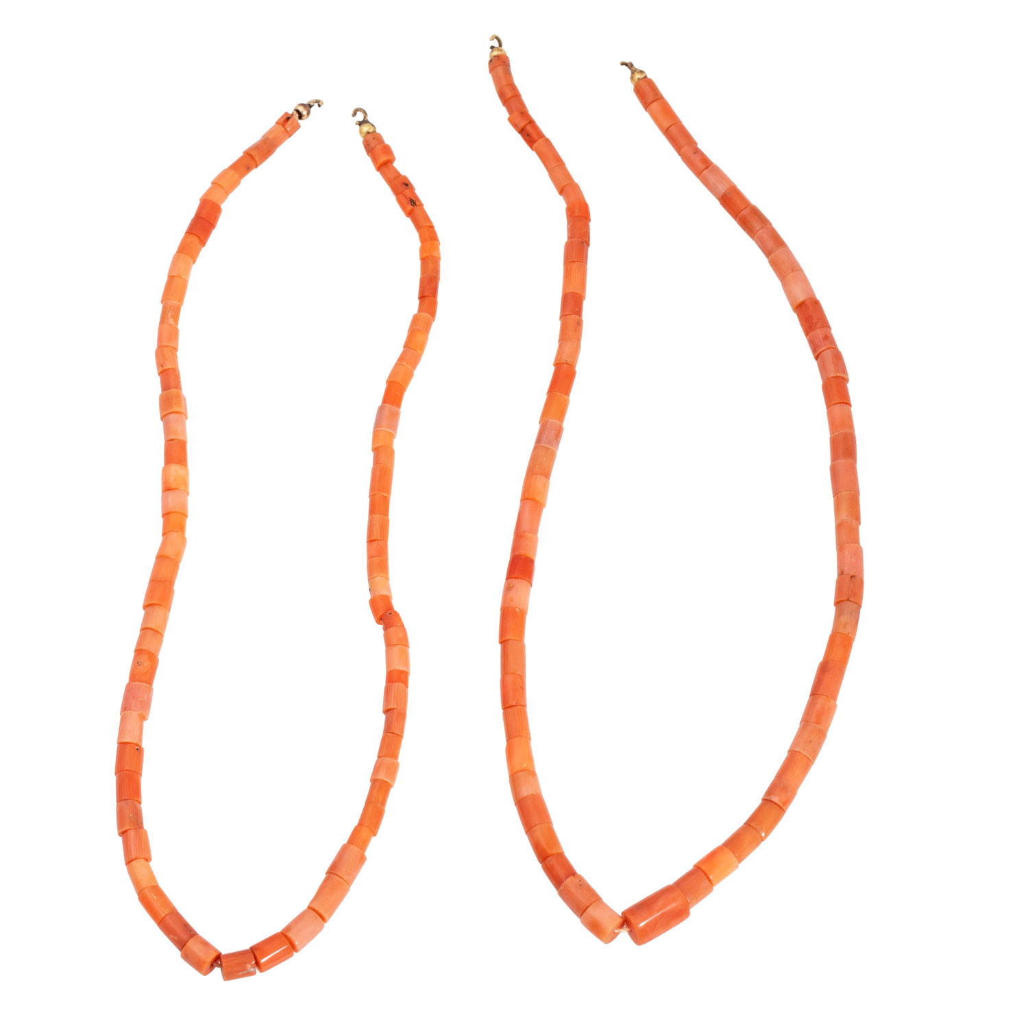 2-row coral necklace in sizes ranging from 3.5-7 mm,