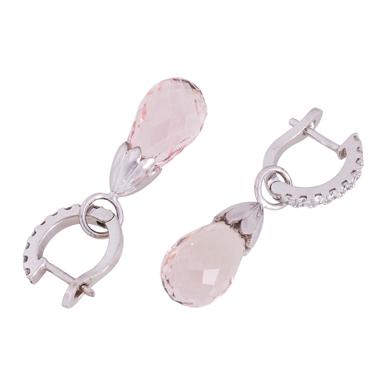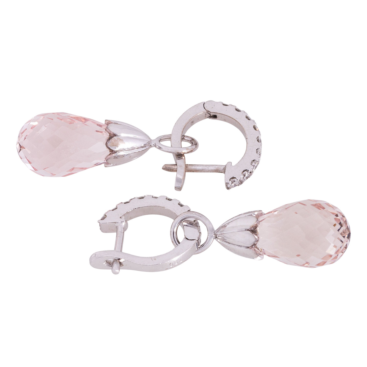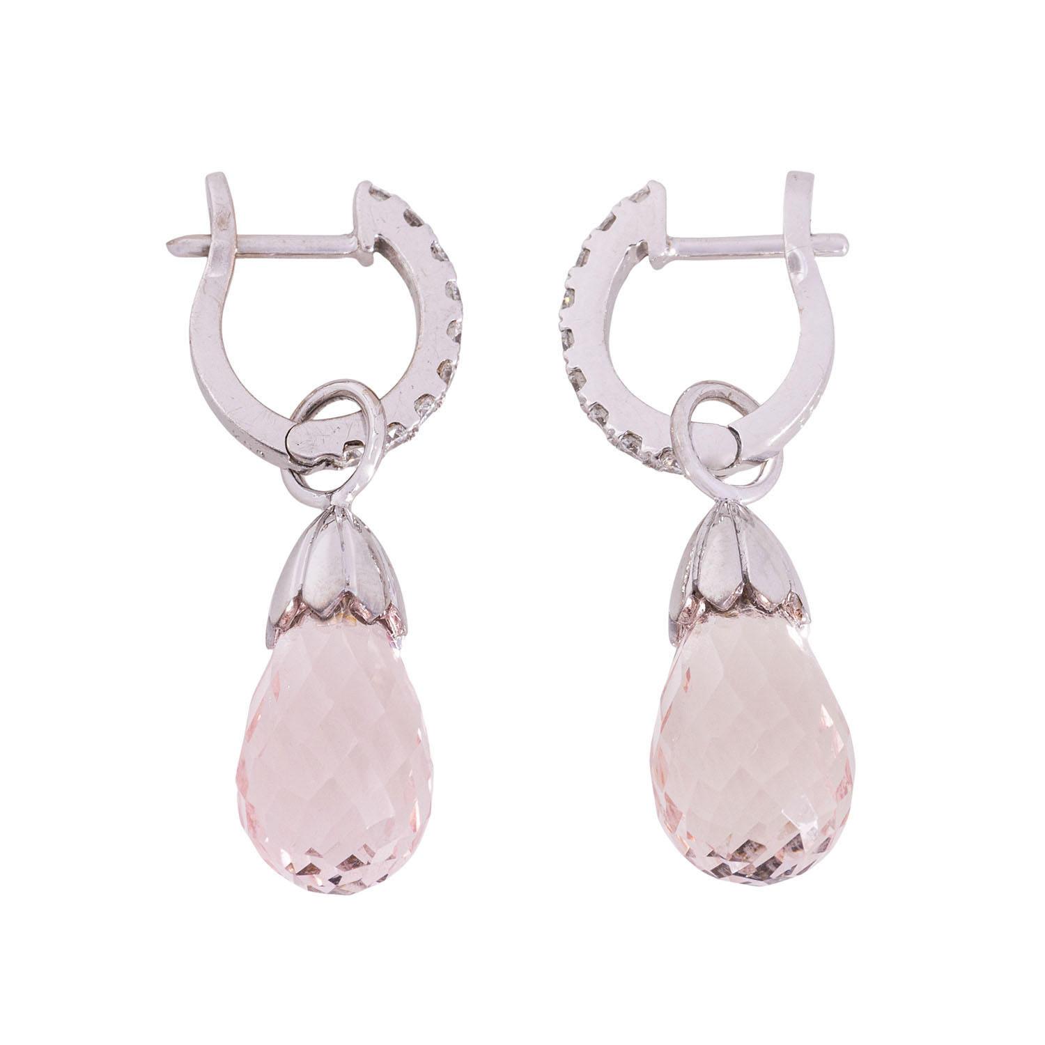 Créoles, especially with 2 fine, briolette-set morganite pampels 11.47 ct.
