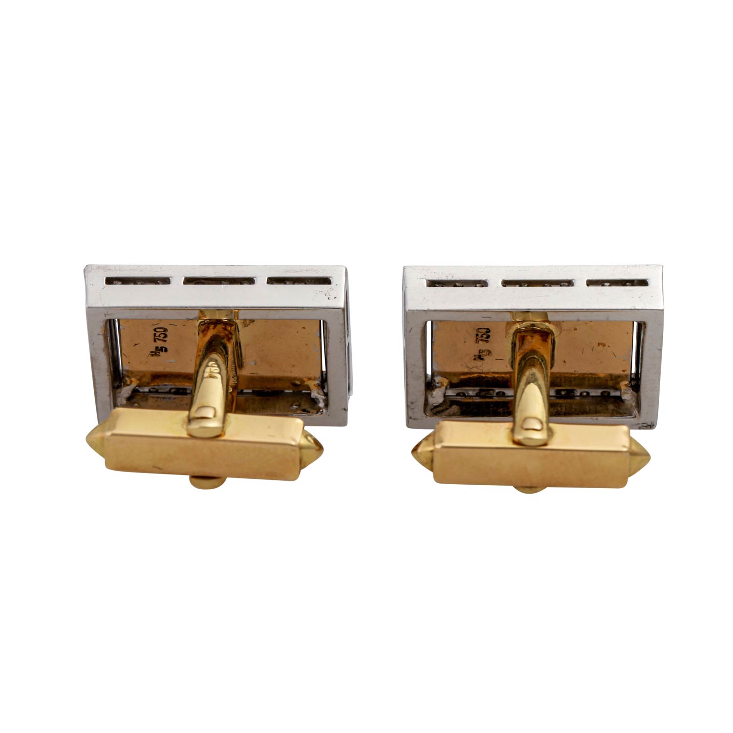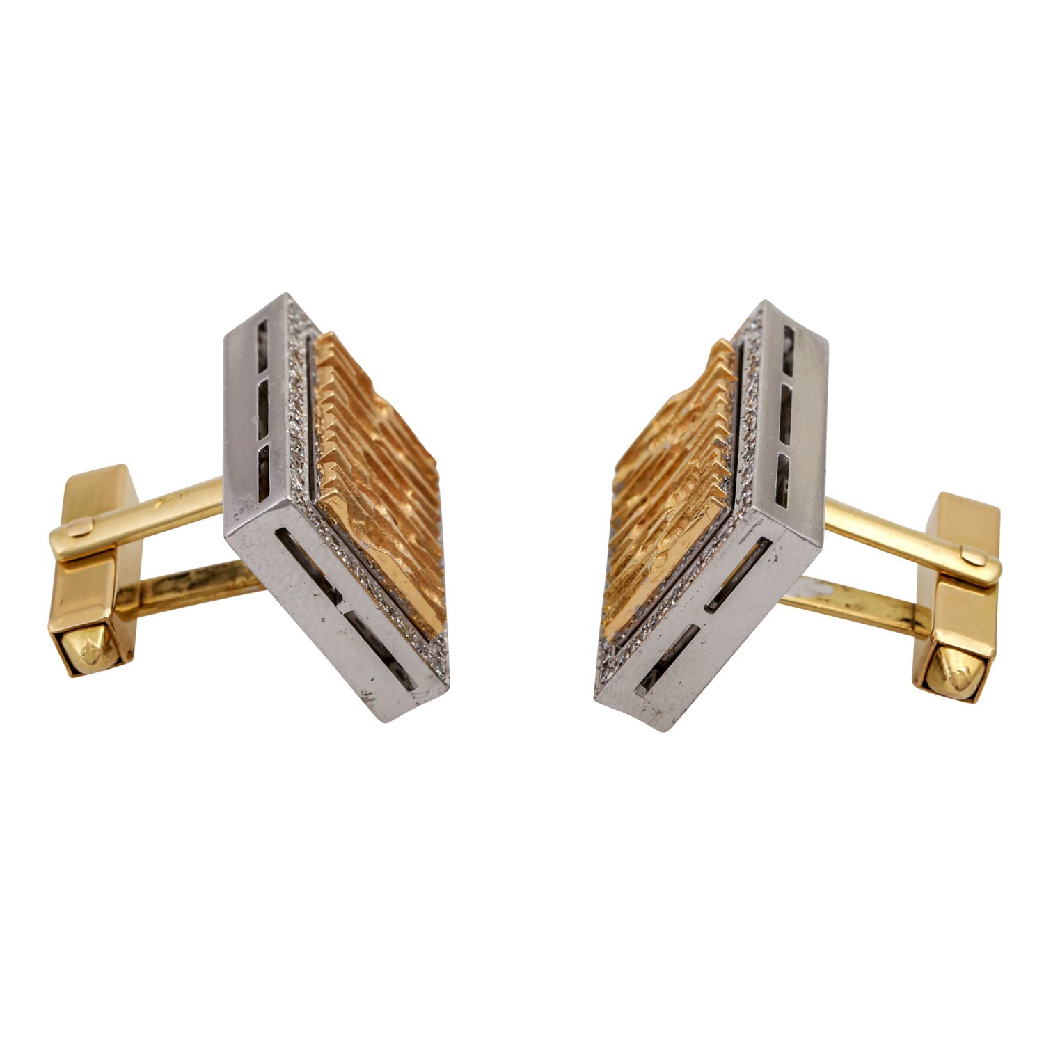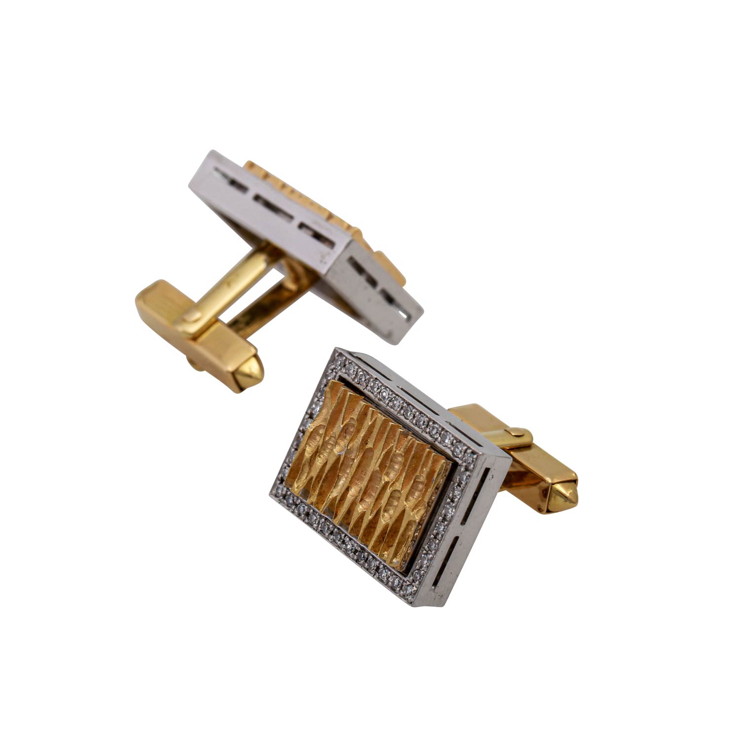 Pair of cufflinks with 1 brilliant-cut diamond and 47 octagonal diamonds