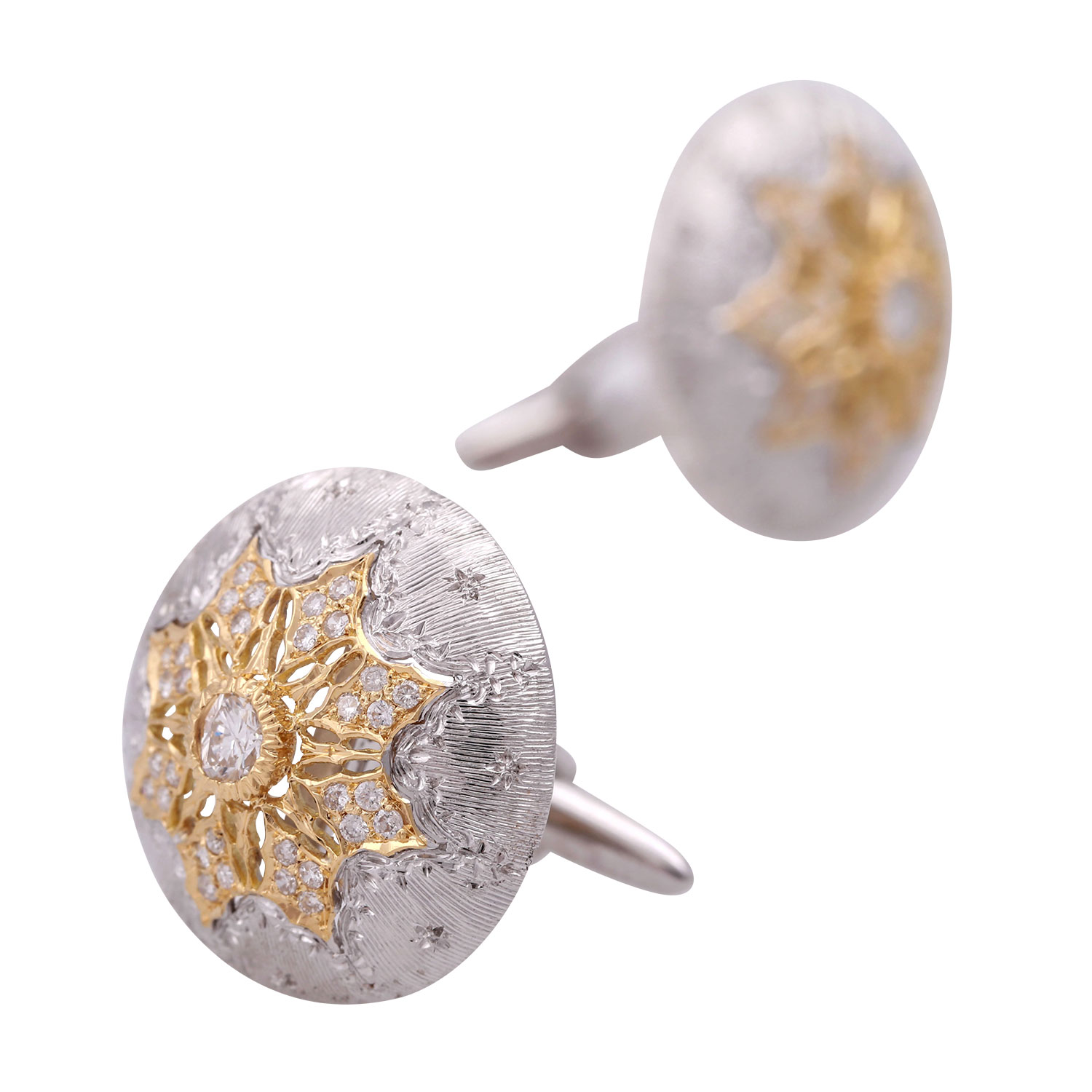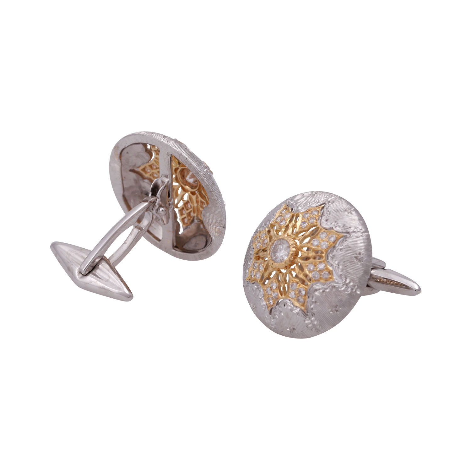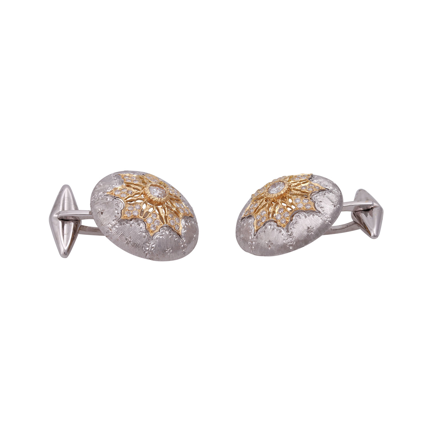 Cufflinks (pair), especially with diam. brill. totaling 1.16 cts. FW/VSI and elaborate chasing.