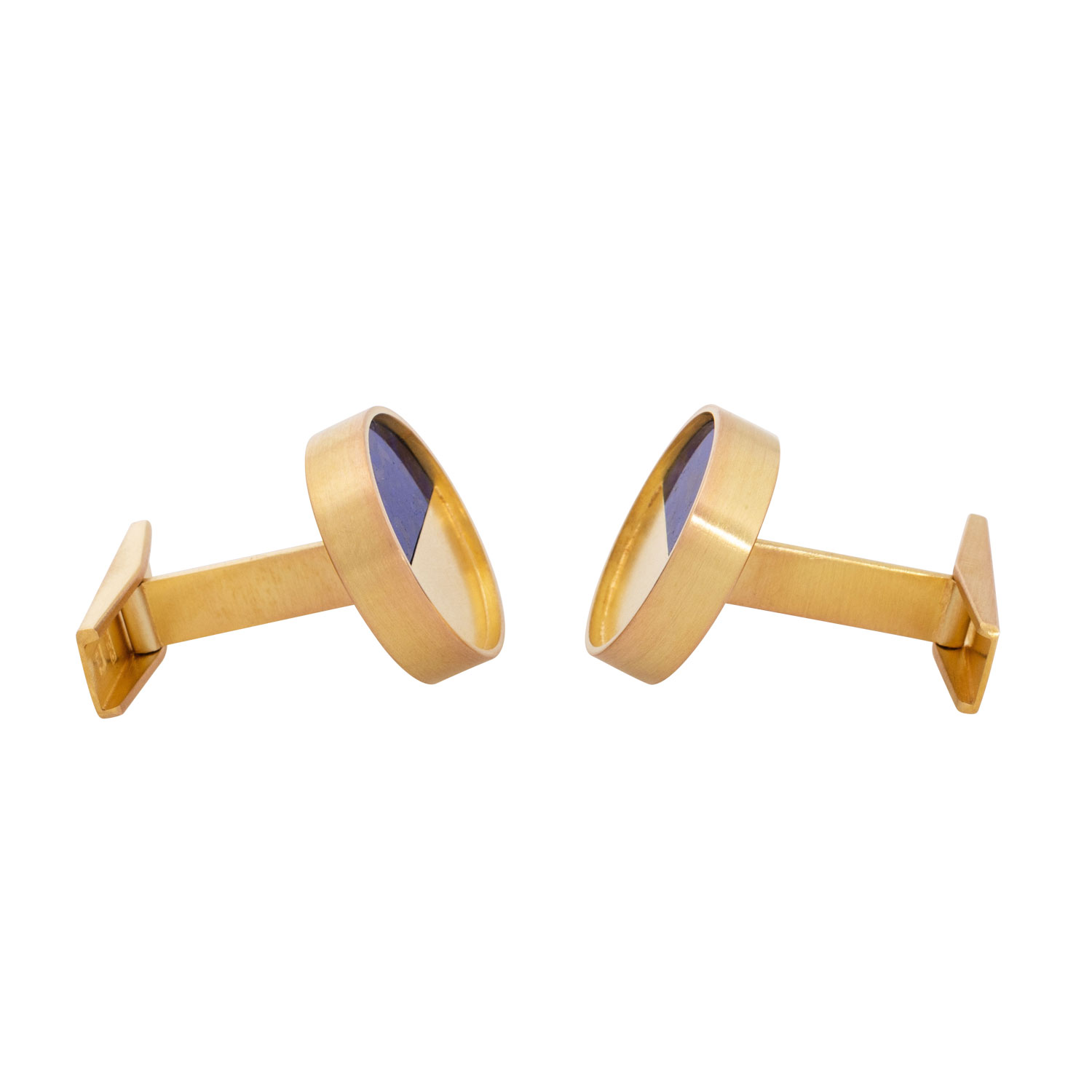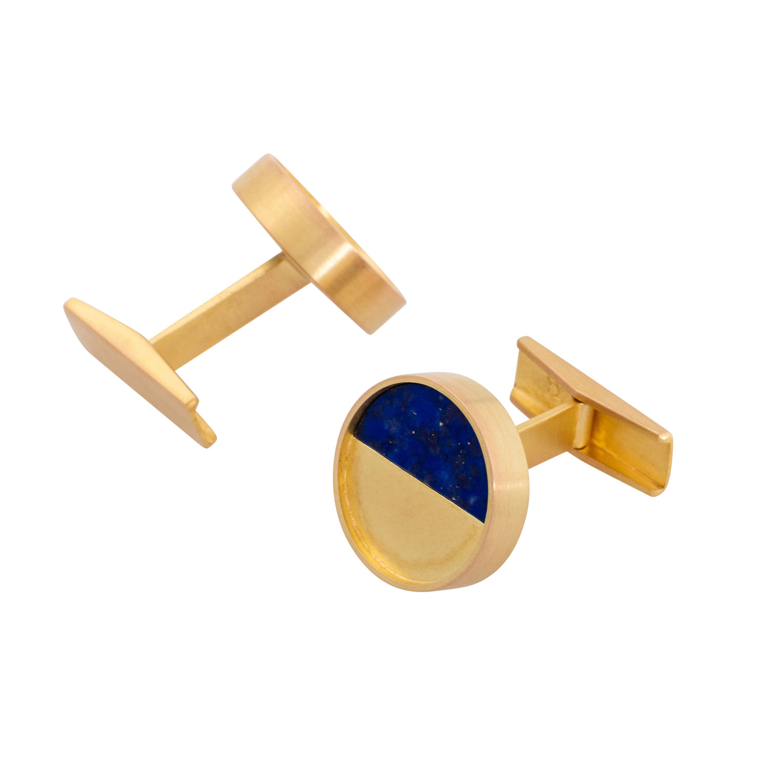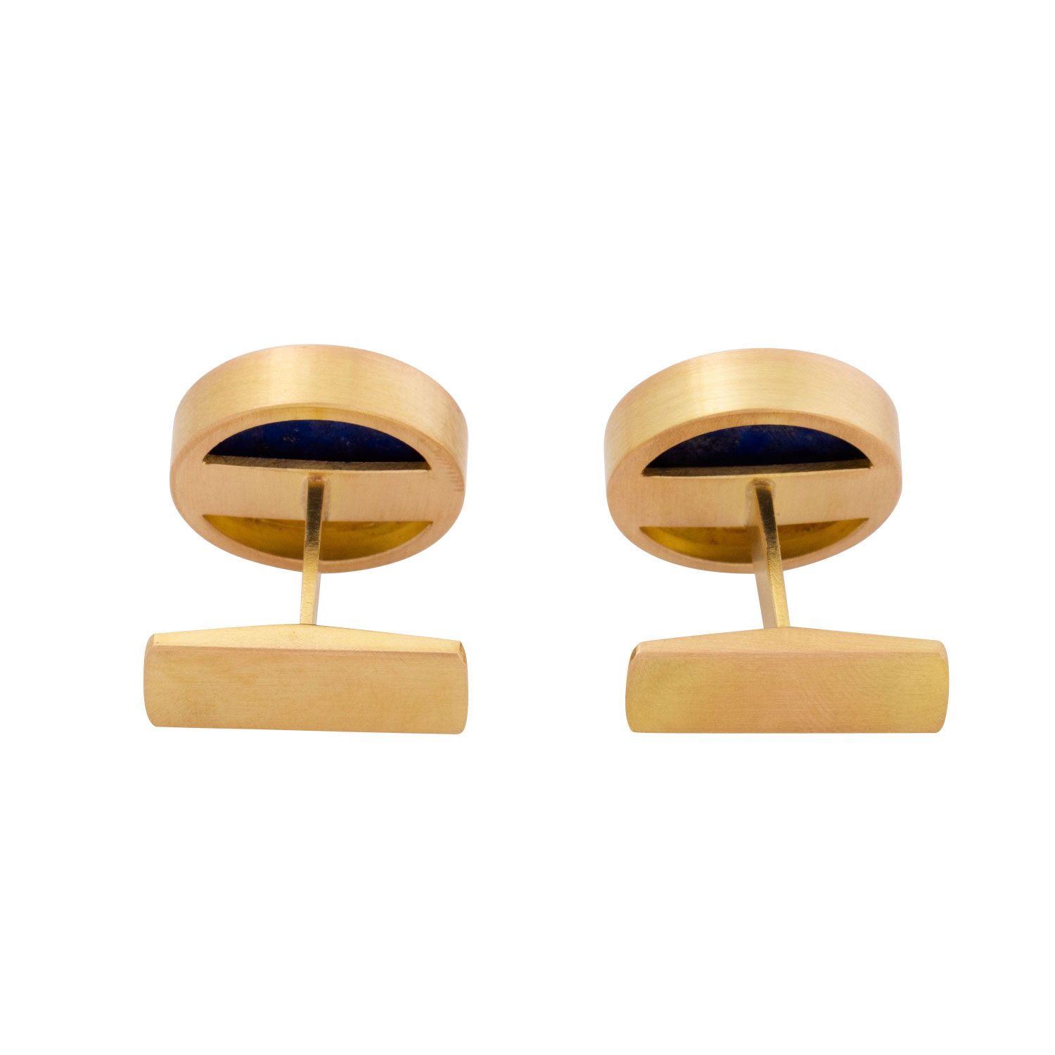 Pair of cuff links with lapis lazuli , D: ca. 19 mm, 18K yellow gold, 16.8 g, late 20th century, minimal signs of wear.