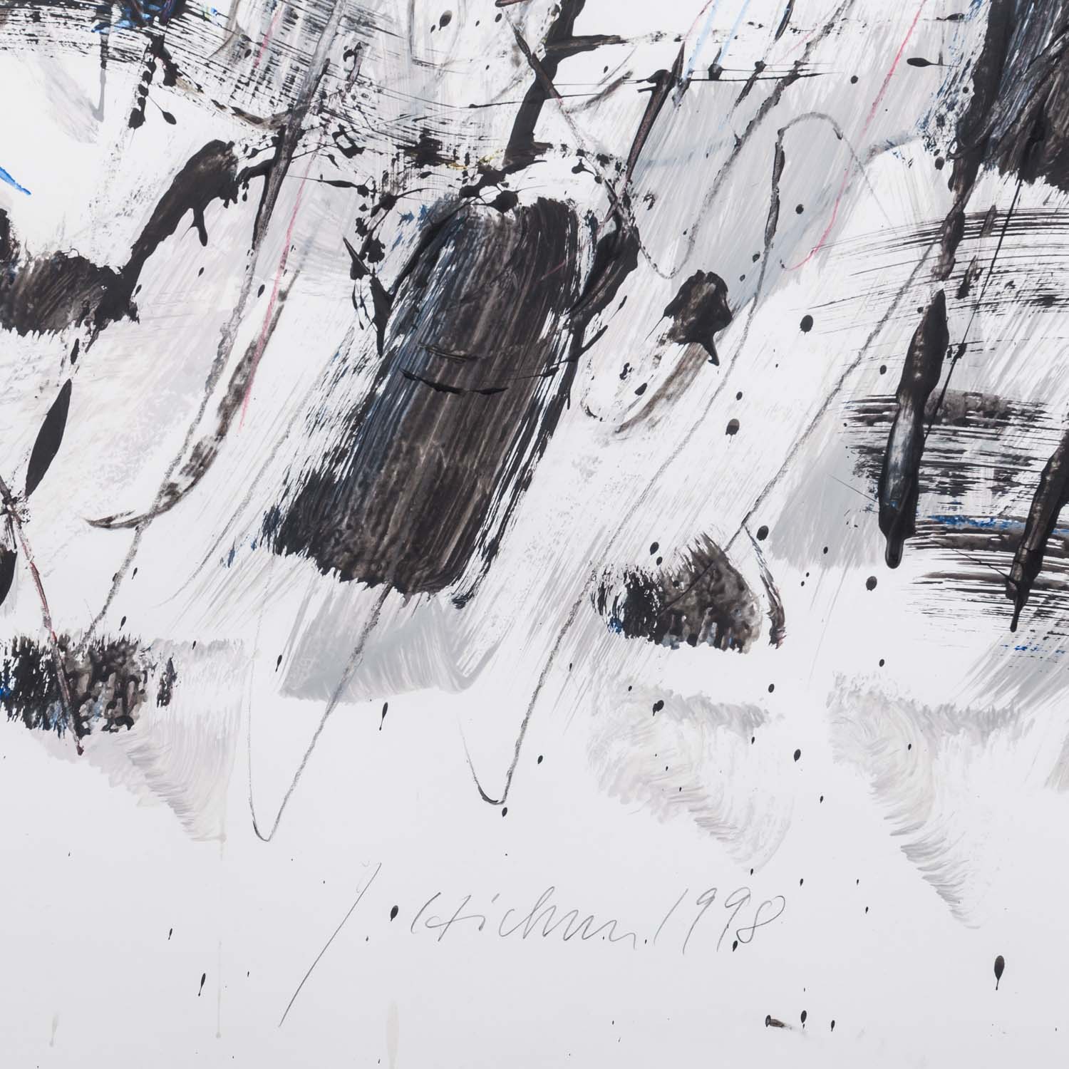CZICHON, JOACHIM (born 1952), 2 Abstract Compositions, 1998 and 2001, each signed and dated lower centre, each mixed media/paper, HxW: sheet each approx. 100x70 cm (103x73 cm with frame). Each with traces of age, slightly wavy. Each with glazed frame.