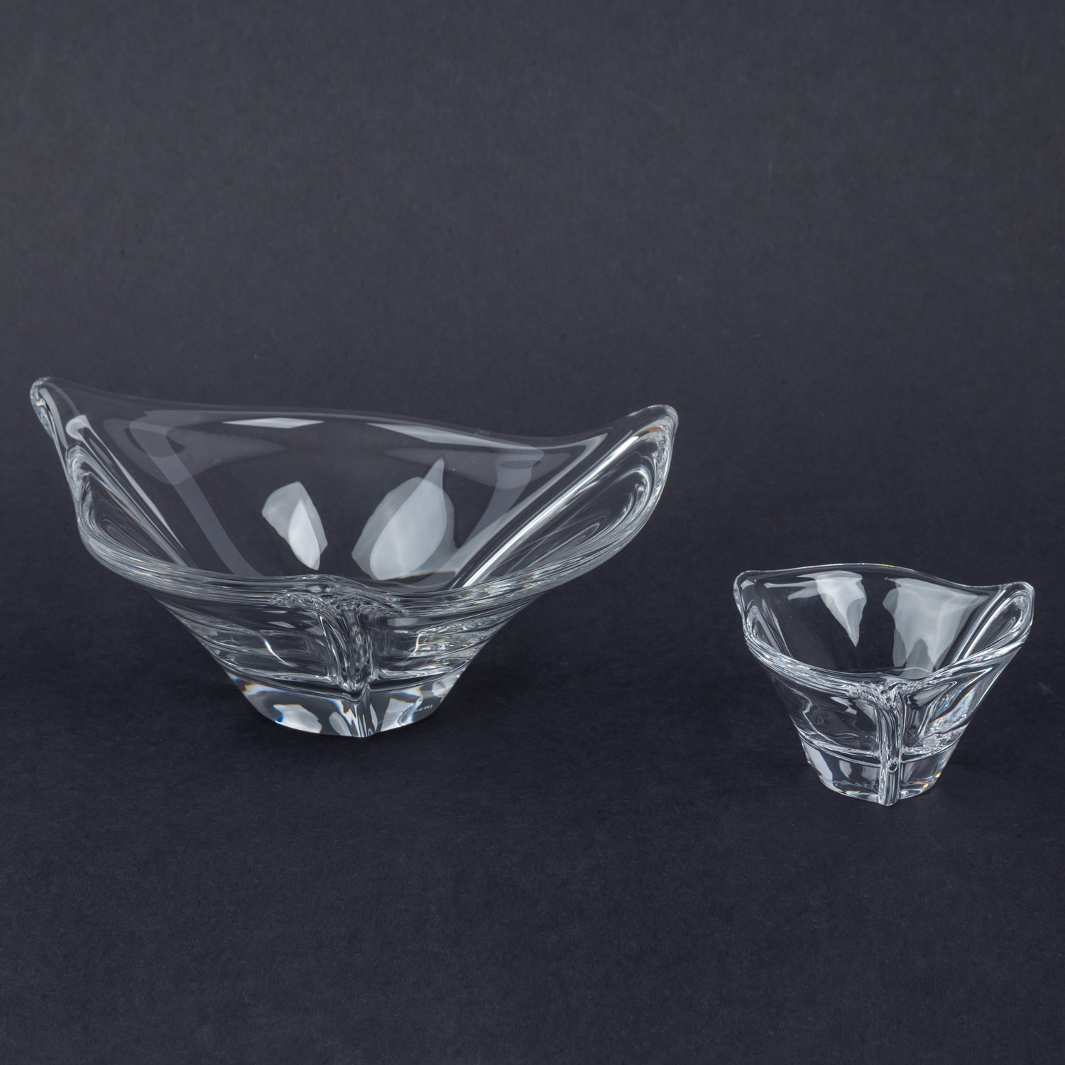 DAUM FRANCE 2 bowls, 20th century. Colourless crystal glass, marked Daum France, d. approx. 9.5-20 cm. Scratches, signs of age and use.