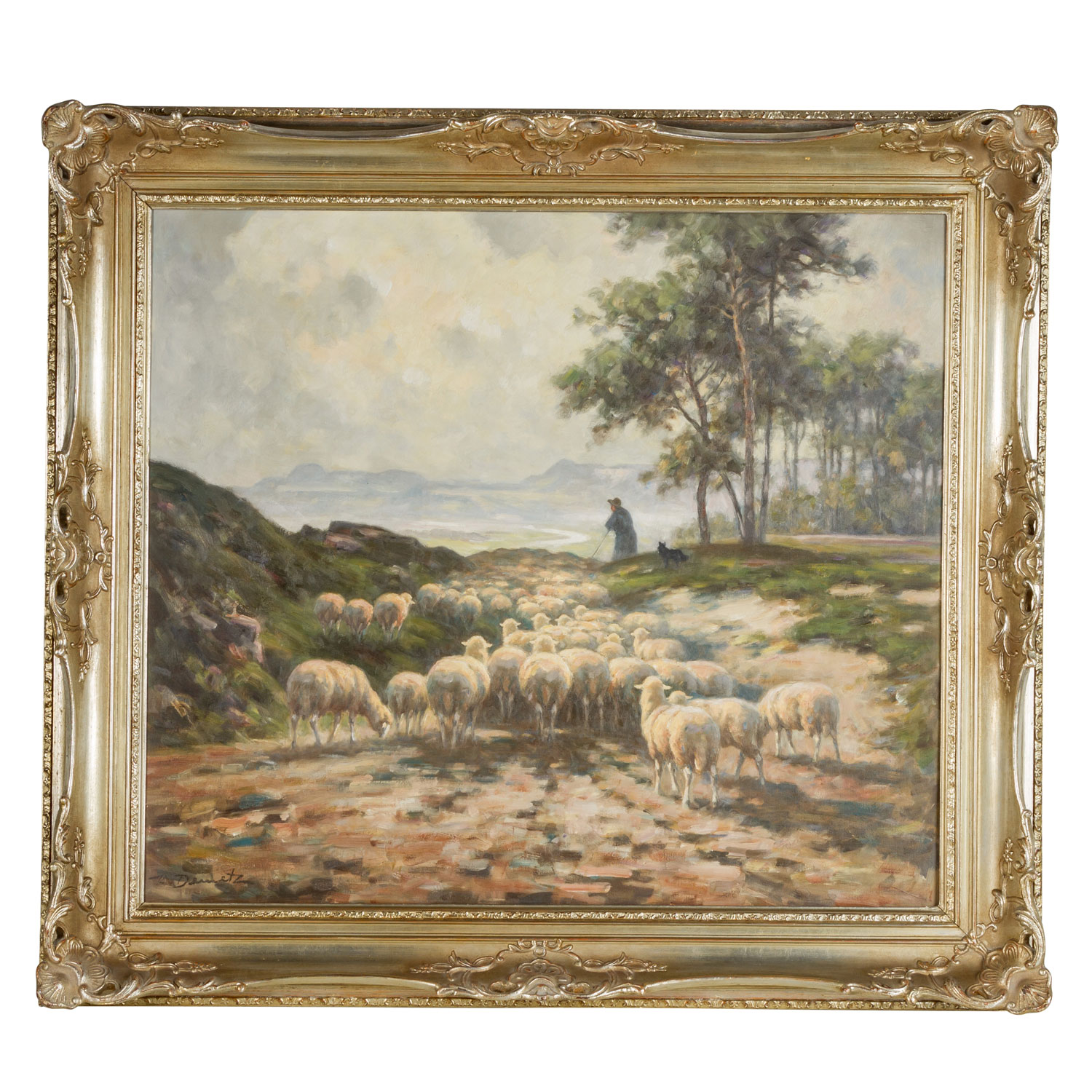 VAN DER HEIDE, J. WILHELM (1878-1956), "Landscape with shepherd and flock".