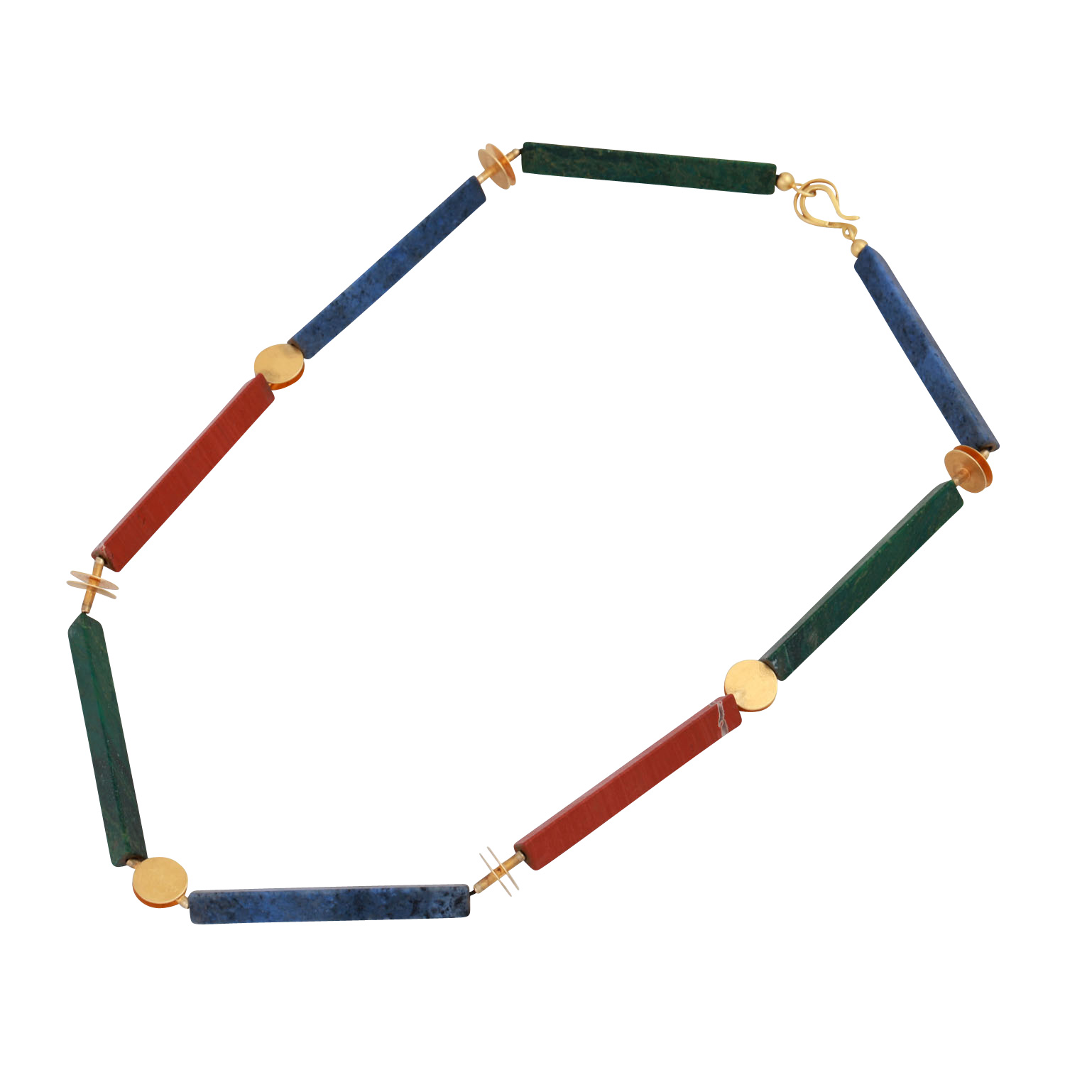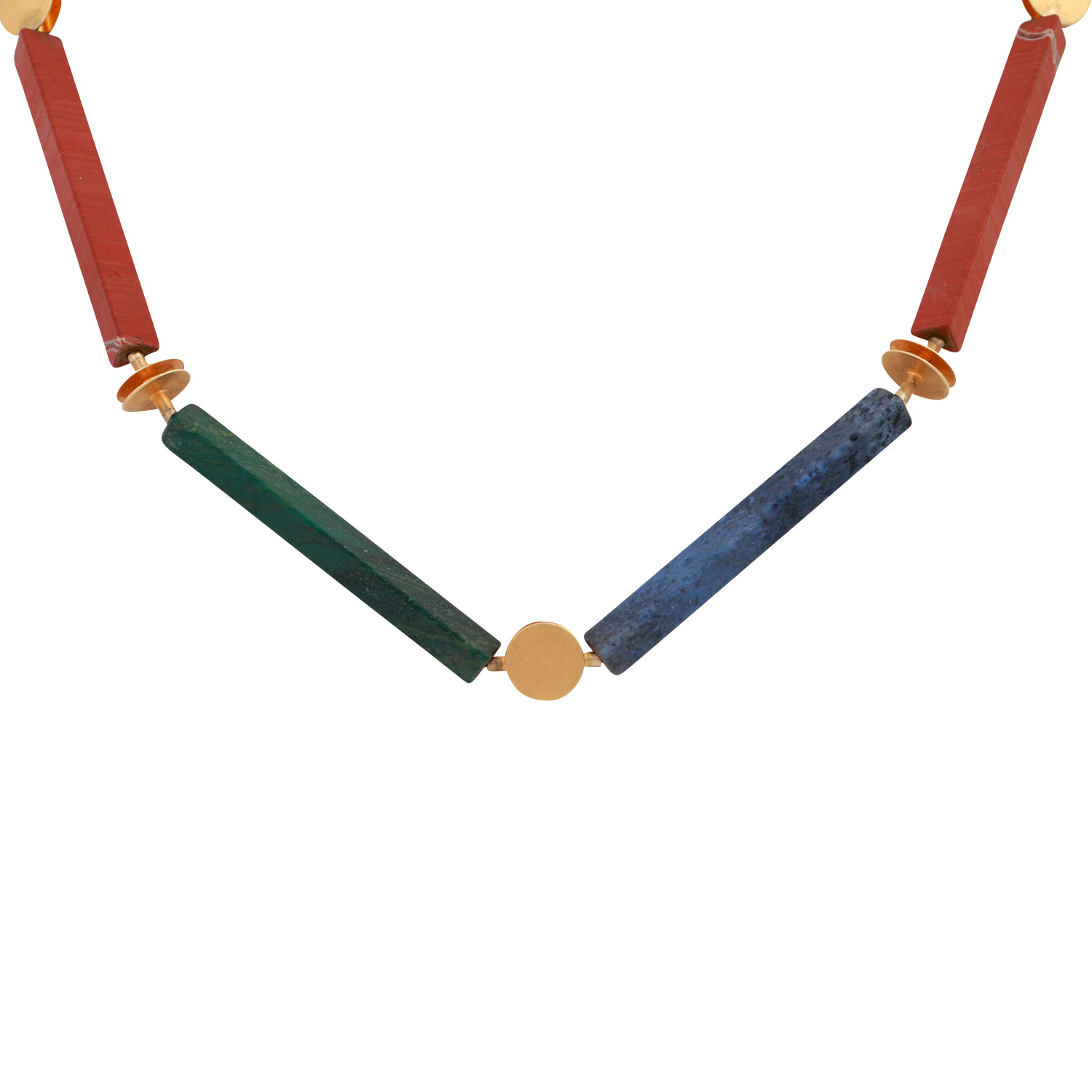 Designer necklace made of long gemstone prisms,
