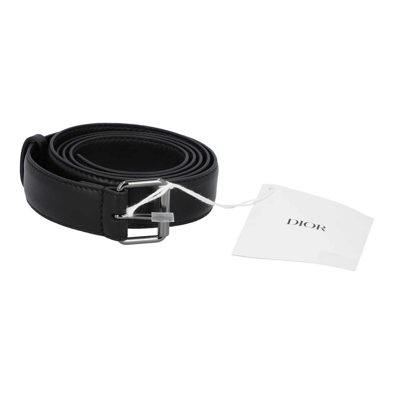 DIOR belt, lenght 75cm. Black leather strap with silver-colored pin buckle. Width approx. 24 mm. Total length approx. 120 cm. Dust bag included. Very good condition.