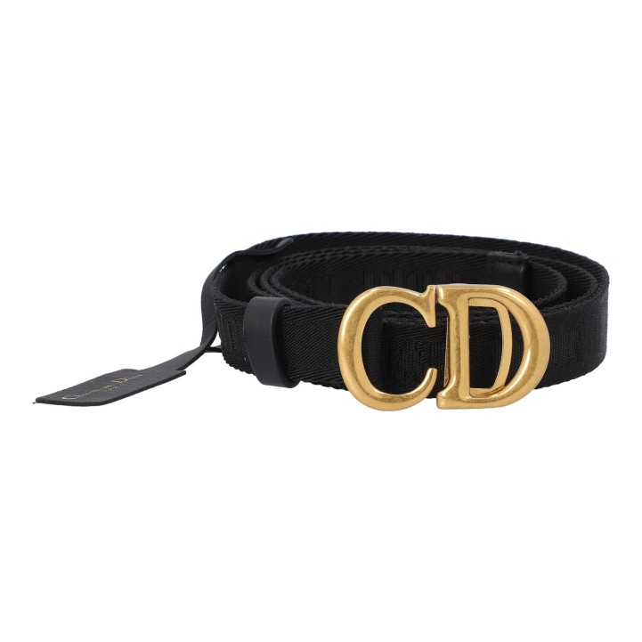 DIOR belt, size L, length max. 95 cm. Collection 2019. Textile strap with logo pattern. CD logo in gold with antique finish. Width approx. 2 cm. Very good condition.
