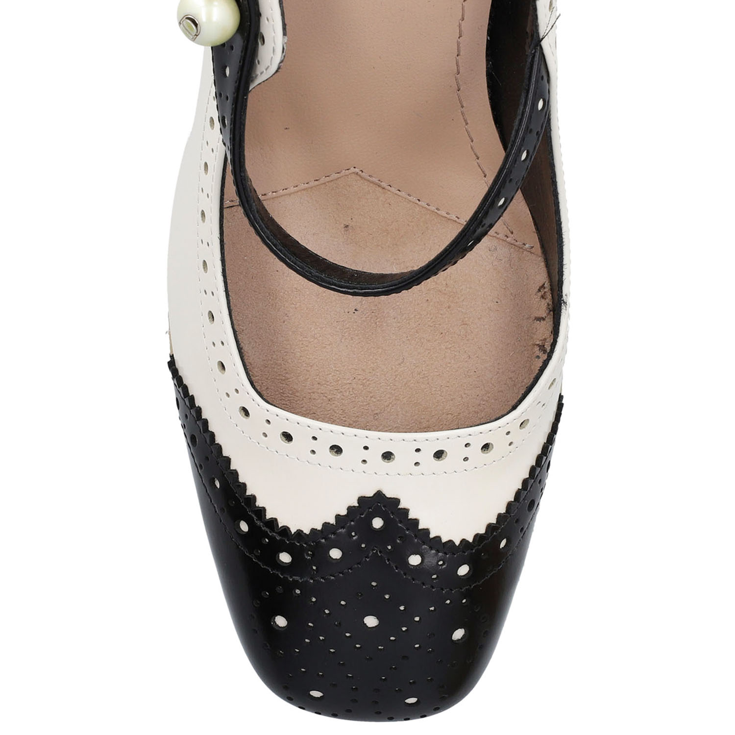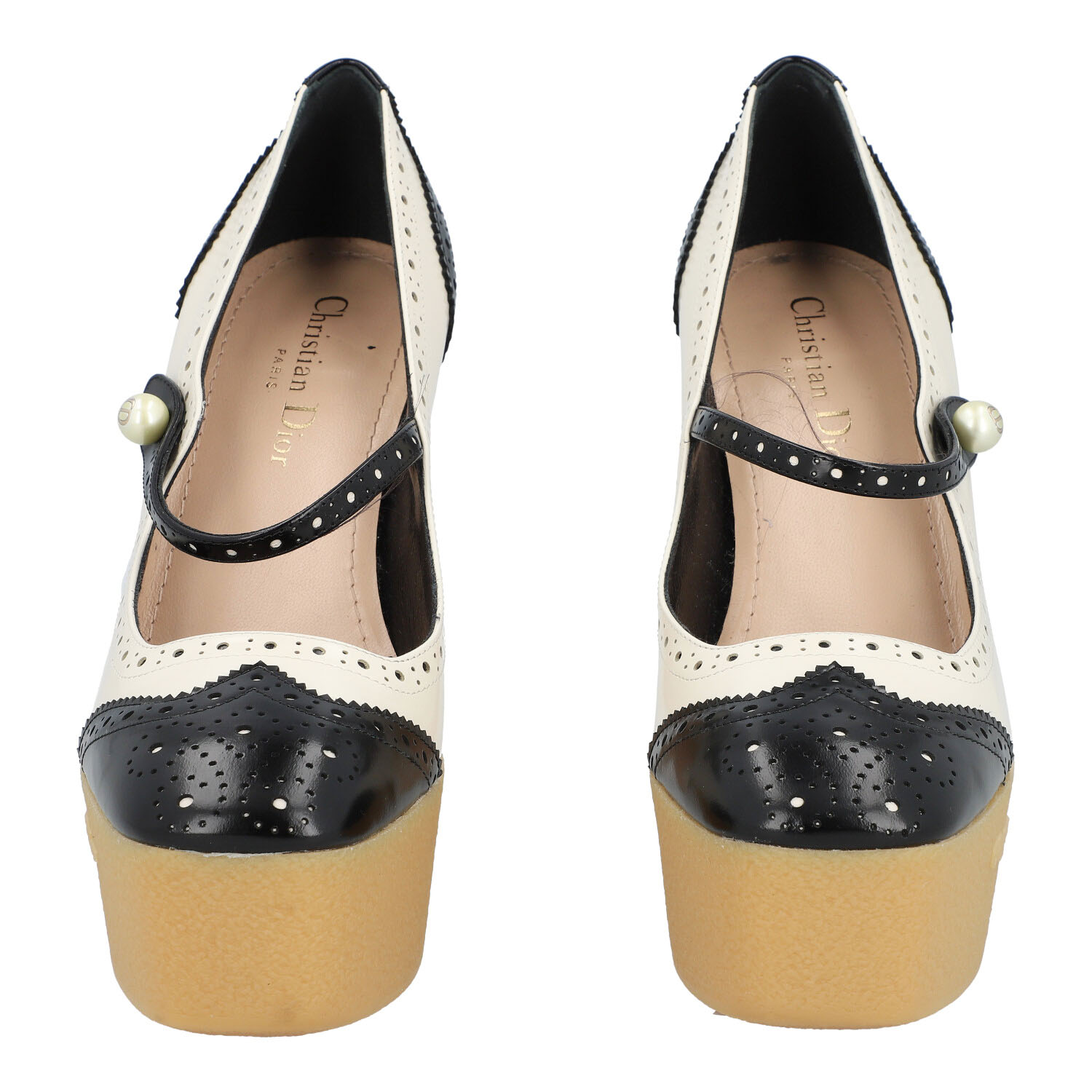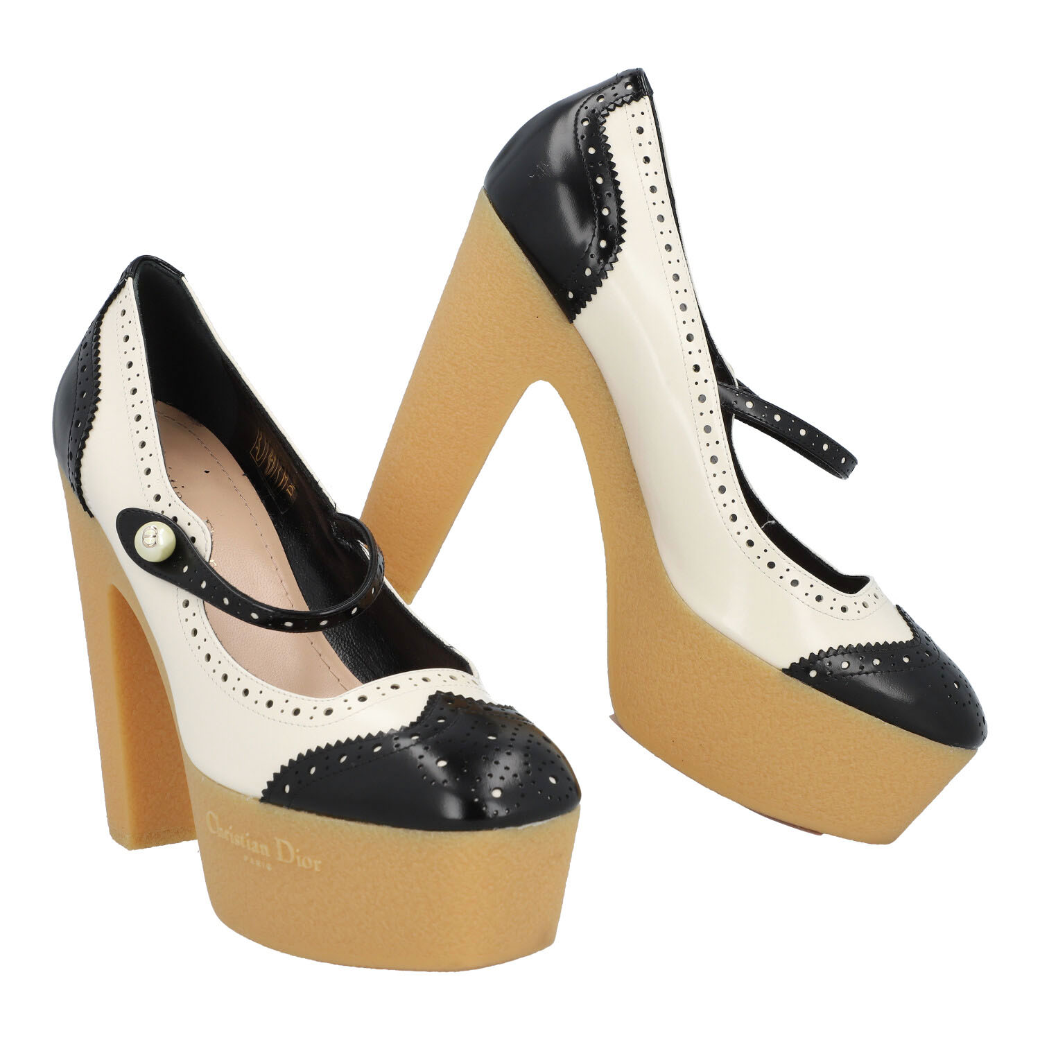 DIOR pumps 'SPECTADIOR', size 37, retail price: 1.190,-€, fall 2024. Mary Jane design in black and white made of smooth leather with budapester decor, strap with pearl decor and 13.5 cm heel, 4.5 cm platform. Box enclosed. Signs of wear.