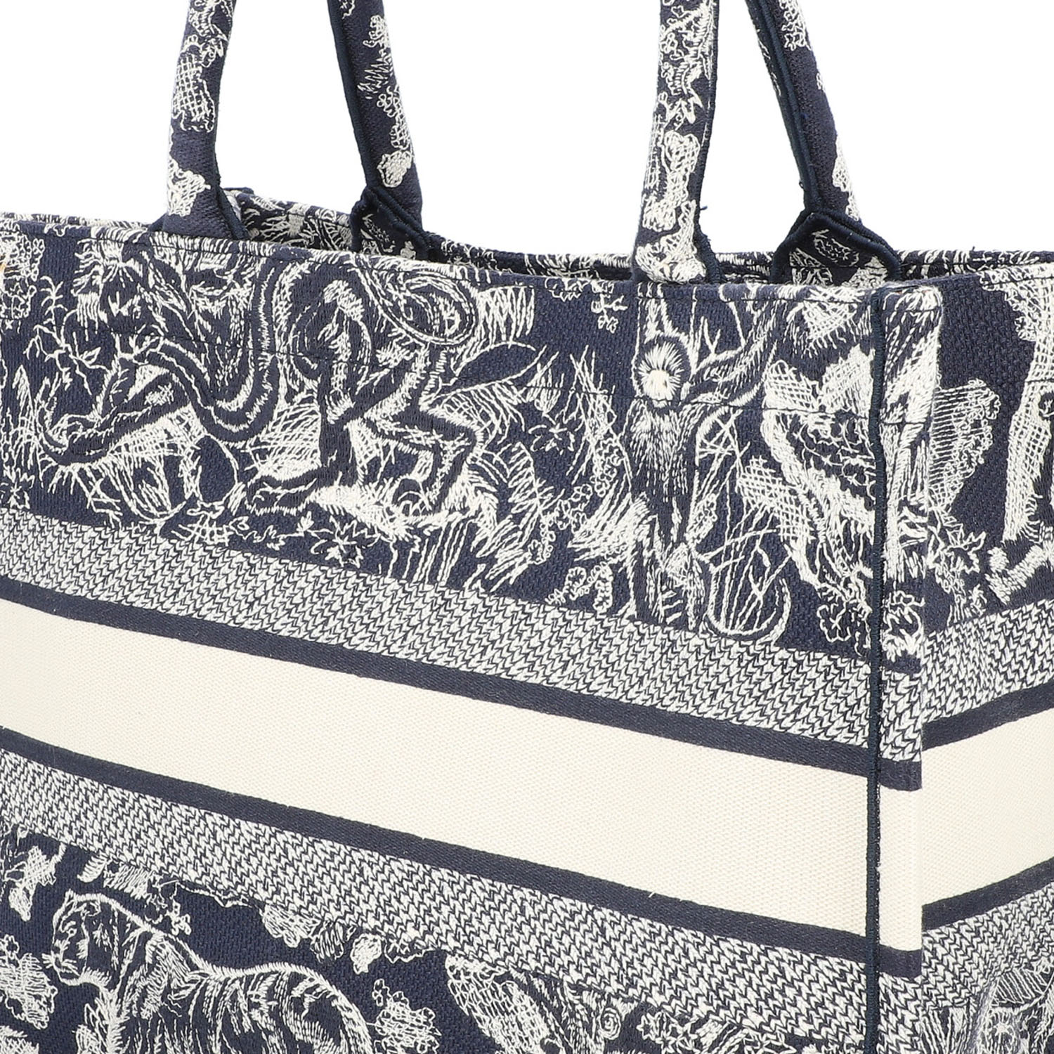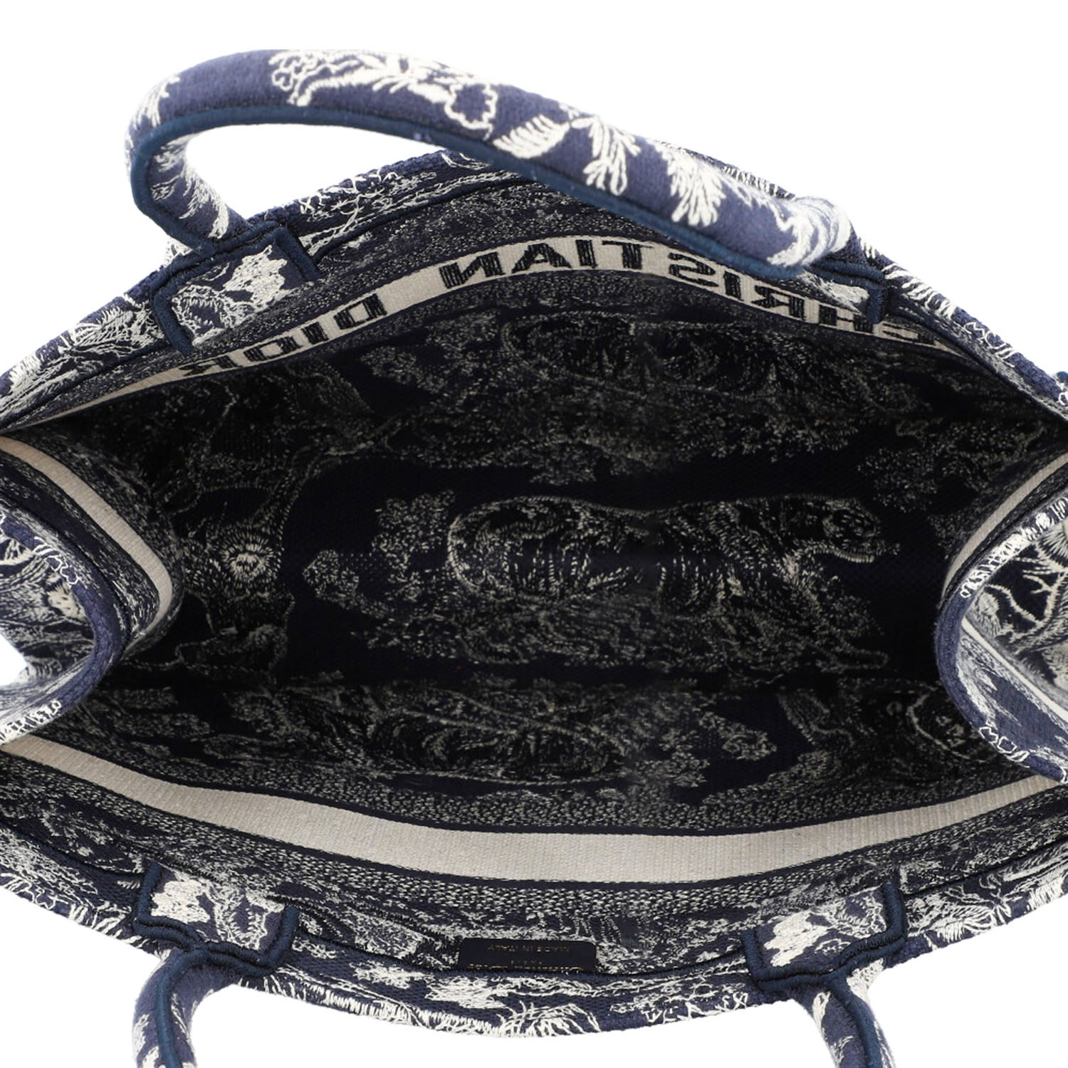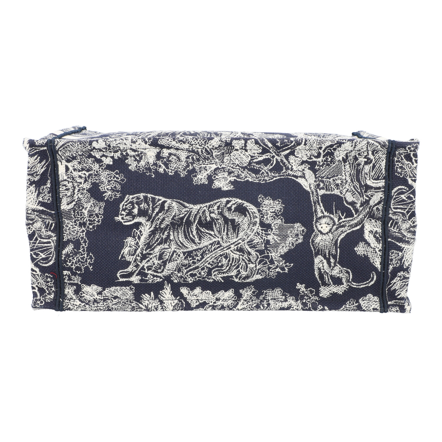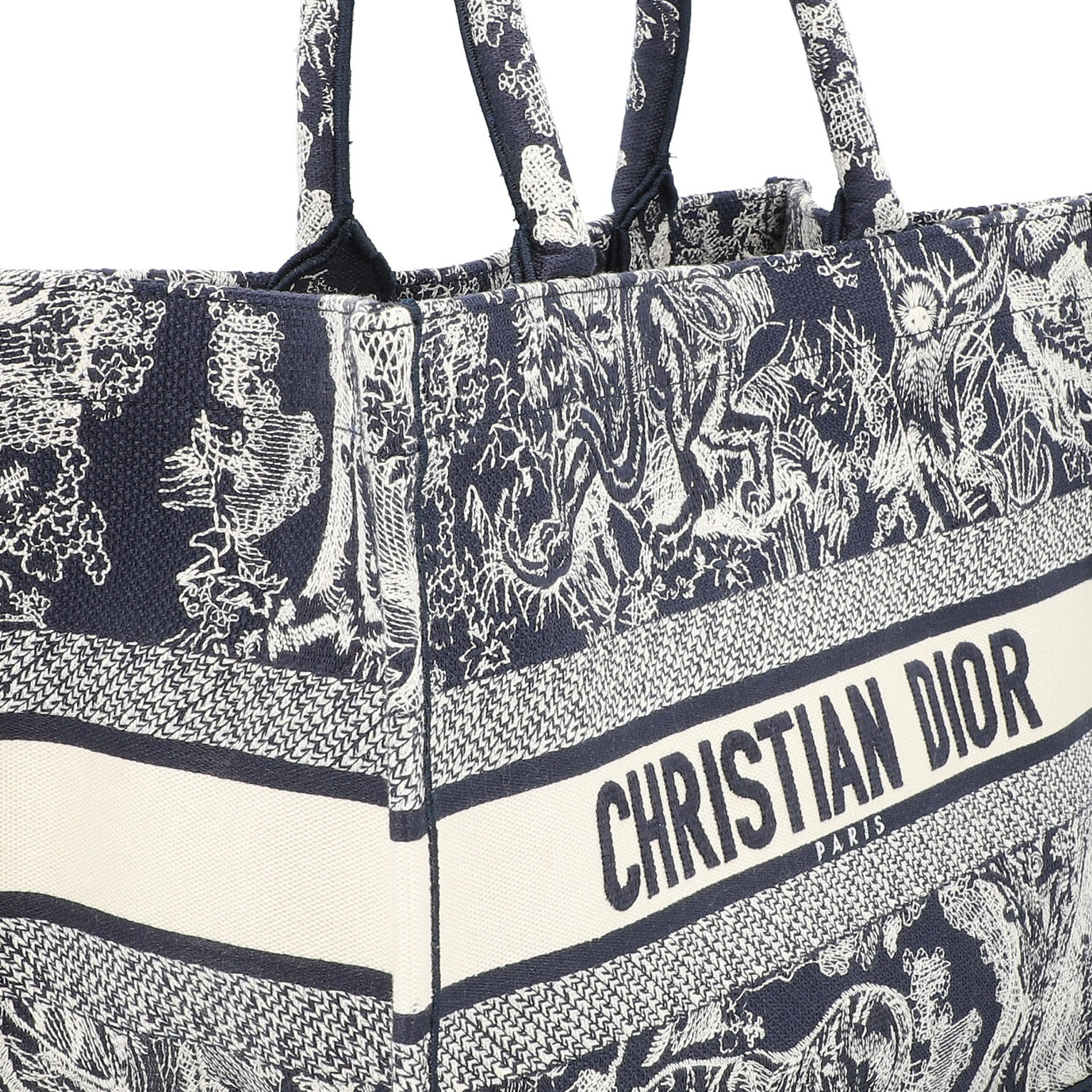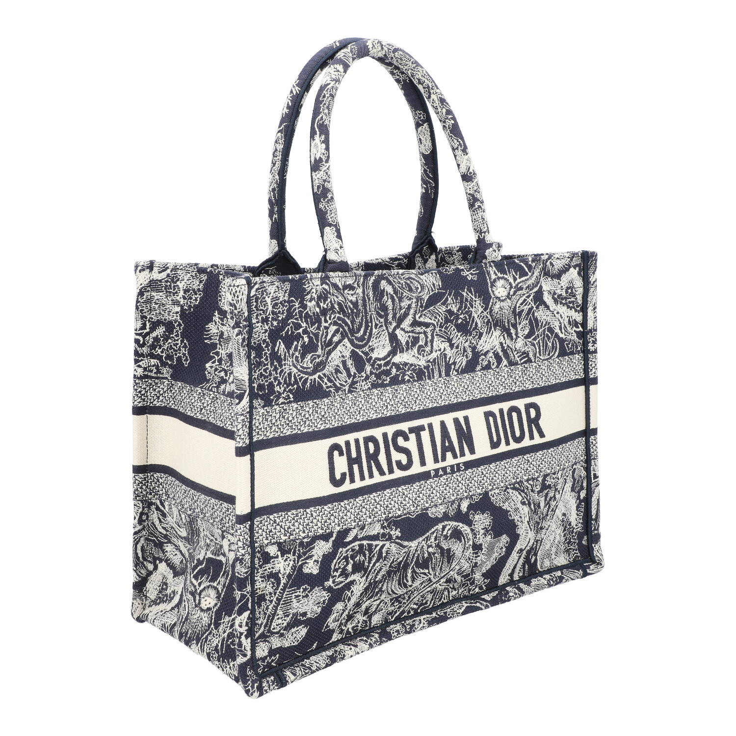 DIOR shopper ‘MITTELGROSSE BOOK TOTE’, coll.: 2021, retail price: 2.700,-€. Toile de Jouy reverse embroidery in blue and ecru with double handles. Dust bag, invoice and delivery note enclosed. Good condition. 36 x 16.5 x 27.5 cm.