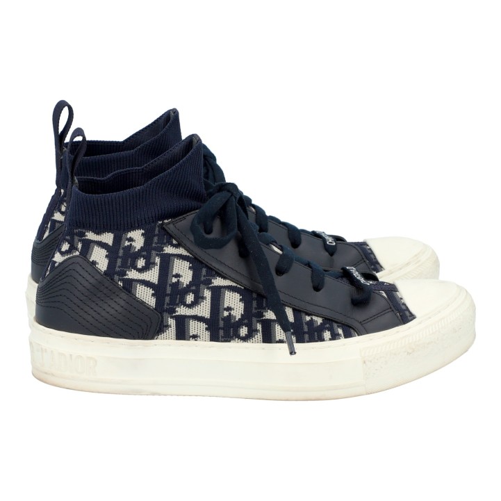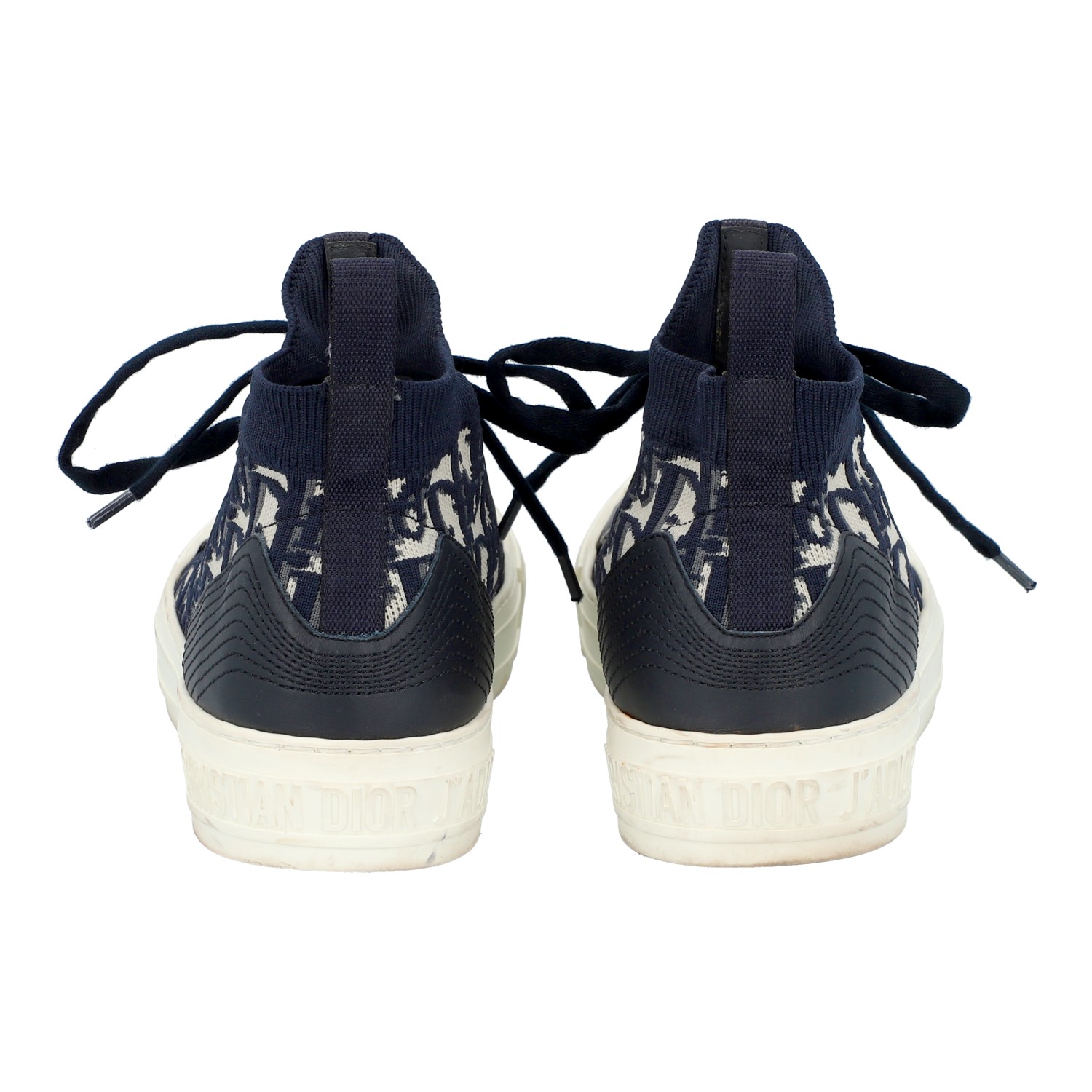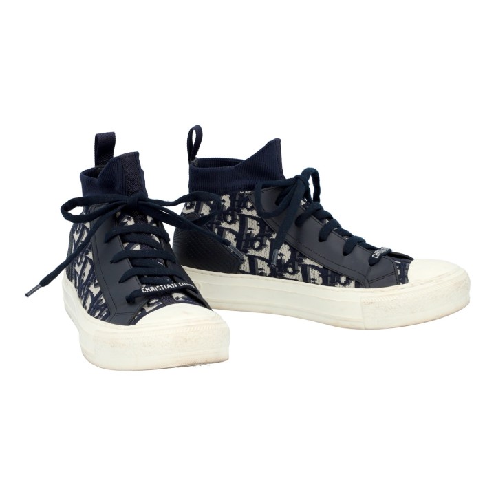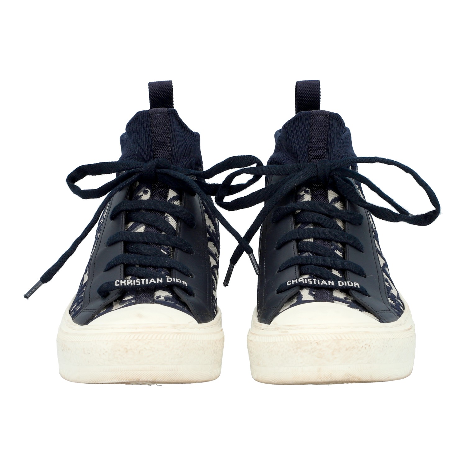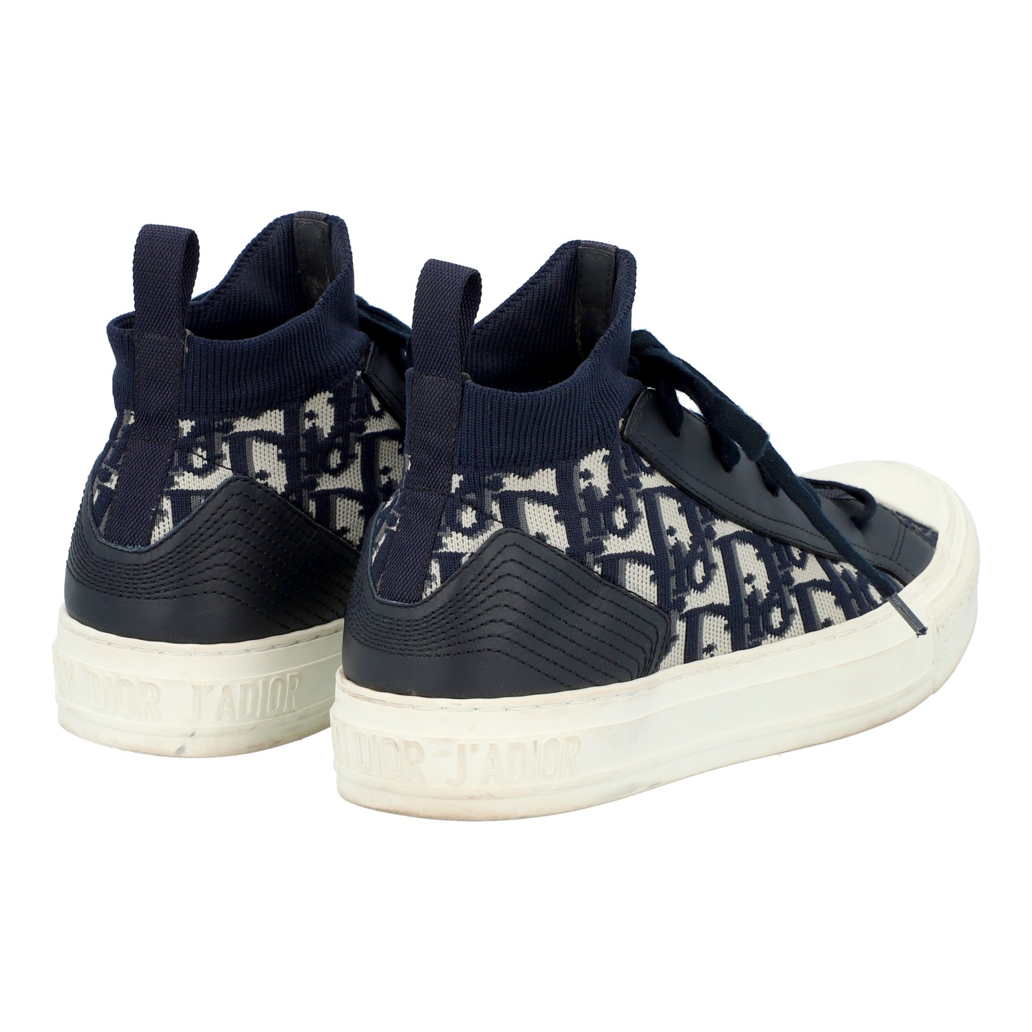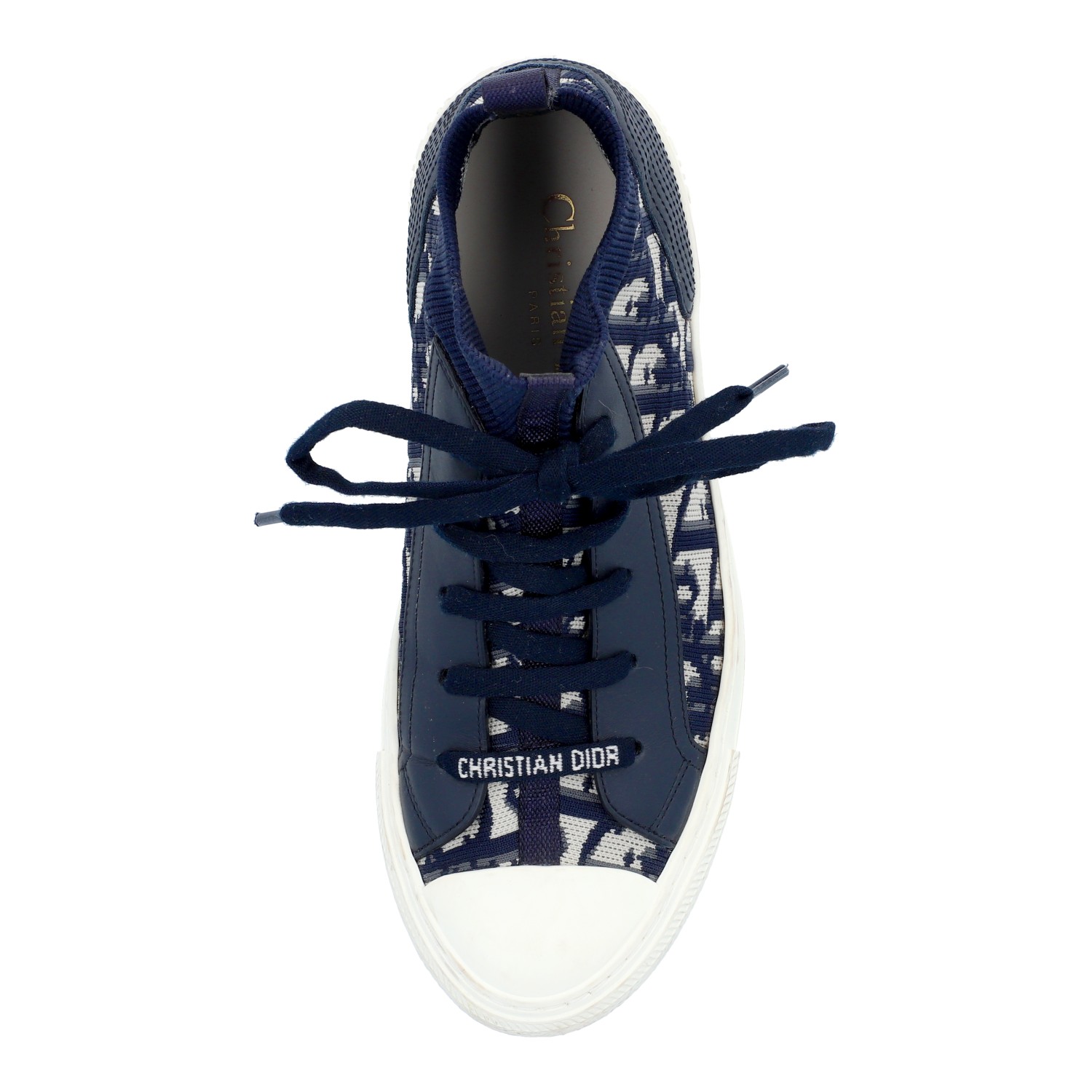 DIOR Sneakers “WALK`N `DIOR,” size 37.5. Dior Oblique in dark blue on a light background with leather details and rubberized outsole. Signs of wear present.