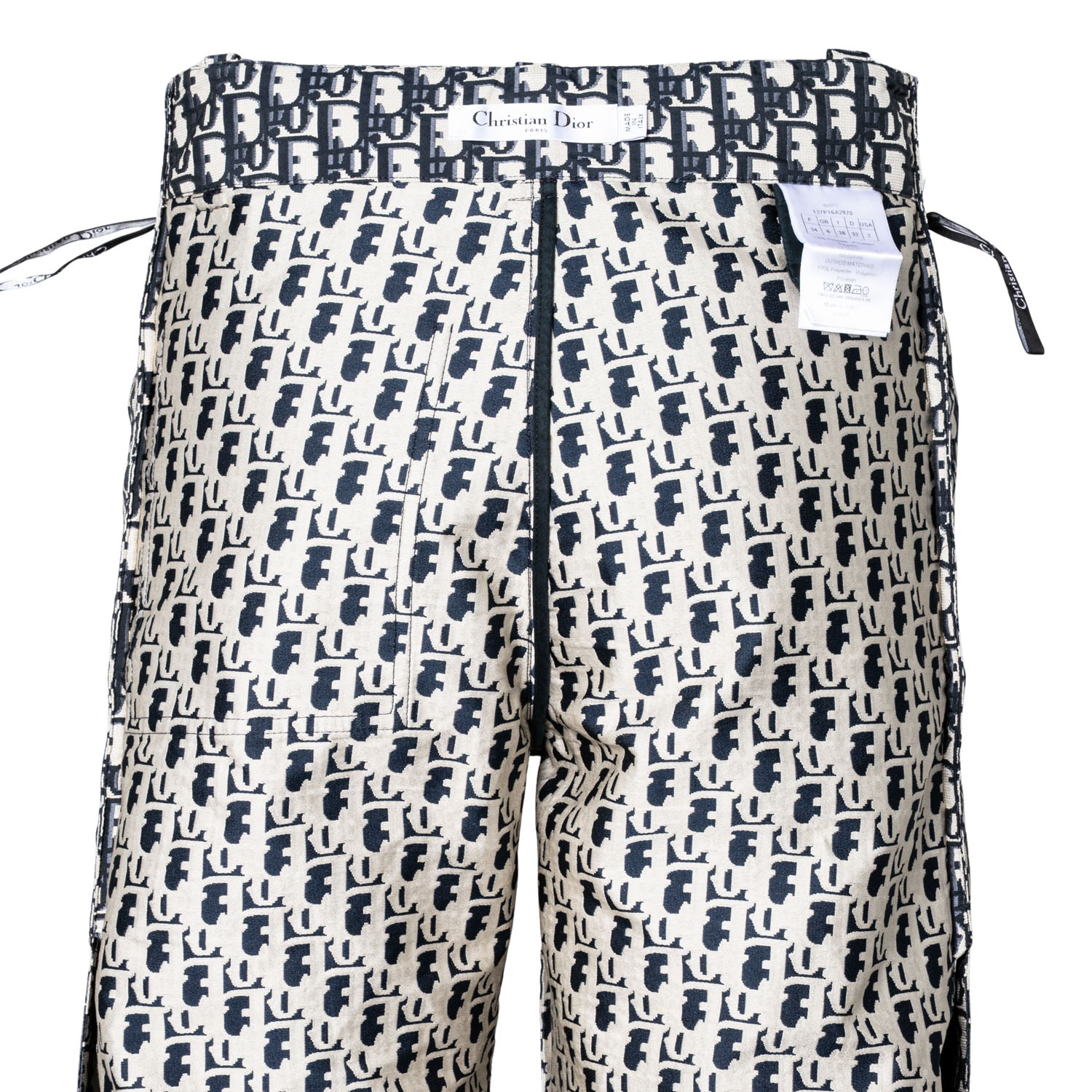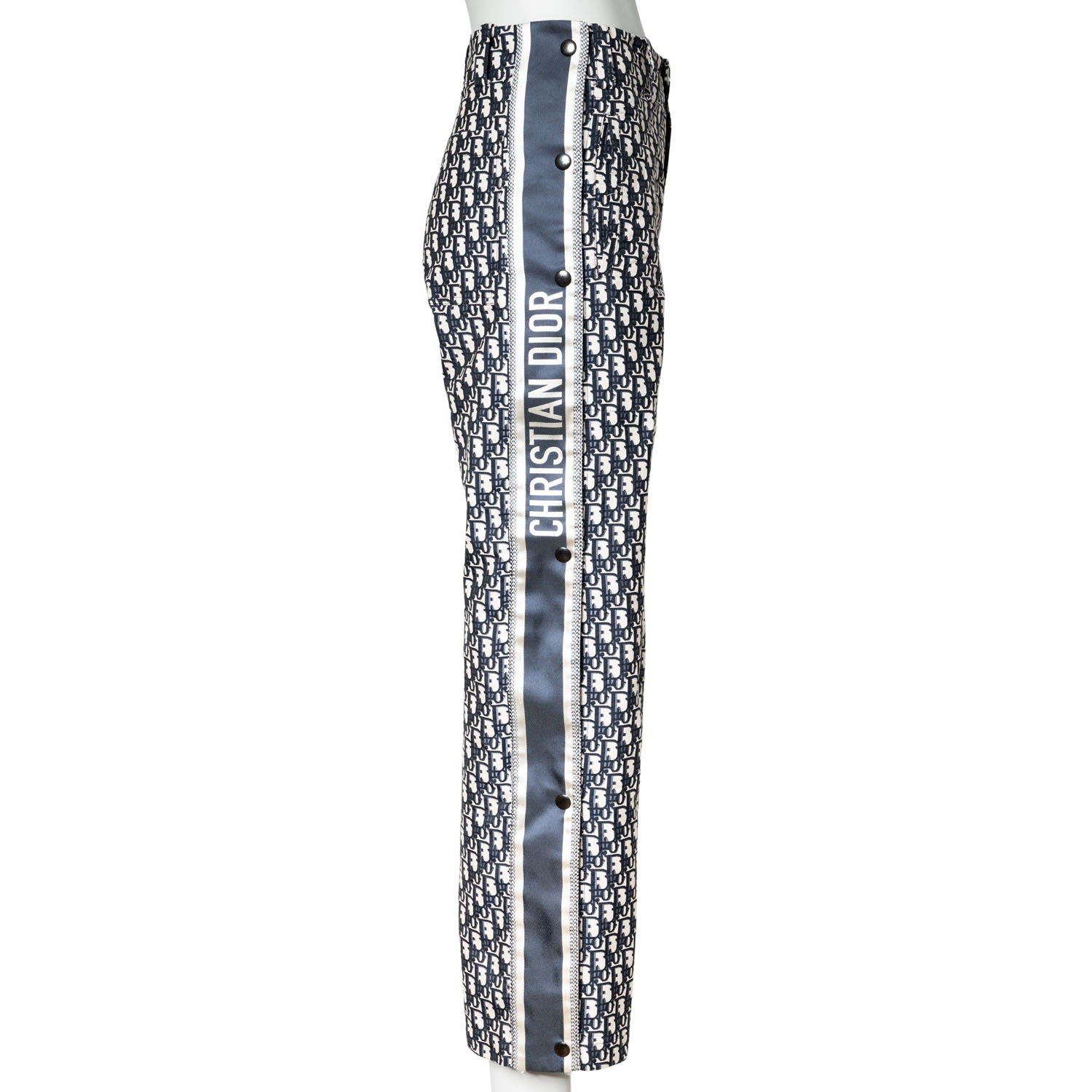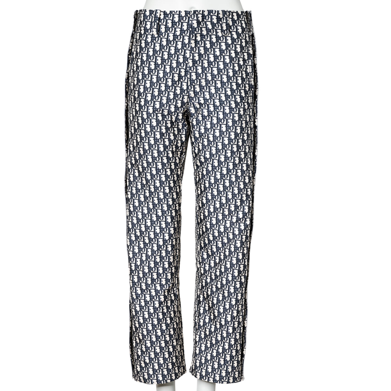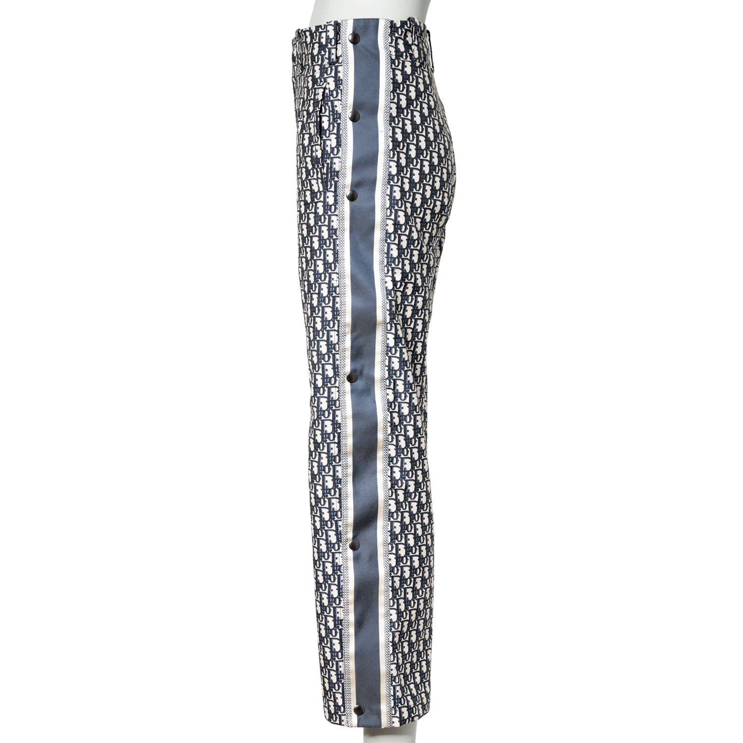 DIOR trousers, size. 32. Oblique design with decorative stripes on the sides, logo lettering, press studs, concealed fastening and belt loops. Signs of wear present.