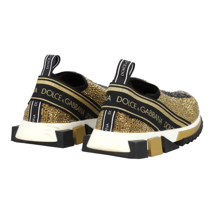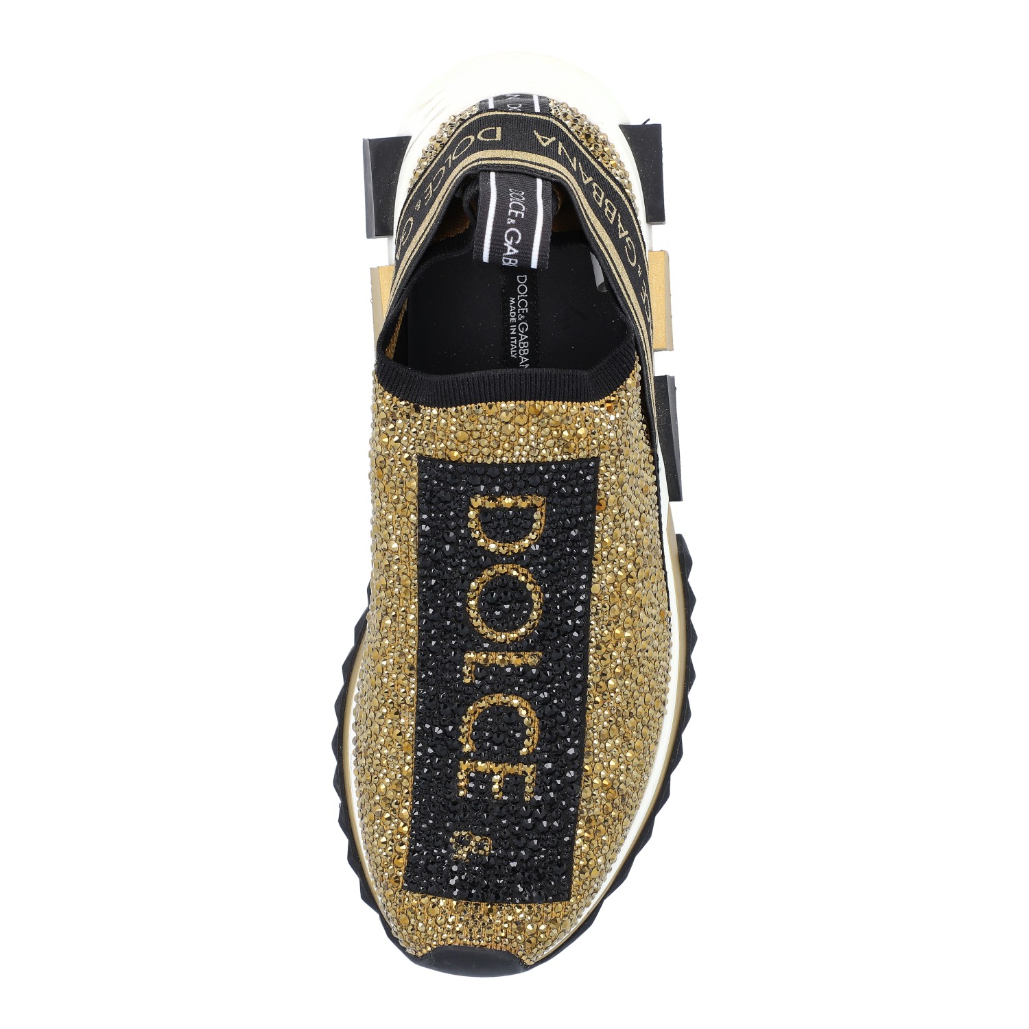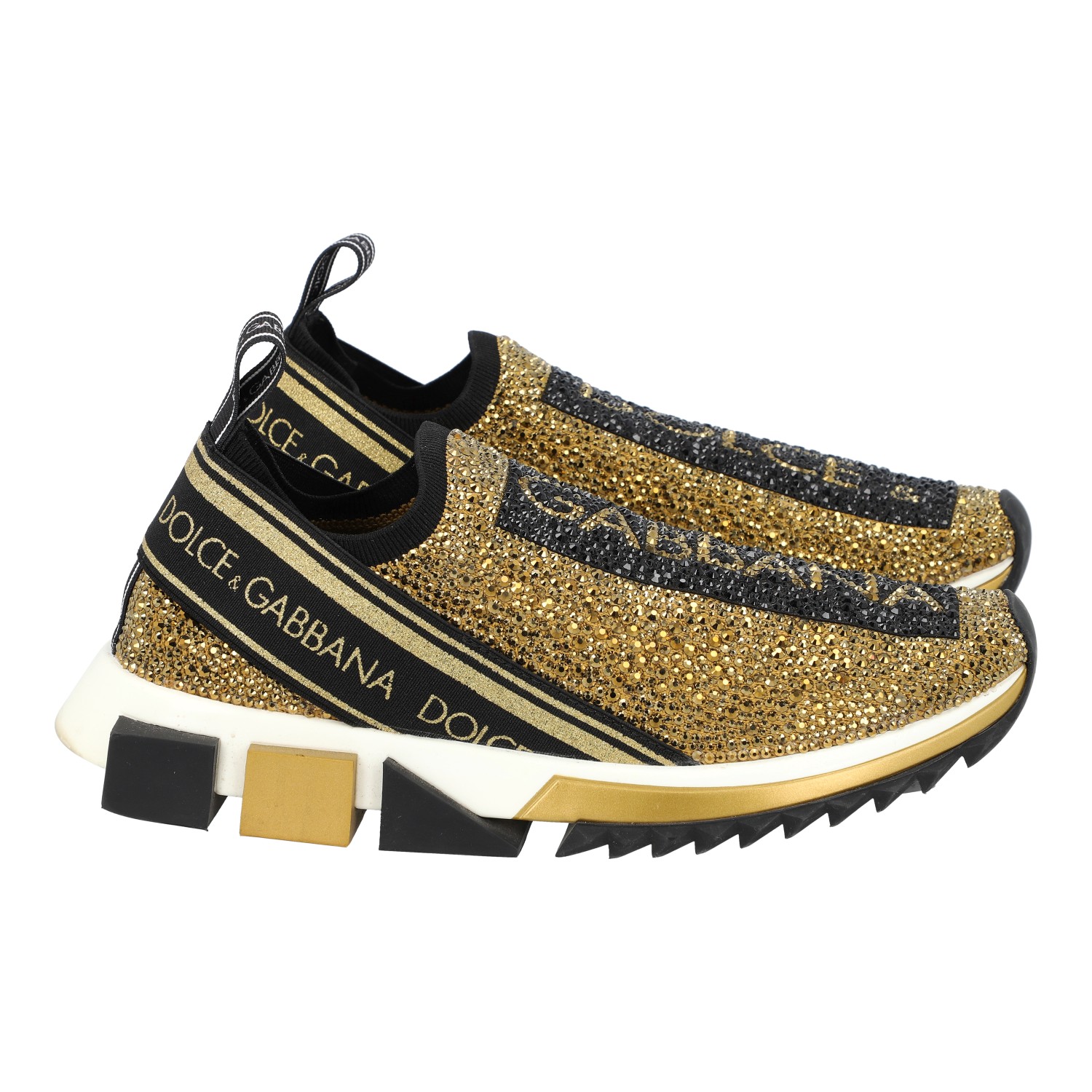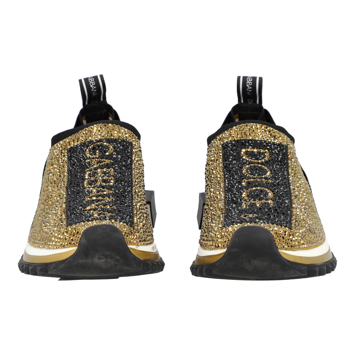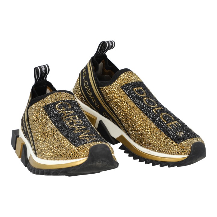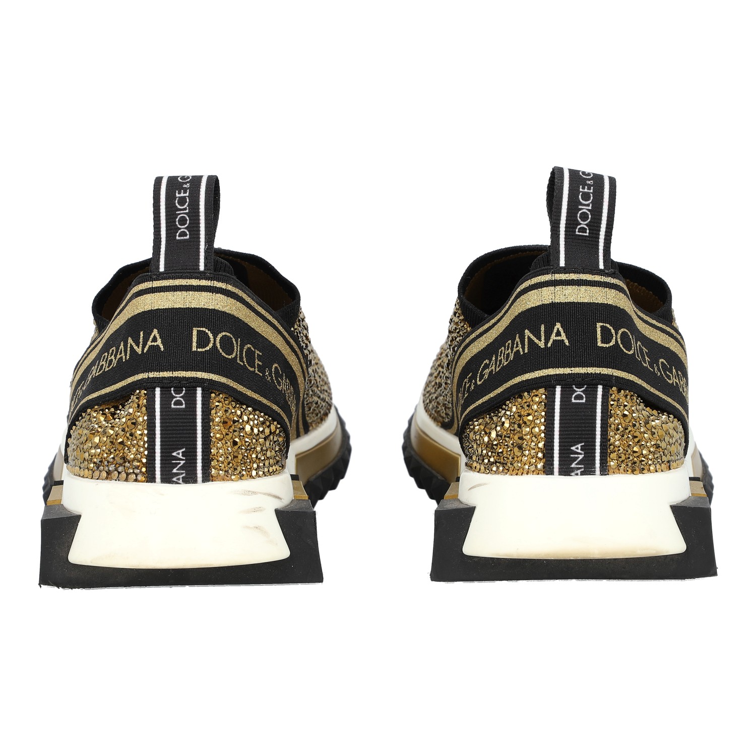 DOLCE & GABBANA Sneaker 'SORRENTO', size 40. Slip-on model in black and gold with logo design and stone embellishment. Box included. Signs of wear present.