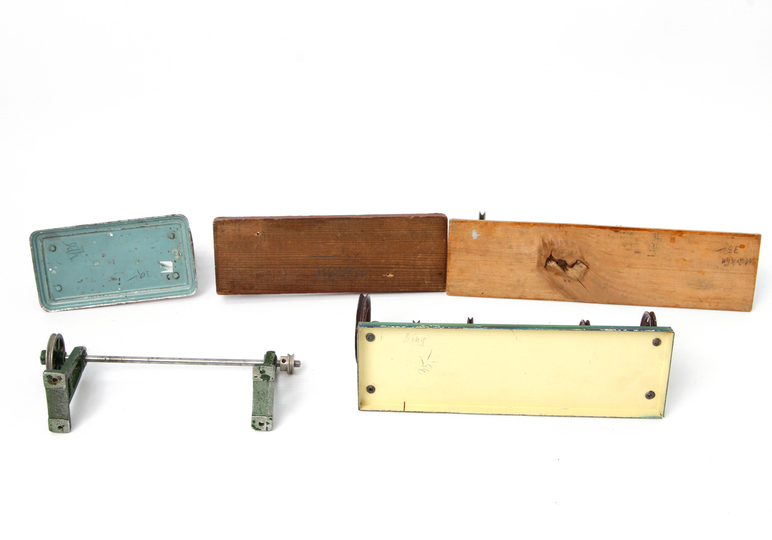 DOLL a.o. Set of five transmissions, transmission by Doll marked "DC". Partly on wood and sheet metal, dam., h. approx. 7/ 8.5 cm.