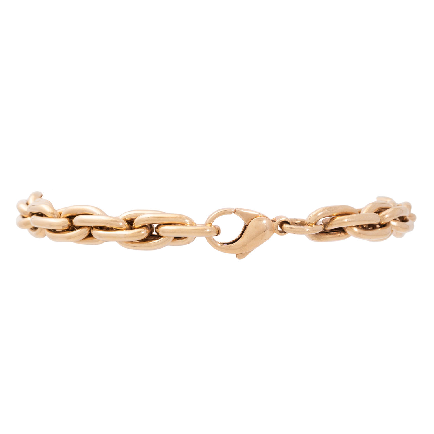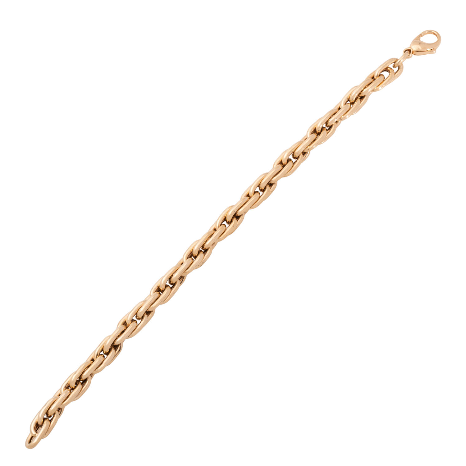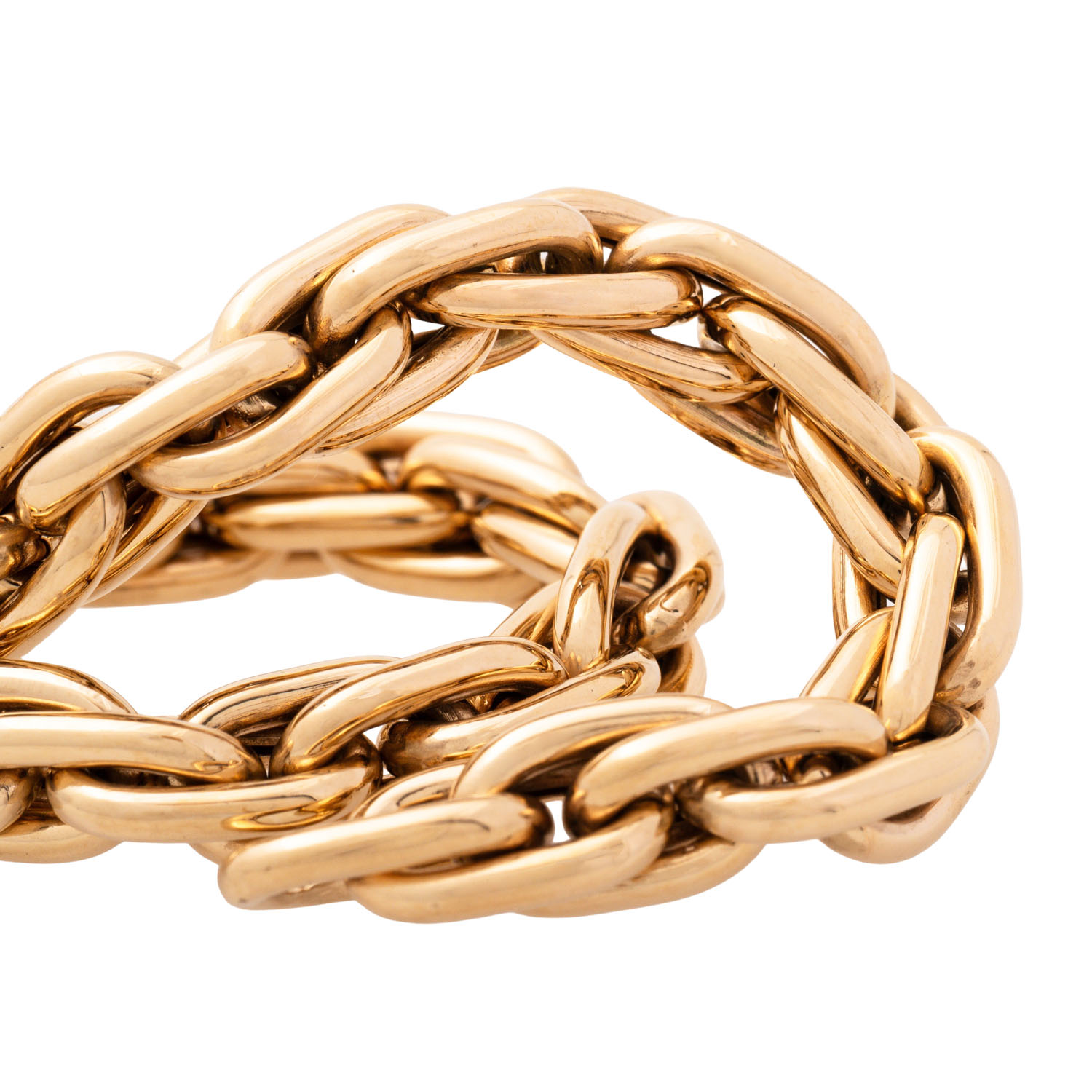 Doubleanchor bracelet, 14K yellow gold, 24.1 g, L: 20 cm, W: 7.4 mm, hollow eyelets, carabiner clasp, late 20th century, minimal signs of wear.